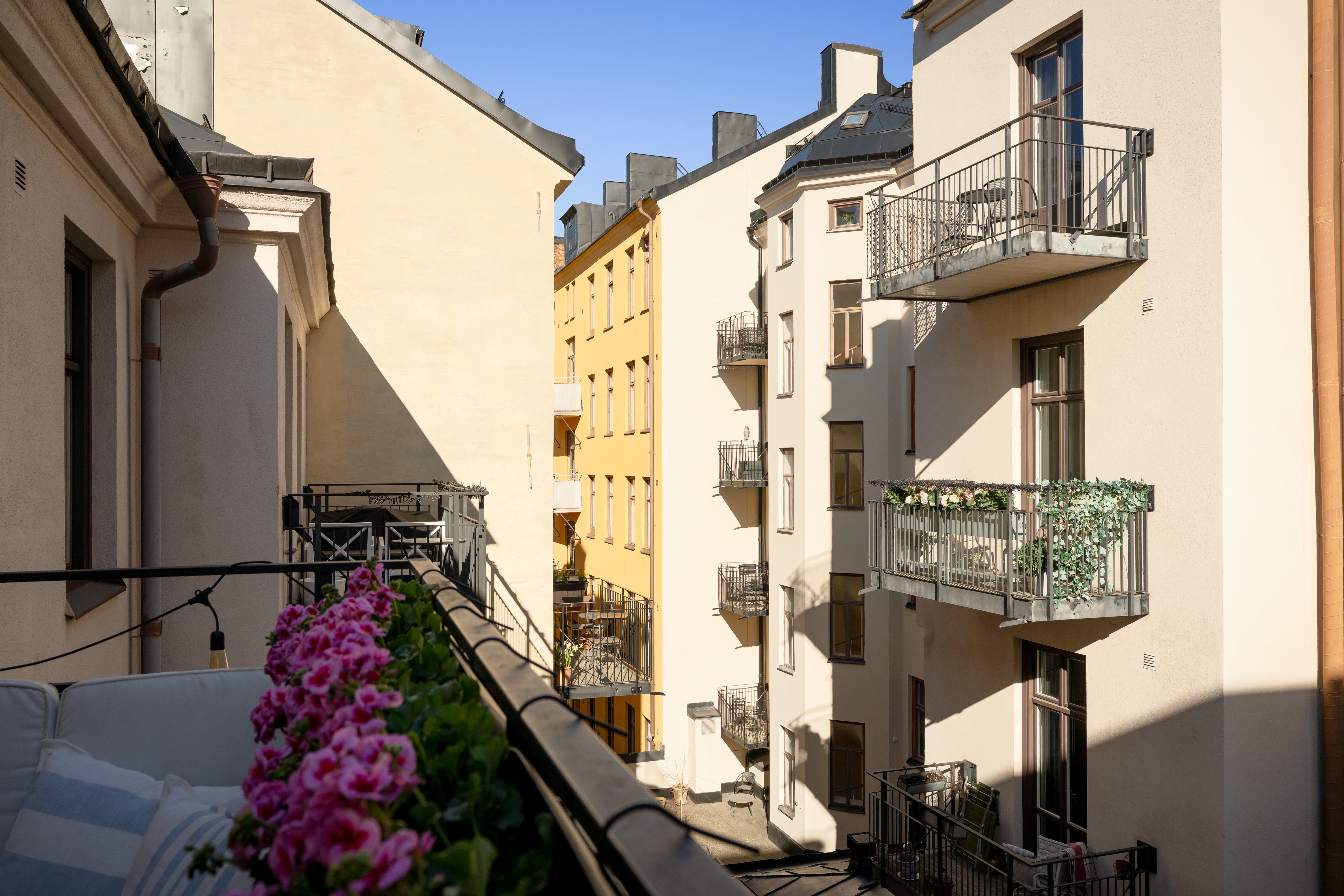 Welcome to a tastefully renovated one-bedroom apartment with a balcony and beautiful period features. Situated in a शांत courtyard setting near Strandvägen, the home offers a generous east-facing balcony overlooking the association’s inner courtyard. Many charming turn-of-the-century details have been preserved, such as high ceilings and deep window niches, combined with exclusive material choices throughout.