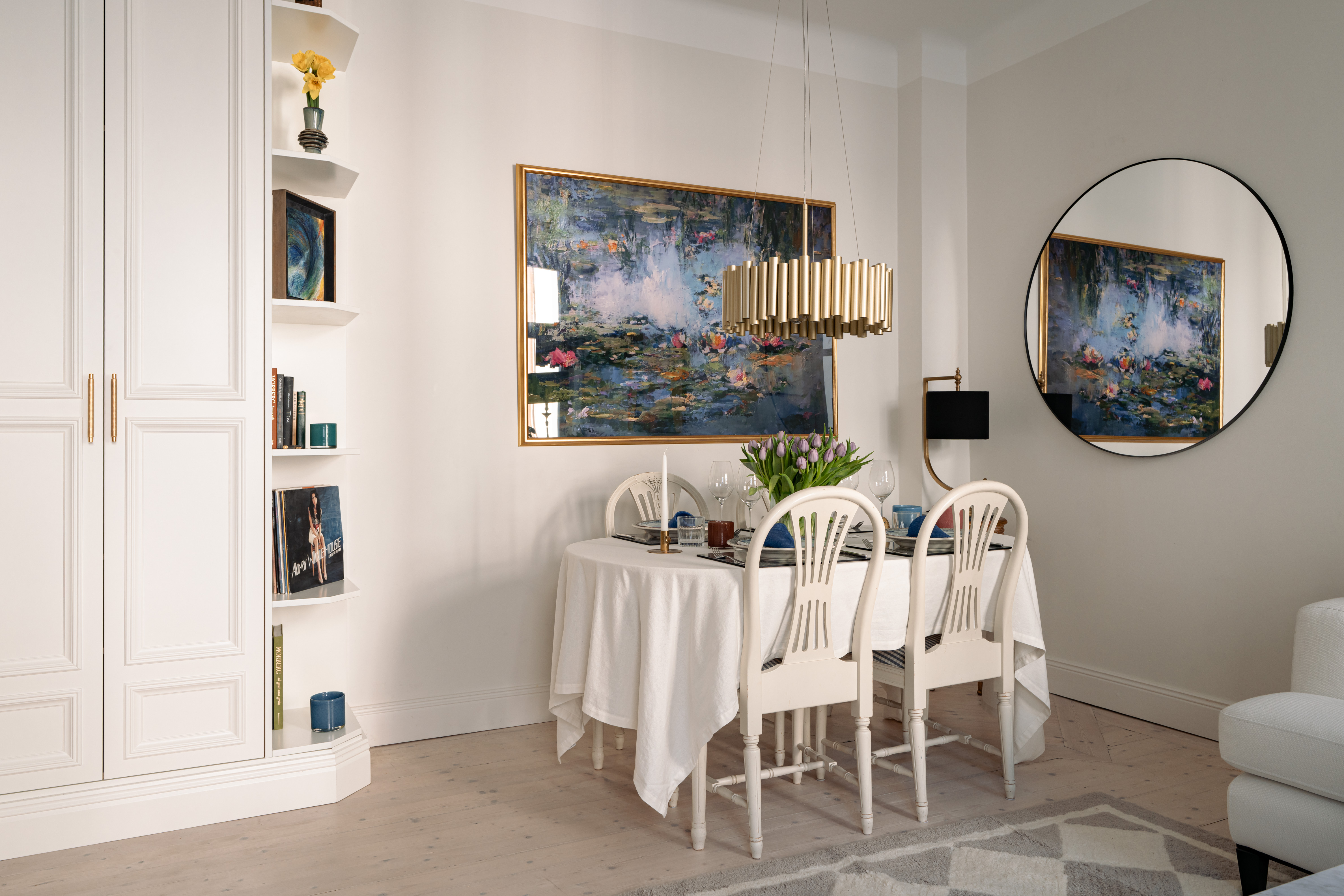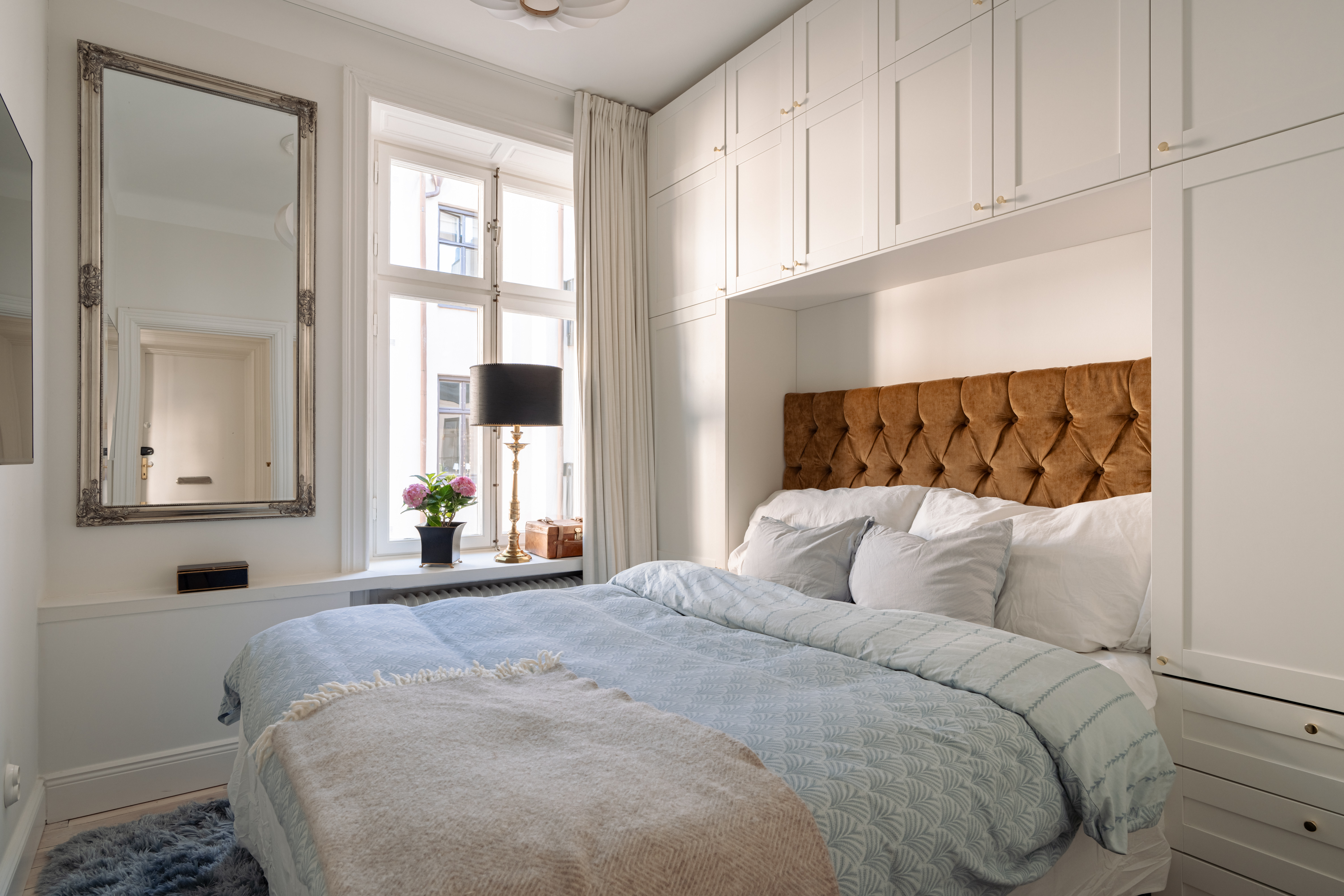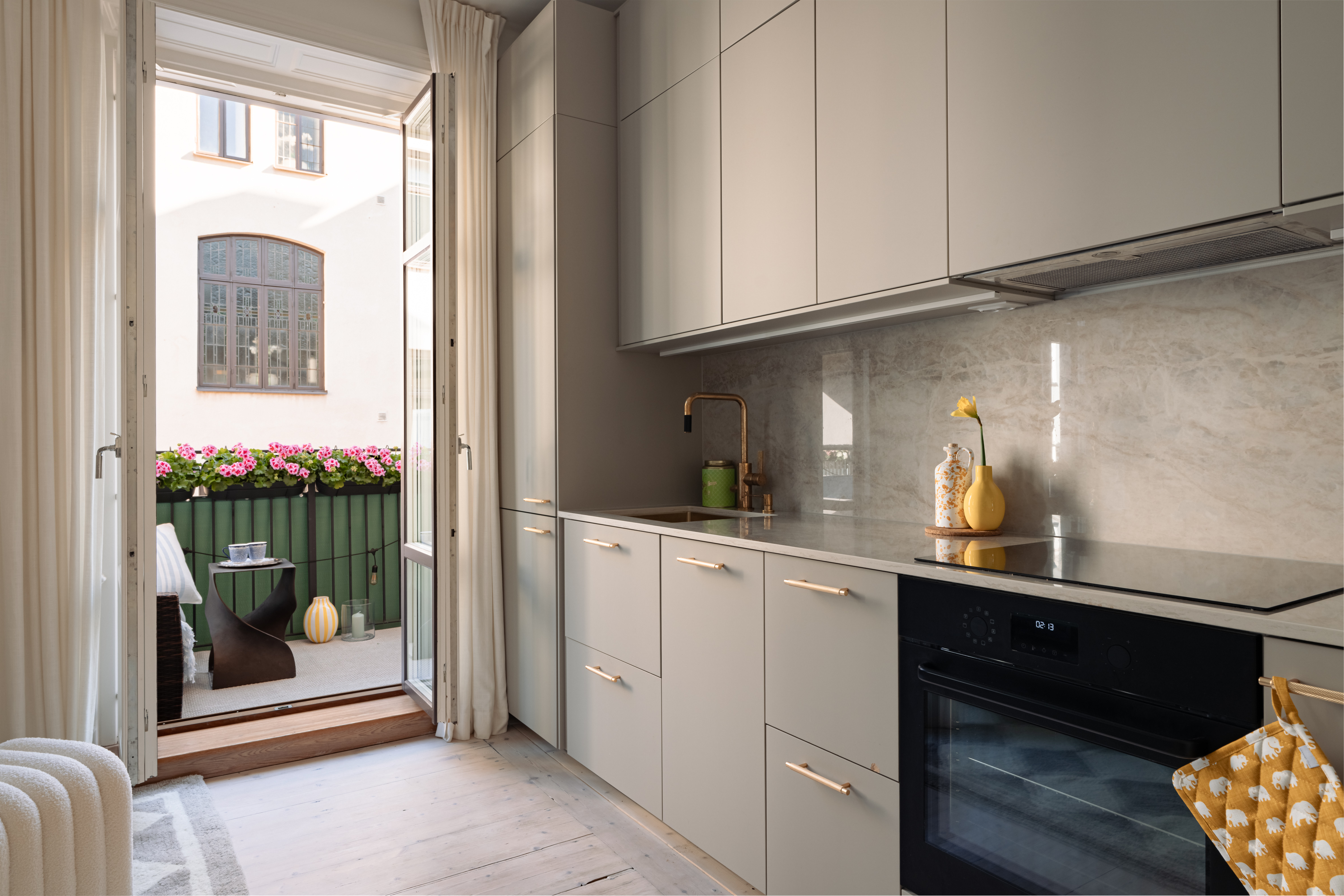 This is a stylish and well-considered home where every detail reflects quality and aesthetics. The kitchen is elegantly designed with an exclusive composite countertop and fittings from Tapwell. The bedroom faces a quiet courtyard and includes custom-built storage that maximizes space in a refined way. In the entrance, you are welcomed by bespoke, built-in storage crafted by a fine carpenter, adding both character and excellent storage solutions. The bathroom is designed in subtle, timeless tones with elegant brass details.
