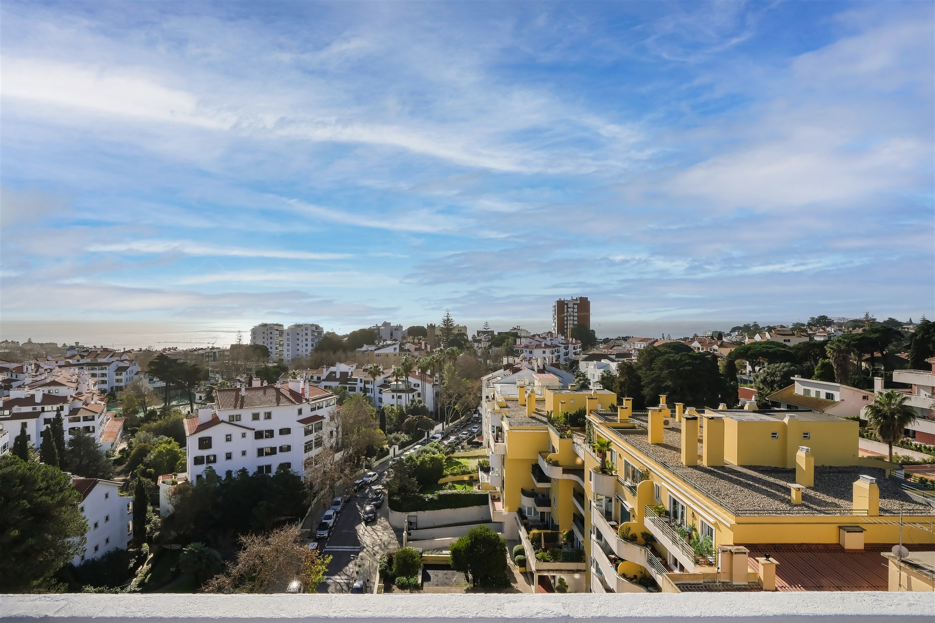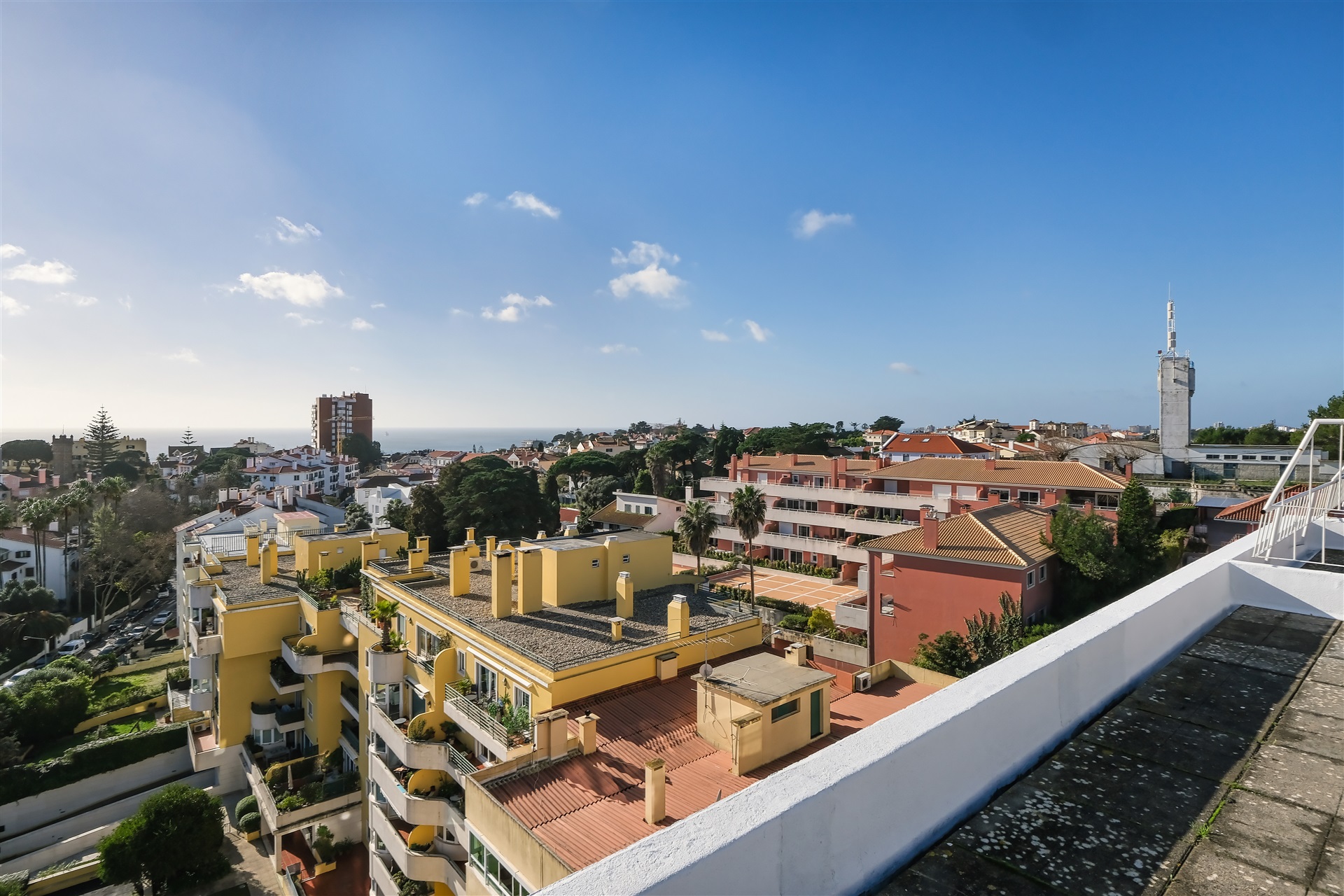 A three-bedroom apartment located in the heart of Monte Estoril, offering 144 square metres with expansive views over the Atlantic Ocean. It comprises a spacious, light-filled living room with large panoramic windows and uninterrupted sea views stretching along the coastline from Cascais to Lisbon, one suite, one bedroom and a study. This apartment also includes a 50-square-metre rooftop terrace, where you can enjoy the same stunning views over the Cascais–Lisbon coastline. It further benefits from two storage rooms: one on the same floor and another on the ground floor. The building has seven floors, with the apartment occupying the seventh floor, ensuring greater privacy. Within walking distance of everything Monte Estoril has to offer: restaurants, cafés, pharmacy, gourmet mini-markets and a supermarket. Less than five minutes from transport links, including the train, motorway access, the beach and Cascais centre, and only a 30-minute drive to Lisbon Airport.