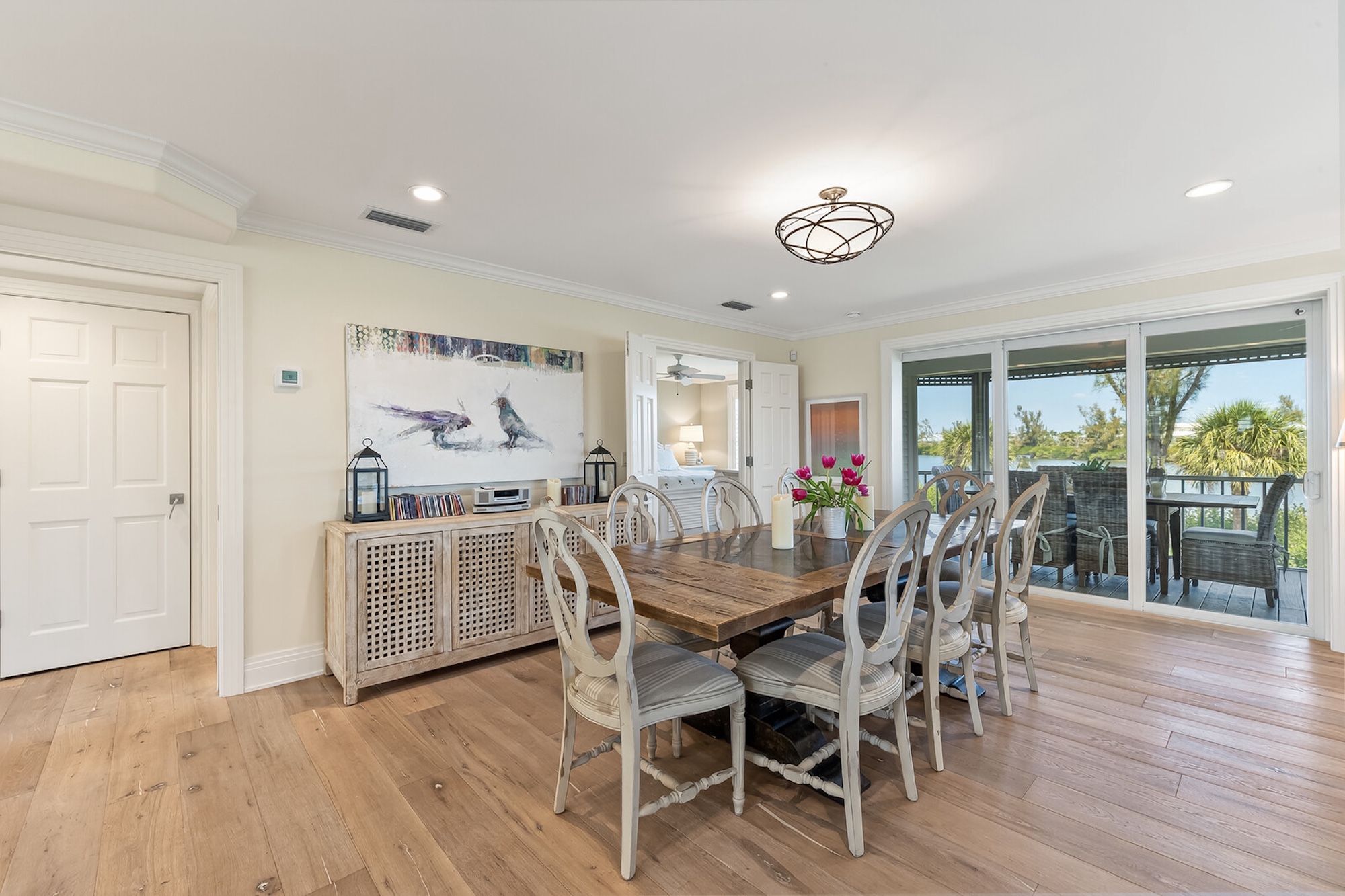 Nestled in the exclusive gated community of Seawatch, this thoughtfully updated single-family Seawatch presents a rare lakefront sanctuary offering unparalleled privacy, serene water views, and refined coastal living. It boasts approximately 3,092 square feet of bright, open living space with three bedrooms and three bathrooms. Vaulted bead board ceilings and an abundance of natural light create an airy, inviting atmosphere throughout the open floor plan—ideal for both relaxed everyday living and sophisticated entertaining. The upper-level primary suite is a true retreat, featuring a private terrace with sweeping views over Lake Gasparilla, an upgraded bathroom and office. Multiple expansive outdoor living areas, including a screened lanai and open porches, invite al fresco dining, sunset gatherings, or simply unwinding amid the tranquil surroundings. At the heart of the home is the tastefully renovated eat-in kitchen, showcasing premium appliances including a paneled Sub-Zero refrigerator, double ovens, induction cooktop, and warming drawer, along with abundant storage and elegant finishes. Recent renovations by renowned local firm McHugh Porter Builders have elevated the property with refreshed kitchen and baths, new engineered hardwood flooring, and impeccable interior finishes throughout. Additional highlights include a convenient elevator, hurricane-impact windows and sliders for peace of mind, a 2011 roof, an air-conditioned storage room just off the garage, and ample parking. Seawatch is a prestigious waterfront enclave of just 49 residences, thoughtfully positioned between the Gulf of Mexico and Lake Gasparilla. Residents enjoy exclusive amenities including to the pristine Gulf shoreline, two community pools, and two tennis courts. This rare setting delivers a true barrier-island lifestyle—minutes from the charming village of Boca Grande for boutique shopping, fine dining, and world-class fishing and shelling.