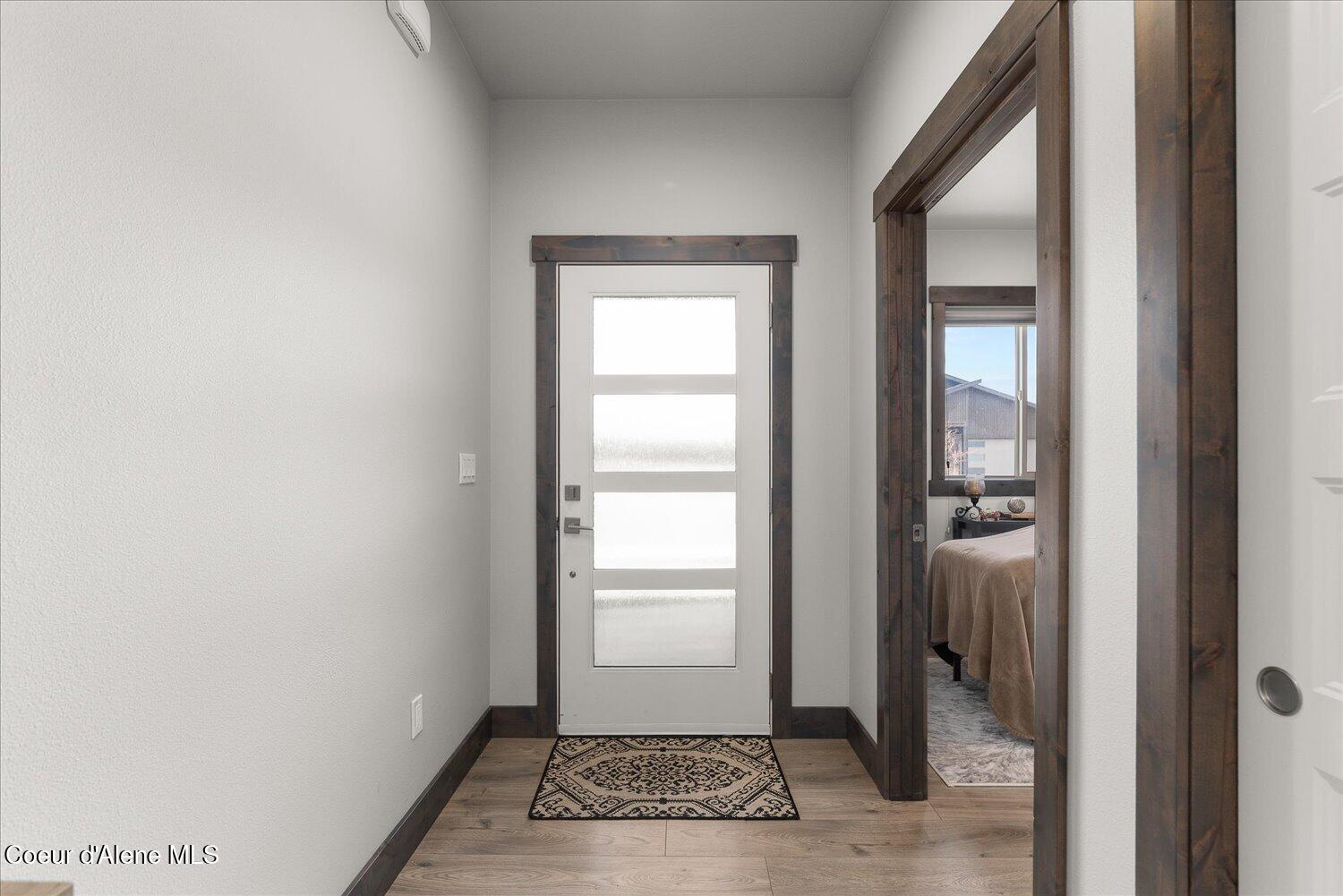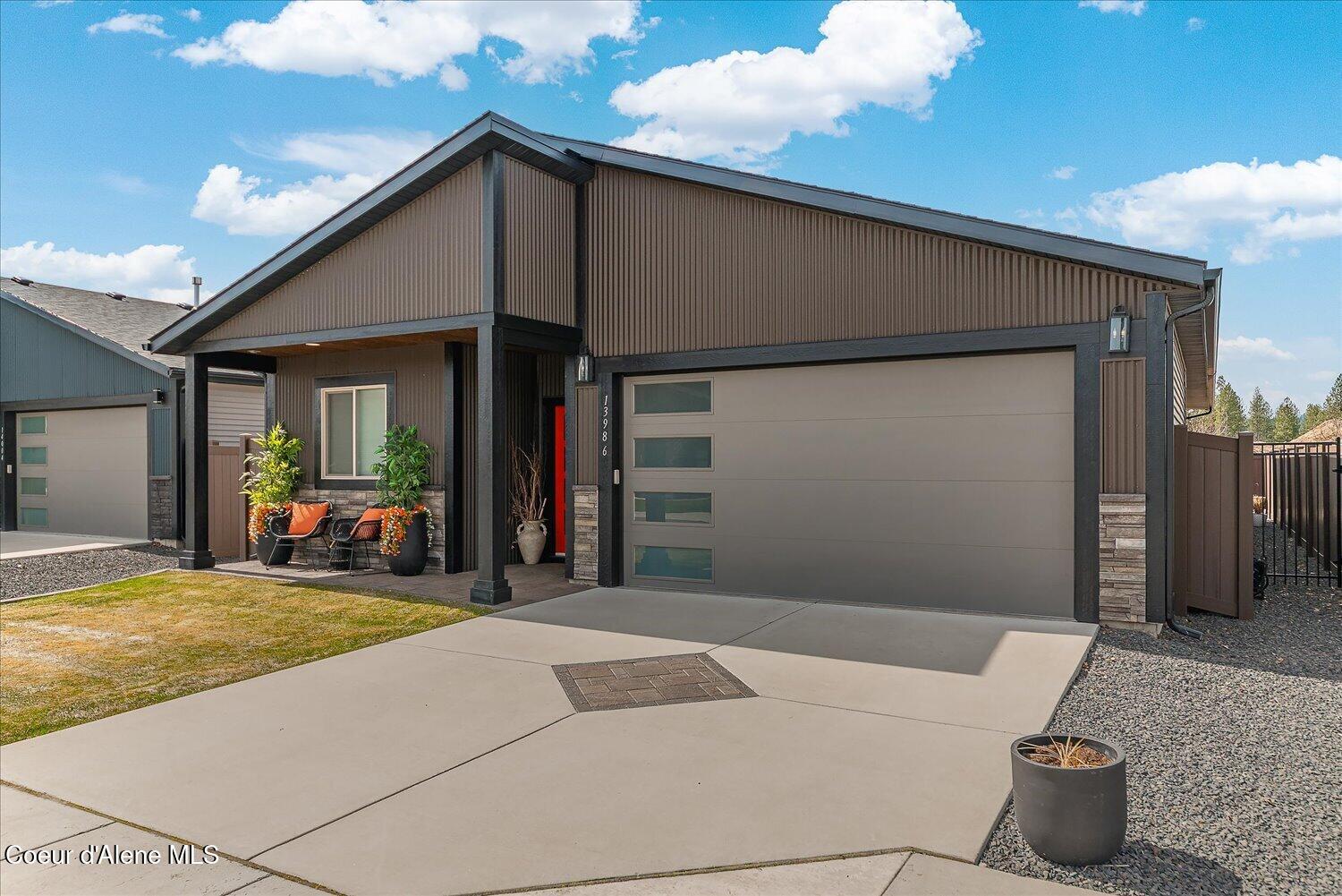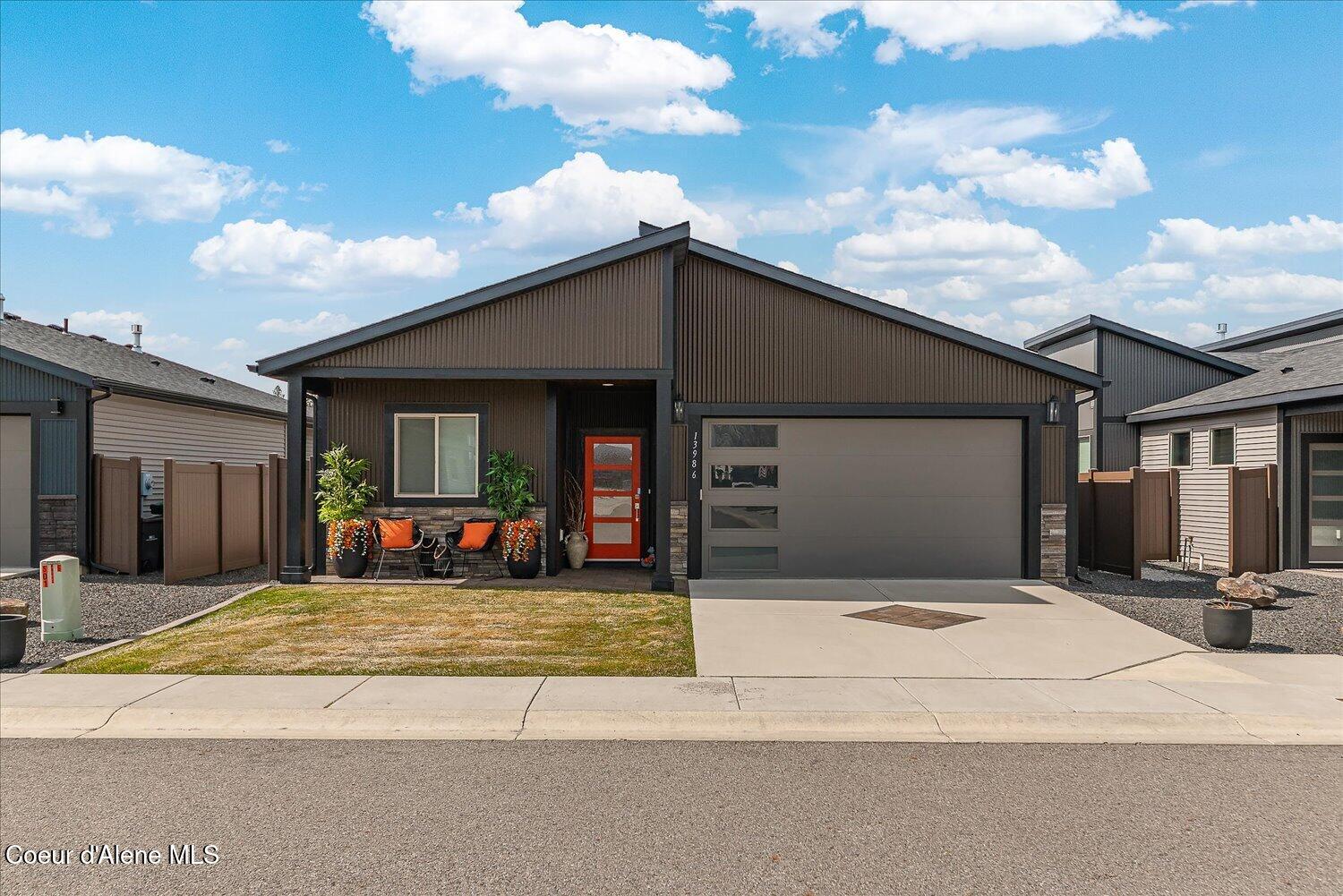 Diamond Spike 55+ community Single-level design Two covered back patios Quartz countertops Oversized finished garage Set in Diamond Spike in Rathdrum, this low-maintenance, turn-key home offers single-level living with a covered front porch, two covered back patios, landscaping, fencing, and sprinklers already in place. Inside, you will find luxury laminate flooring throughout, a gas fireplace, A/C, and abundant windows for natural light. The kitchen includes upgraded appliances, an island, custom knotty alder cabinets and trim, a composite sink, and quartz countertops throughout. The guest bath features a tiled tub/shower, while the primary suite offers a tiled roll-in shower and a walk-in closet with solid wood shelving. The oversized 2-car garage with polished floor is insulated and fully finished. HOA is $95/month which includes front yard maintenance and driveway/sidewalk plowing.