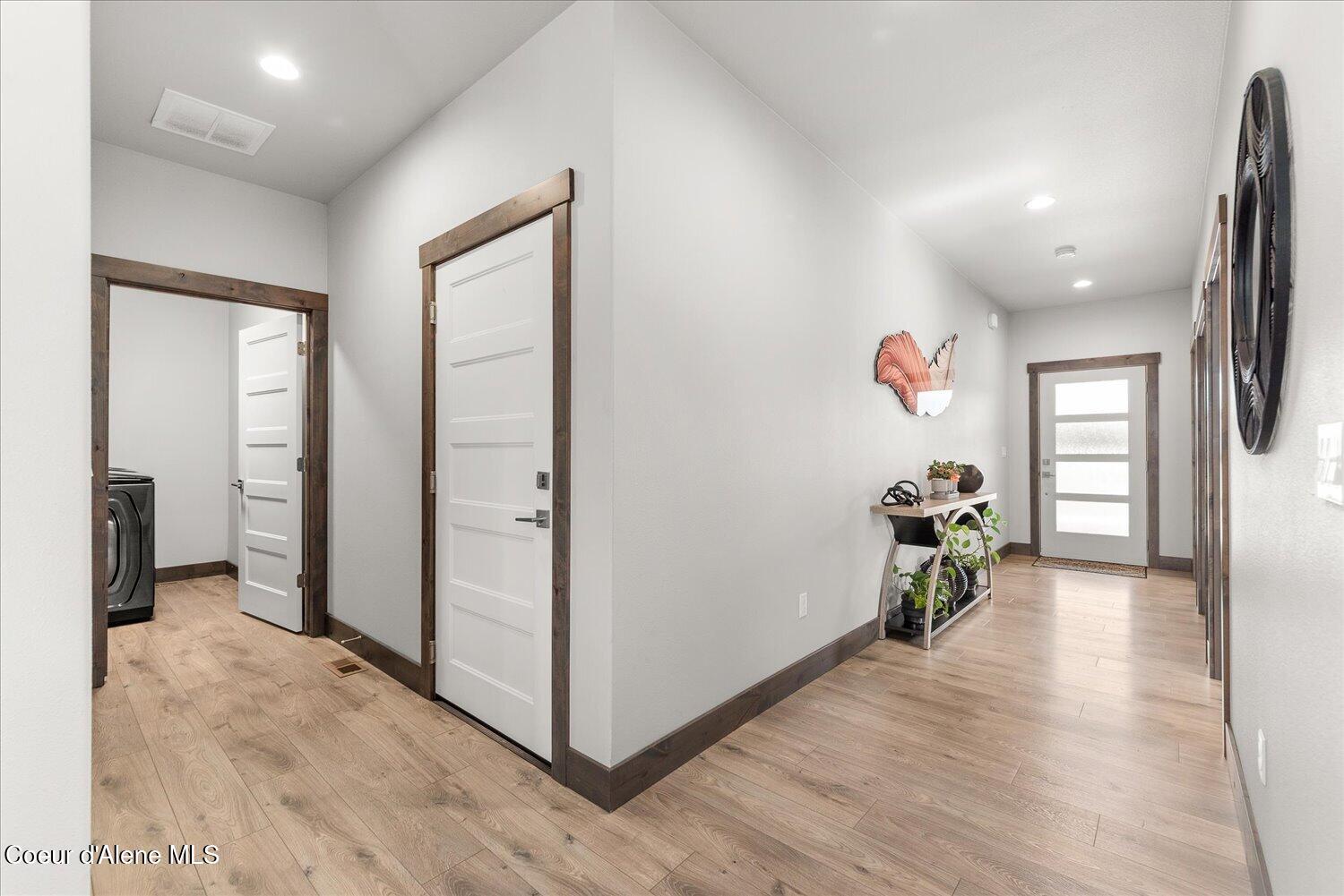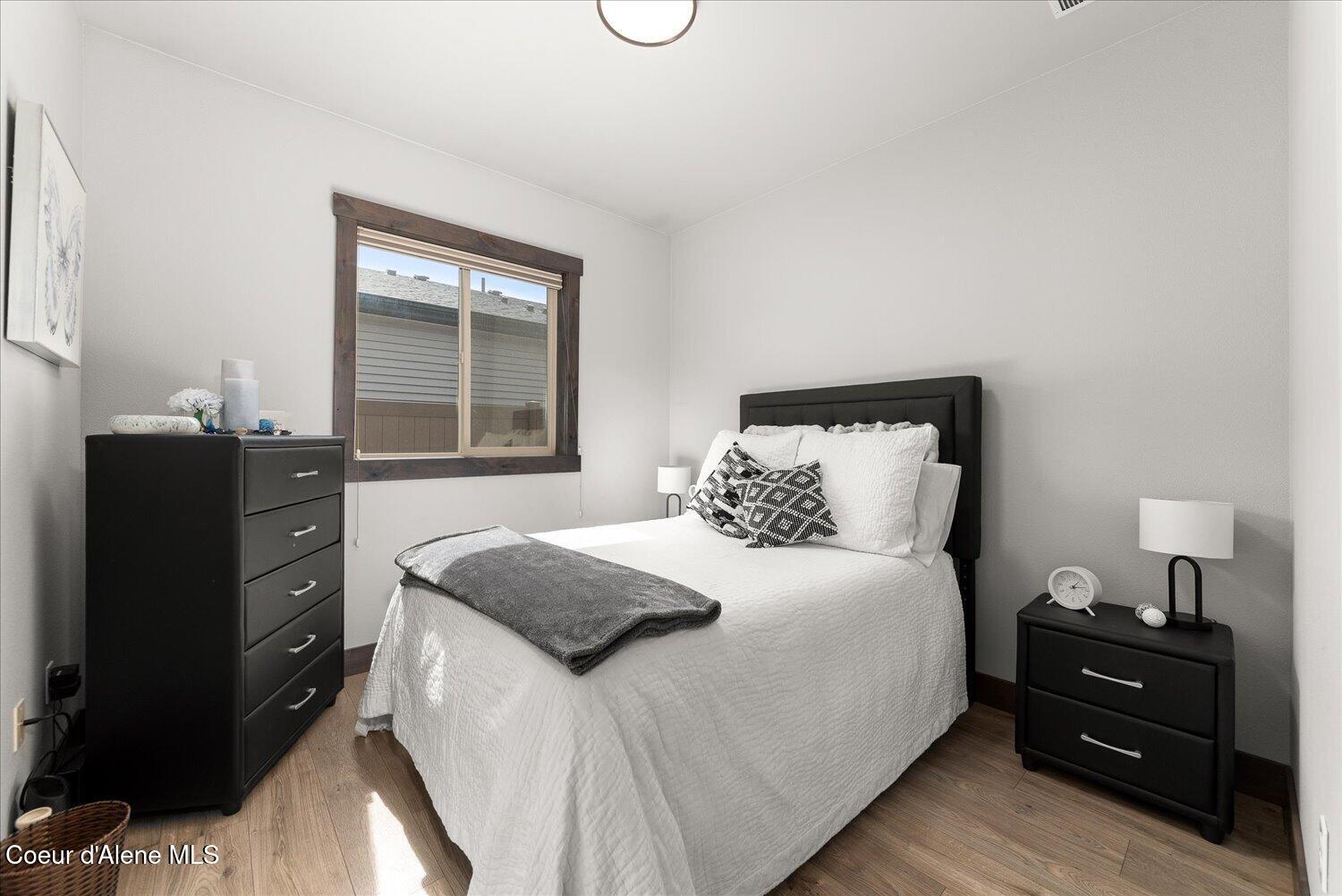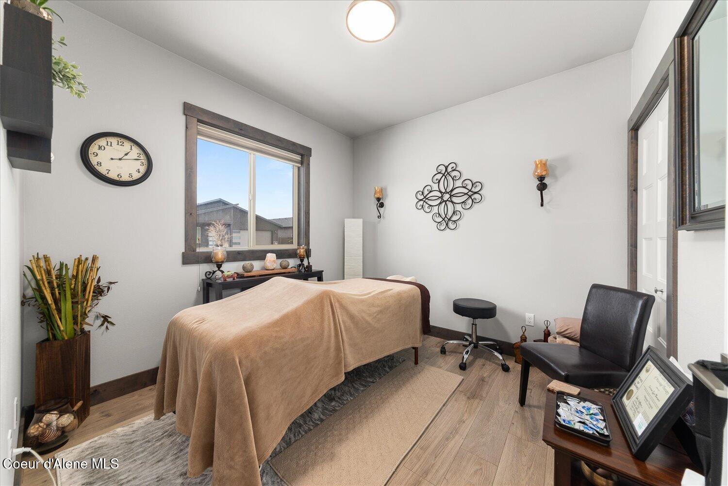 Diamond Spike 55+ community Single-level design Two covered back patios Quartz countertops Oversized finished garage Set in Diamond Spike in Rathdrum, this low-maintenance, turn-key home offers single-level living with a covered front porch, two covered back patios, landscaping, fencing, and sprinklers already in place. Inside, you will find luxury laminate flooring throughout, a gas fireplace, A/C, and abundant windows for natural light. The kitchen includes upgraded appliances, an island, custom knotty alder cabinets and trim, a composite sink, and quartz countertops throughout. The guest bath features a tiled tub/shower, while the primary suite offers a tiled roll-in shower and a walk-in closet with solid wood shelving. The oversized 2-car garage with polished floor is insulated and fully finished. HOA is $95/month which includes front yard maintenance and driveway/sidewalk plowing.