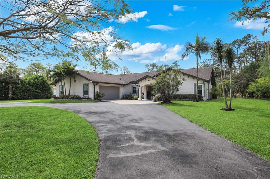 Rarely available estate living on 2.73 acres of 100% uplands in Golden Gate Estates-no HOA, no limits. This beautifully upgraded 2,500 sq ft home offers 3 bedrooms, 2.5 baths, plus a bright bonus sunroom overlooking your private resort-style pool. Inside, enjoy a fully redesigned kitchen with quartz countertops, oversized island (seating for 6), white cabinetry, and modern finishes throughout. Fresh interior/exterior paint, newer A/C, water heater, and whole-house filtration make this home truly move-in ready. Step outside to a newly built screened pool with picture window, travertine lanai, and lush sodded landscaping. The property is fully cleared and filled, featuring mature shade and fruit trees, plus a 100-ft privacy hedge for ultimate seclusion. Extras include an insulated detached garage, large storage shed, fire pit, fencing, and plenty of room to build a guest house, workshop, or more. Private, upgraded, and packed with potential-this is Golden Gate Estates living at its best.