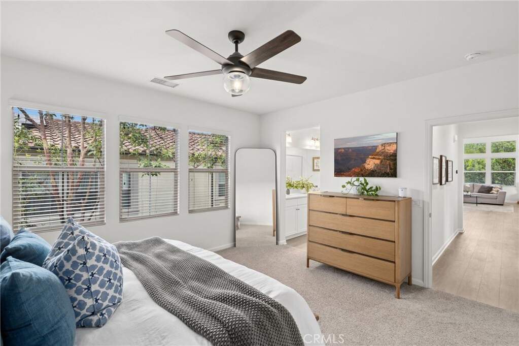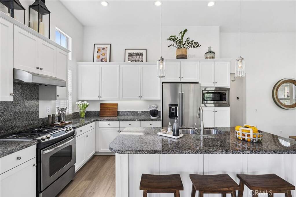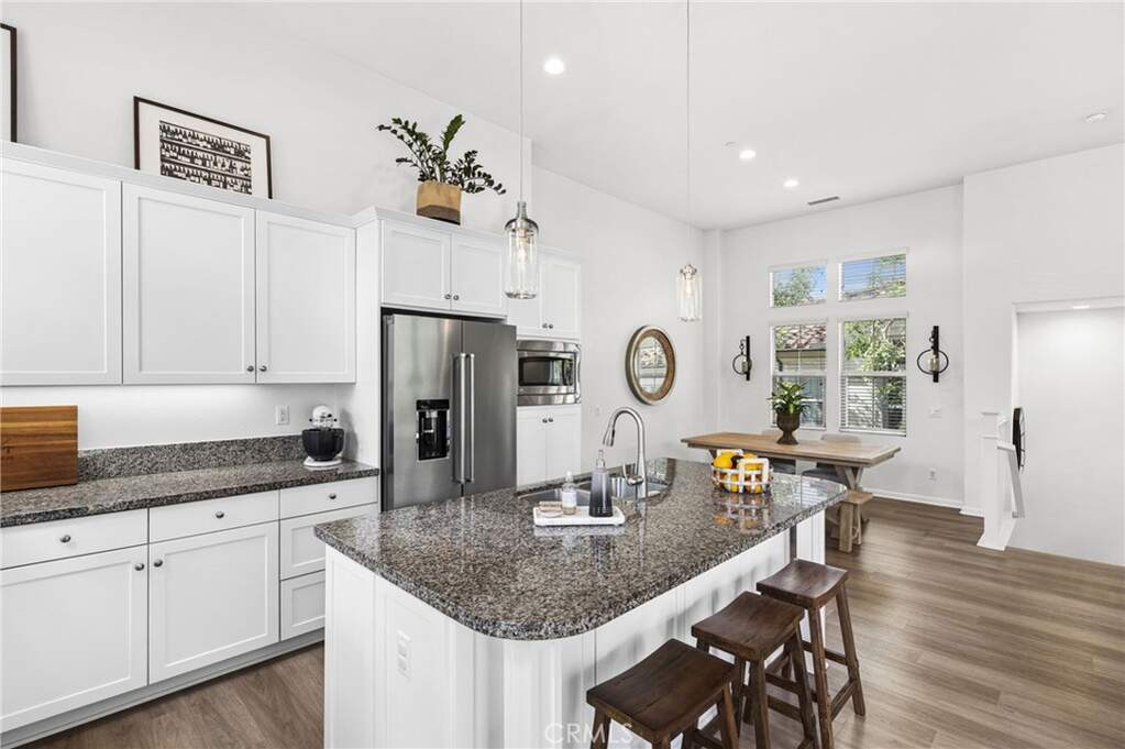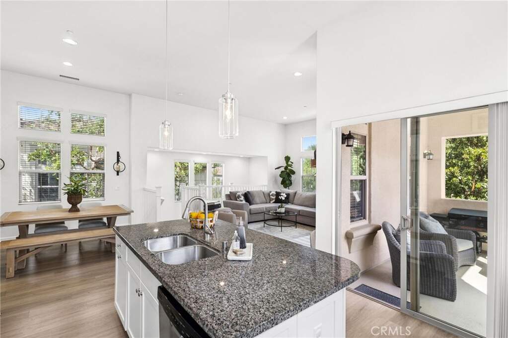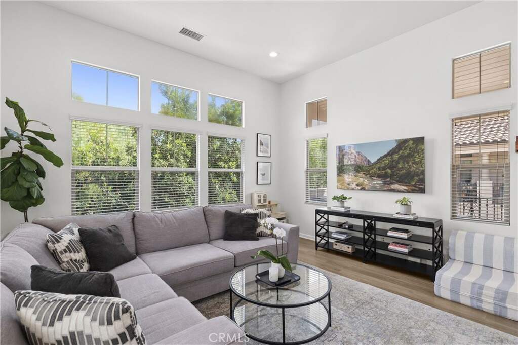 Beautiful 2-bedroom, 2-bath residence offers an ideal blend of comfort and style in a highly sought-after corner townhome in the heart of Woodbury, one of Irvine's most desirable communities. The light-filled living space with upgraded flooring features a great room and dining area with vaulted ceilings, seamlessly connected to a gourmet kitchen with granite countertops, a large island, and stainless-steel appliances. An idyllic private balcony enjoys tranquil views of the greenbelt and park. The spacious primary suite offers a walk-in closet and an en-suite bath with dual sinks, a soaking tub and glass enclosed shower. Additional features include a generous secondary bedroom, a secondary bathroom with tub, a fully equipped laundry room, an attached 2-car garage with epoxy flooring, spacious entry foyer, and additional storage. Located just steps from Woodbury's resort-style amenities, including The Commons, multiple parks, 7 private pools, tennis courts, volleyball, soccer and basketball fields, and picnic areas with BBQs. Close proximity to Woodbury Elementary and the community's vibrant shopping and dining center completes this exceptional offering.