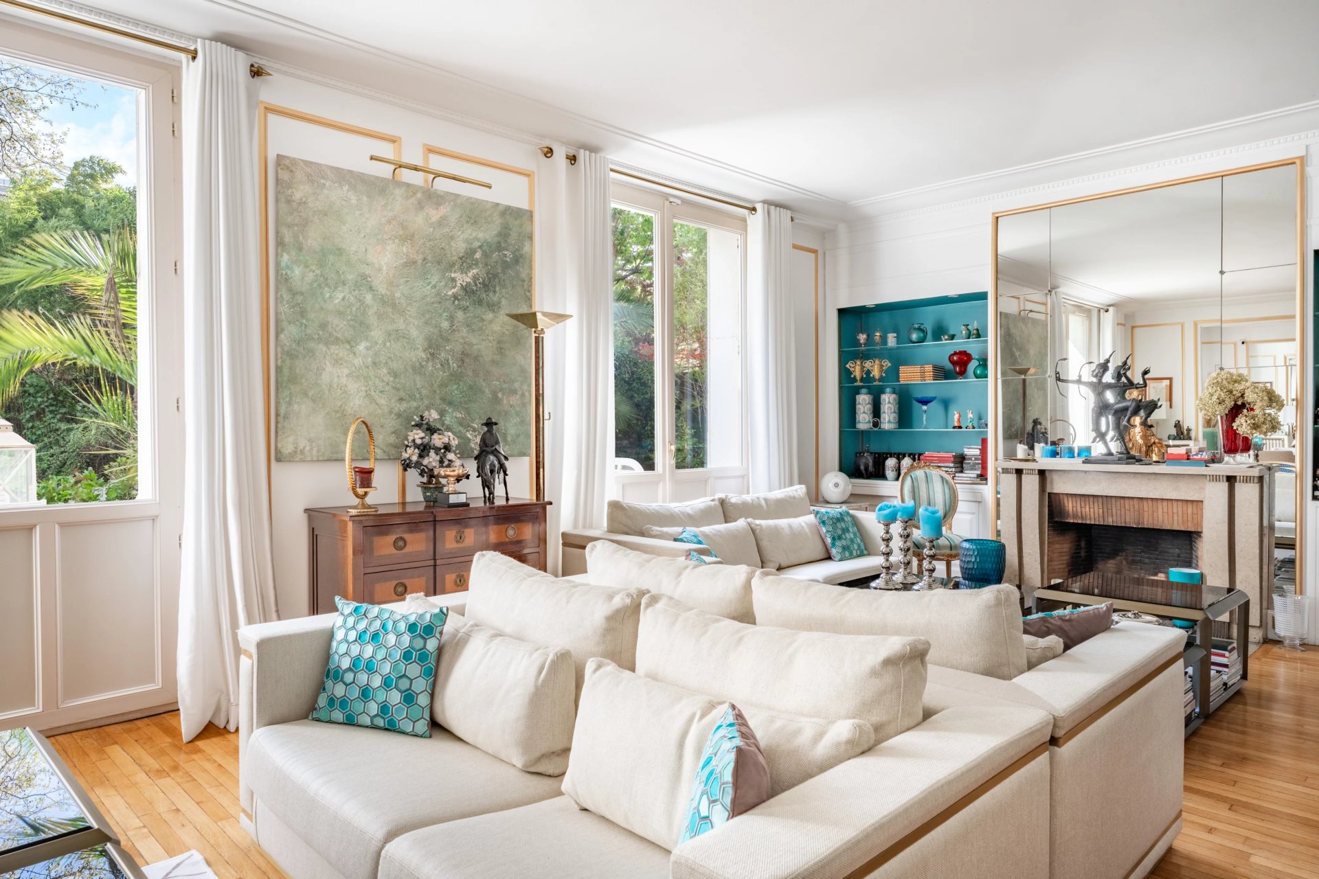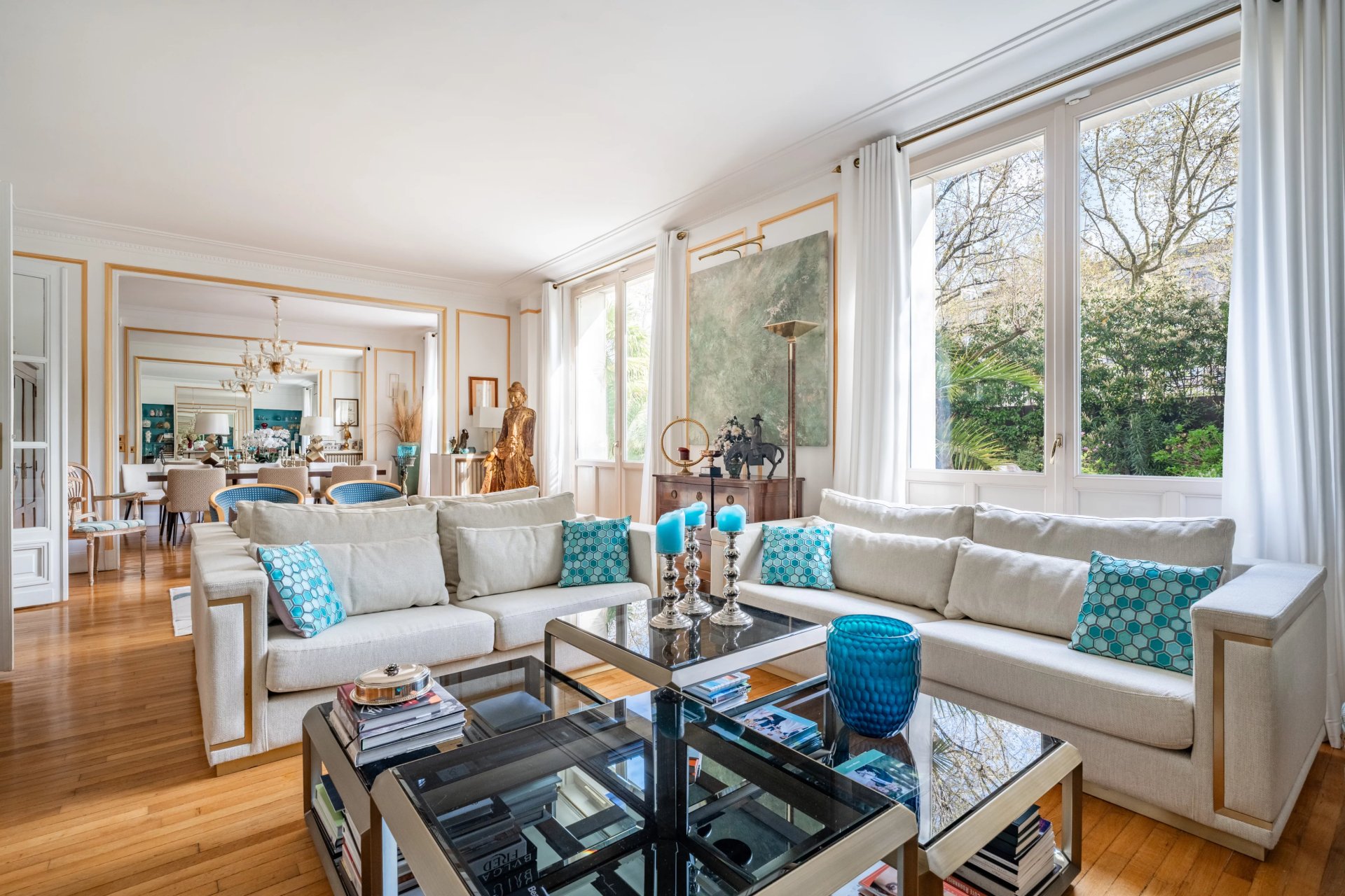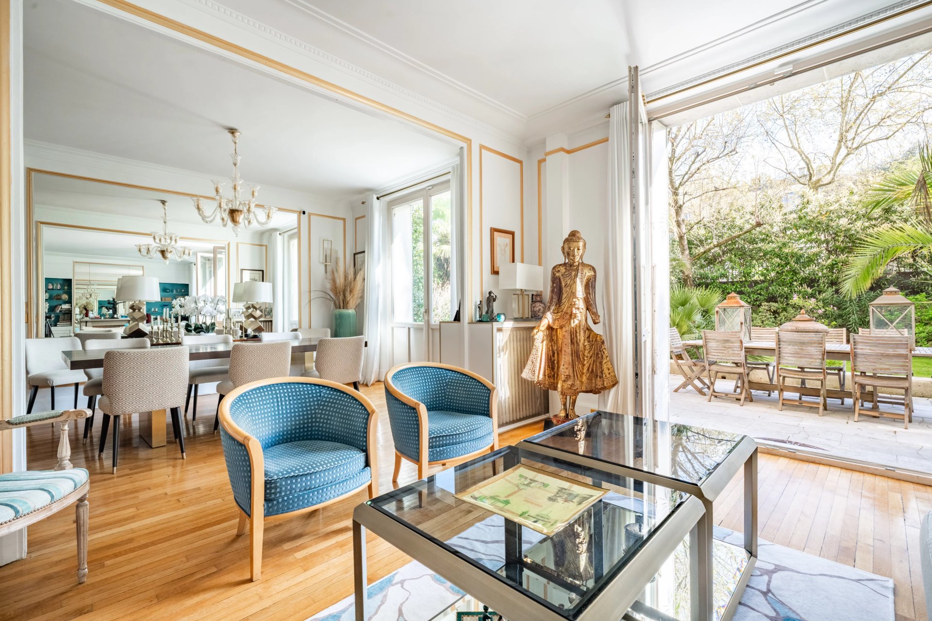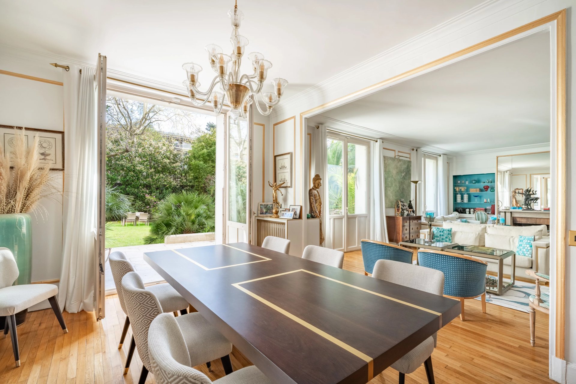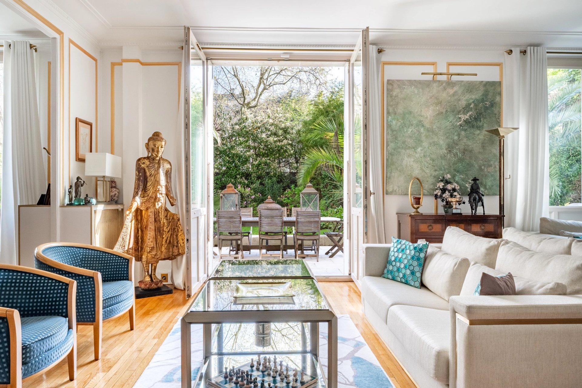 Chateau neighbourhood. This duplex apartment is on the garden level and 1st floor of a luxurious 1930s building offers 289 sqm of living space. Benefiting from a leafy 431 sqm garden, it includes a spacious living/reception room, a kitchen with dining facilities, three bedrooms, two bathrooms and a master suite. Upstairs are a further bedroom with ample storage space.