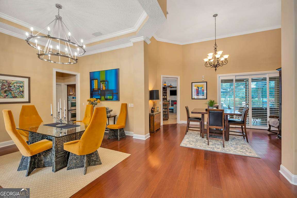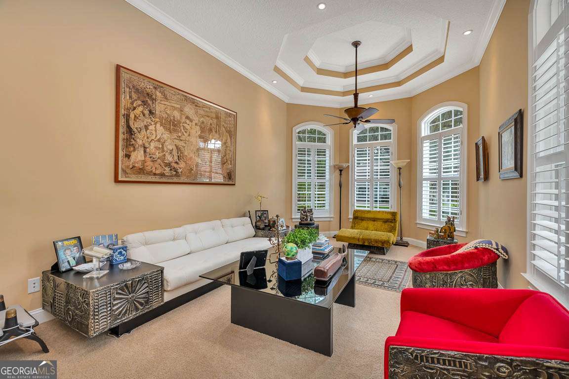 FROM THE MOMENT YOU ENTER THIS SPECTACULAR HOME, YOU WILL EXPERIENCE A BEAUTIFUL DESIGN!! High ceilings and tray ceilings...Natural light filling the whole house...plantation shutters on all the windows and sliding glass doors...seeing the screened pool and the sweeping views of the golf course and the clubhouse from most rooms...a generator for the entire house...and many other special features!! The open concept in the formal entrance has two areas...either of which could be a Dining Room or Living Room. The ceilings in this area are 16'-18' high. To the right of this is the picturesque Sitting Room. It has a dry bar with a wine cooler. It has 4 bedrooms and 3.5 baths. The gourmet Kitchen has a large center island with a sink, lots of cabinetry, a breakfast bar, an eat-in area, stainless steel appliances, a Jenn-Air gas cooktop, a warming drawer, double ovens, a microwave, an ice maker, a special hot water faucet, a trash compacter, granite countertops, and....it opens to the Family Room!! There is a split bedroom arrangement. The Primary Bedroom is on the right side of the house, and it has beautiful views of the screened porch, pool, the golf course, including the 1st tee, & the clubhouse. The ensuite bath has double vanities, a Whirlpool tub, and a separate shower. On the left side of the house are two bedrooms and a hall bath. At the back of the house is the 4th Bedroom and Bath. There is also a large Family Room with a fireplace with gas logs and built-in bookshelves. The fantastic screened heated pool/spa is perfect for relaxing and swimming...and entertaining. The Family Room has recessed music speakers connected in the ceilings that are wired out to the screened porch. There is also an outdoor kitchen with a grill and a refrigerator. There are three TV's in the house that will stay...and 3 refrigerators that will stay. Much of the furniture can remain!!!! The triple garage has Shark flooring. This home is on the corner of Rice Mill where you turn to go to the Clubhouse/Pro Shop and the 1st tee of the golf course. The views of the golf course are absolutely incredible!! This is a very special property with a one/half acre lot! This is a Zillow Showcase property. See it for more information along with a 360 walk-through video and floorplan.