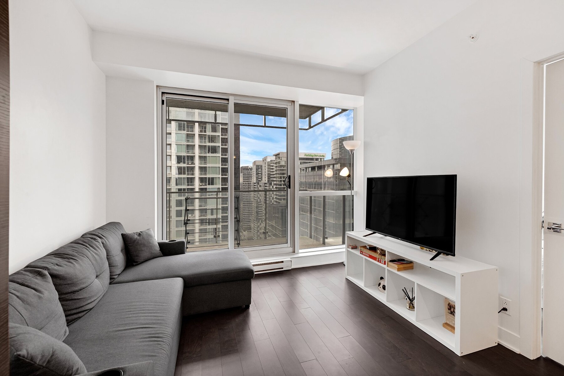Bright and spacious one-bedroom, one-bathroom condo in the desirable L'Avenue building. Featuring an open-concept layout, floor-to-ceiling windows, and modern finishes, this unit is filled with natural light and offers an exceptional lifestyle in the heart of downtown Montreal. Residents enjoy access to 5-star hotel-style amenities, including a pool, fitness centre, lounge areas, terrace, massage room, cinema room, common room, and 24/7 security. This unit also includes a storage space. A must-see!
