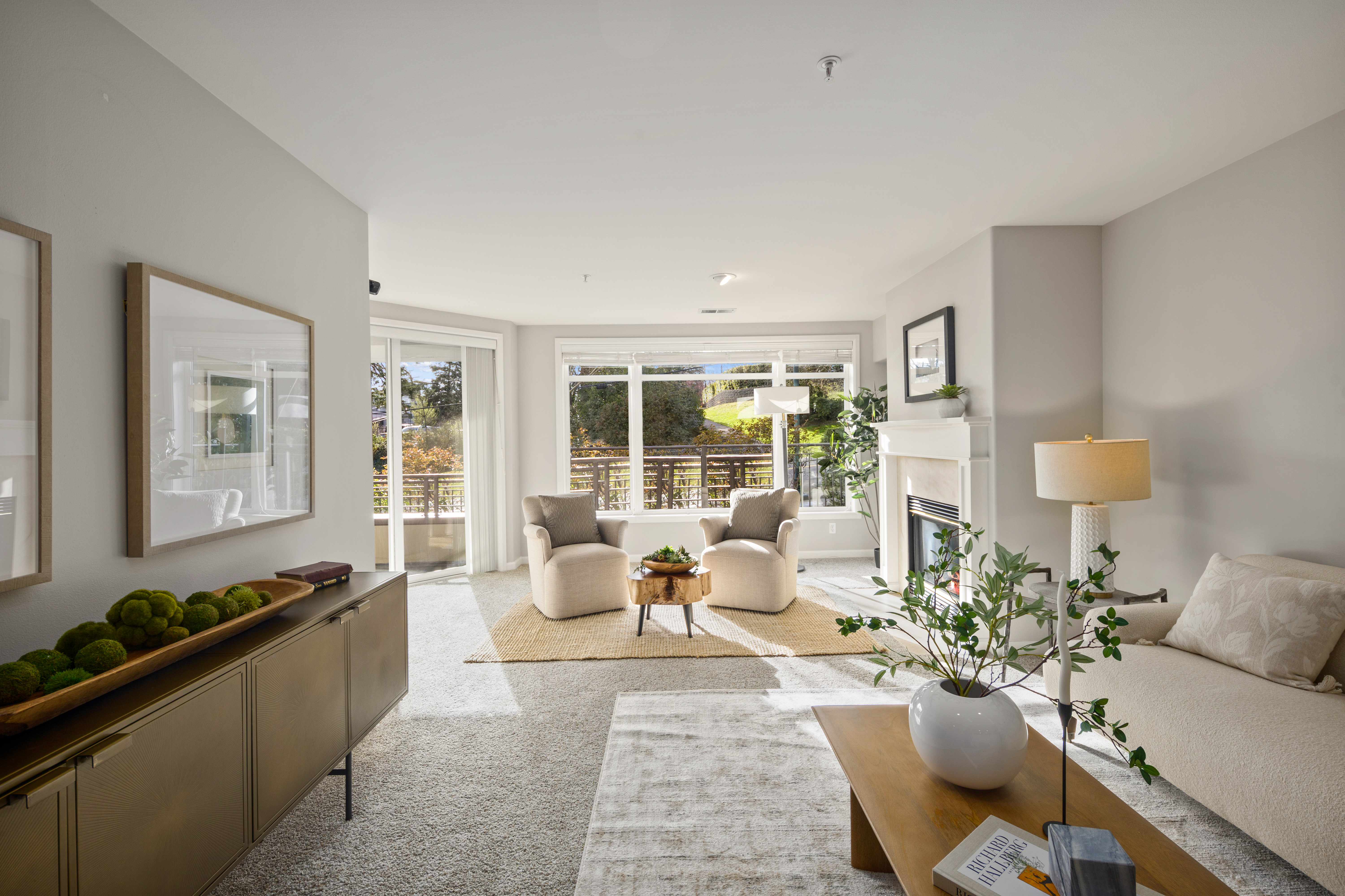 Experience refined living in the heart of downtown Kirkland at Brezza. This beautifully appointed 2-bedroom, 2-bath residence spans 1,440 square feet and is perfectly positioned with a sought-after south-facing orientation, filling the home with natural afternoon light.Designed for effortless living, the spacious floor plan offers seamless flow between living and dining areas, complemented by a cozy gas fireplace for winter evenings and glass doors that open to a generous deck—ideal for outdoor dining and relaxation during warmer months.Thoughtfully updated with new HVAC, washer and dryer, refrigerator, garbage disposal, cooking hood, and newly replaced windows, this home blends comfort with modern convenience.Brezza offers exceptional amenities including a large community room with kitchen for entertaining, fitness center, bike storage, and a newly updated mailroom—all supported by a well-managed and engaged HOA.Step outside and enjoy the best of Kirkland just moments away—marina, waterfront parks, acclaimed dining, boutique shopping, transit, the library, Kirkland Performance Center, and summer pool access.A rare opportunity to enjoy comfort, convenience, and vibrant urban living in one of Kirkland’s most desirable locations.