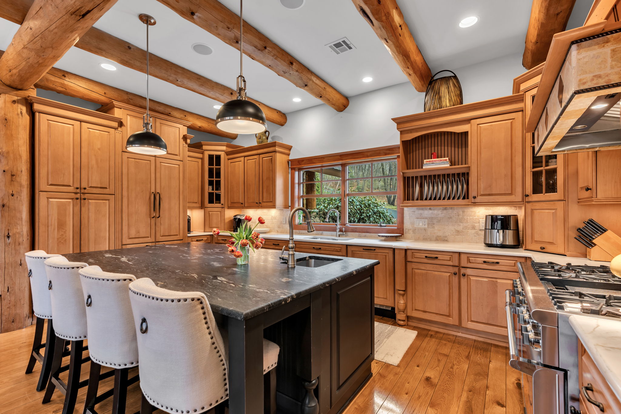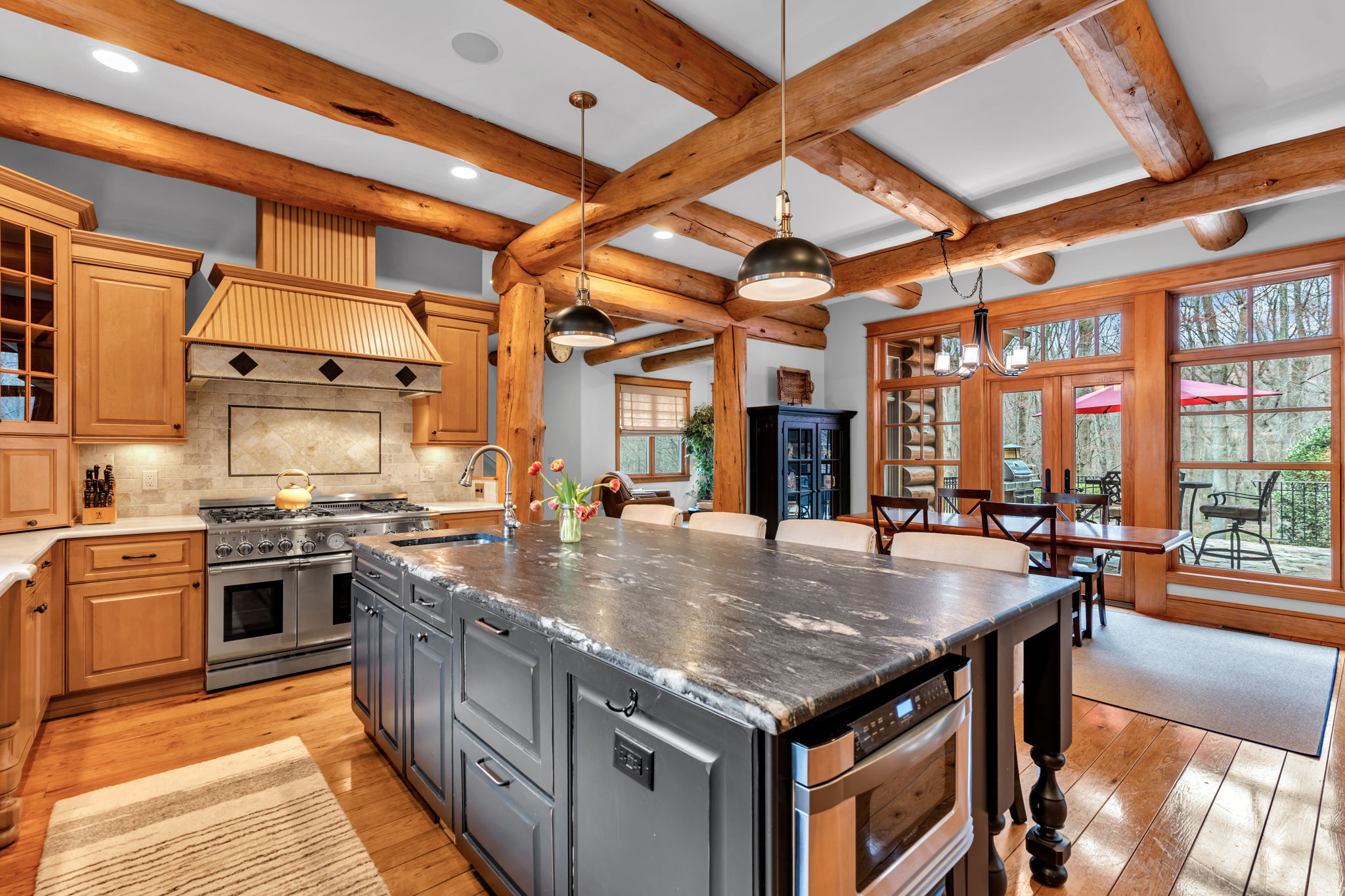 The great room's dramatic scale is balanced by thoughtful details throughout, including heated bathroom floors, smart-home technology, a whole house generator and multiple zones of climate control. Whether envisioned as a weekend escape or a full-time residence, this one-of-a-kind Middletown property is ideal for those seeking privacy, natural surroundings, exceptional craftsmanship, and a relaxed pace, offering a lifestyle that truly feels like being on vacation every day.