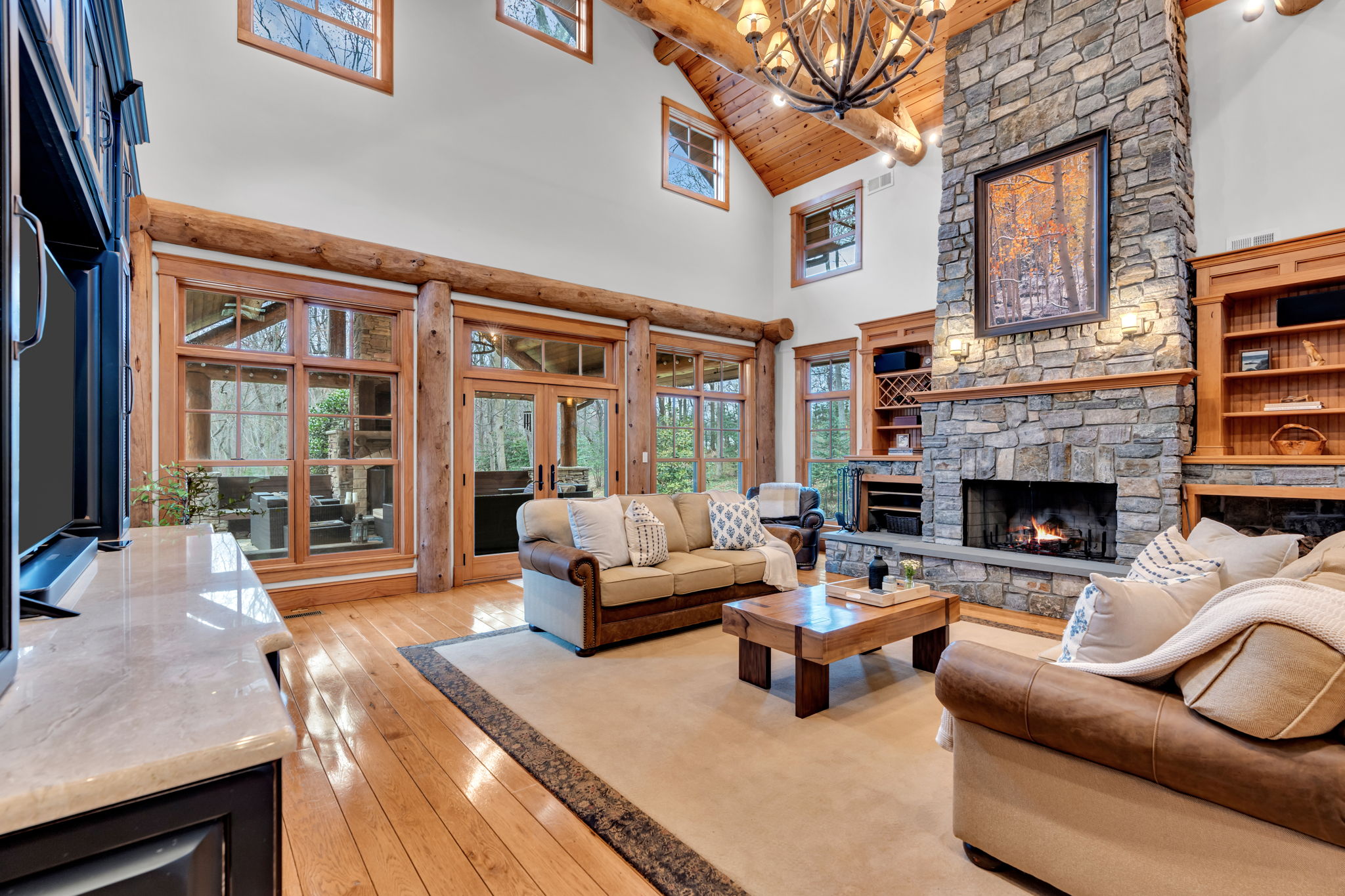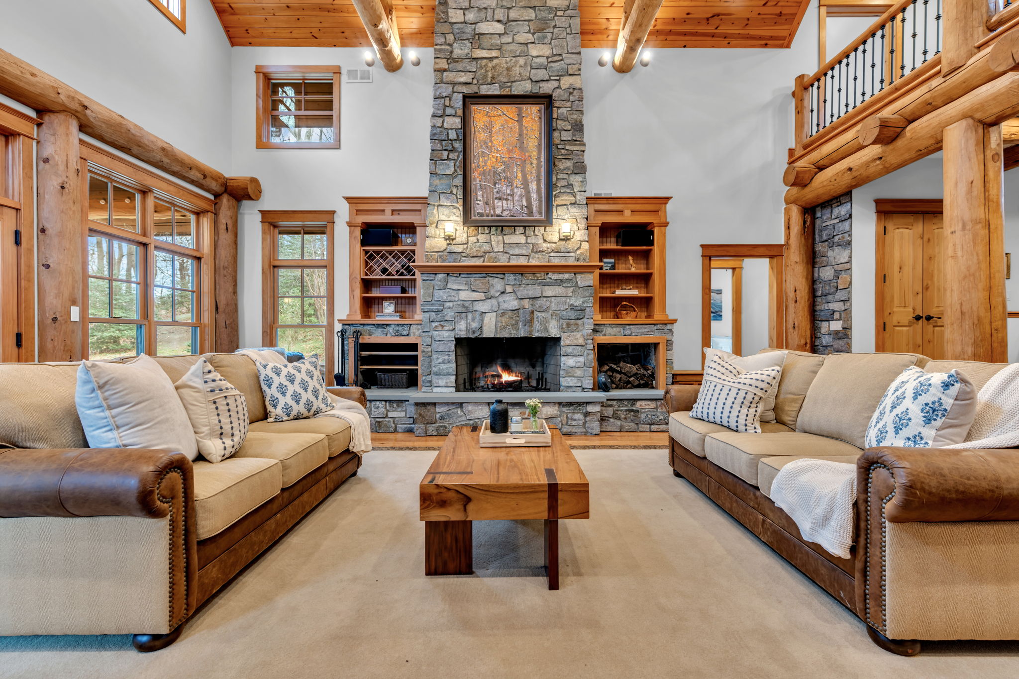 Coming soon-can't be shown until 4/10. Privately set down a long, tree-lined drive, this extraordinary custom log home feels like a mountain retreat; yet sits just minutes from everyday conveniences & within easy reach of NYC, the beach and public transportation. Designed by Moss Creek Log Homes and hand-crafted from massive timbers milled and hewn in Montana, the residence offers a level of authenticity and craftsmanship rarely found in New Jersey. Set on approximately 6.1 acres with a farm assessment that helps keep taxes lower, the property delivers exceptional privacy and a true sense of escape. Inside, soaring ceilings, rich hickory floors milled in Vermont, and three stone fireplaces create warm, lodge-inspired living spaces designed for both everyday comfort & memorable gatherings.