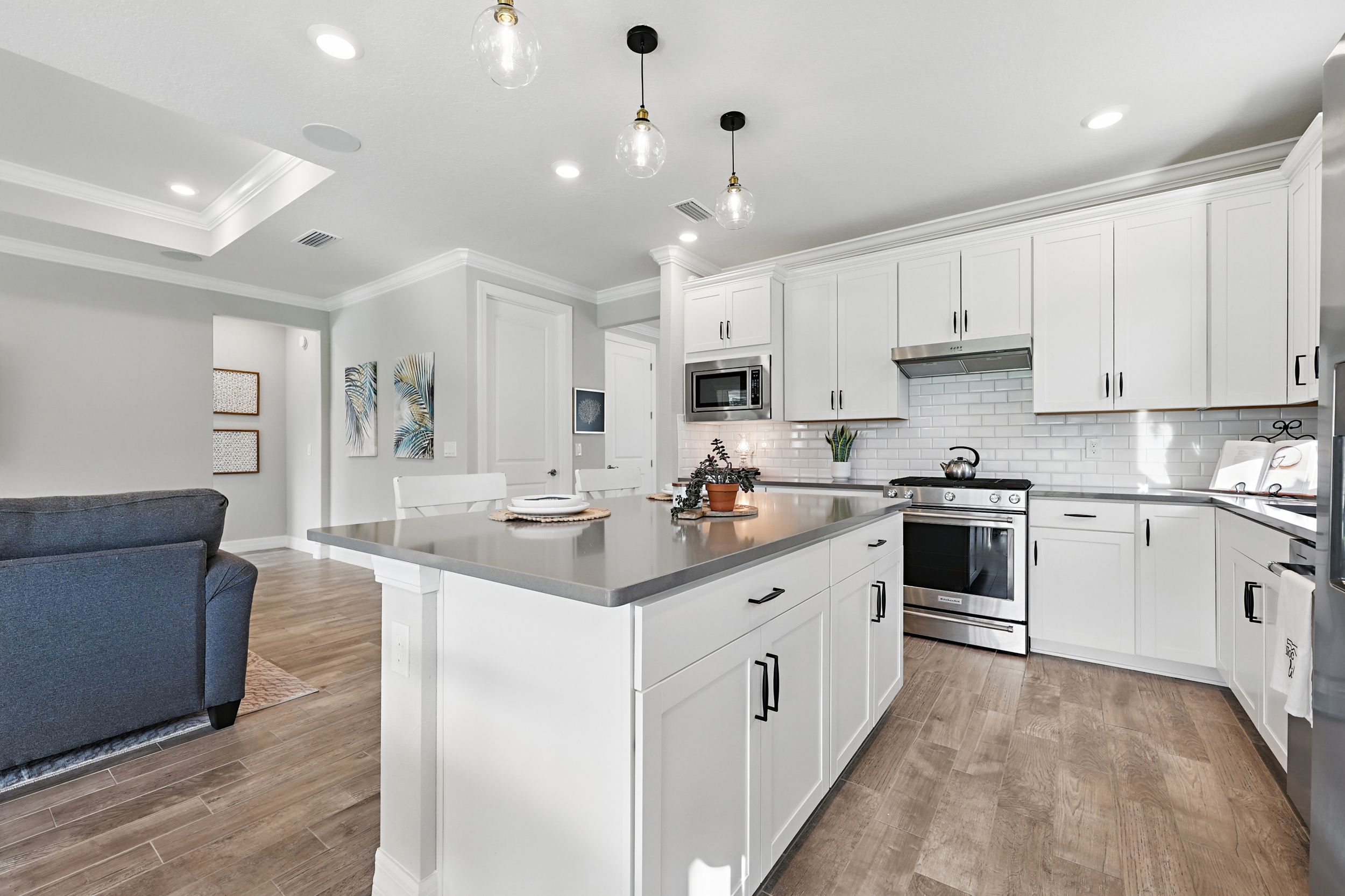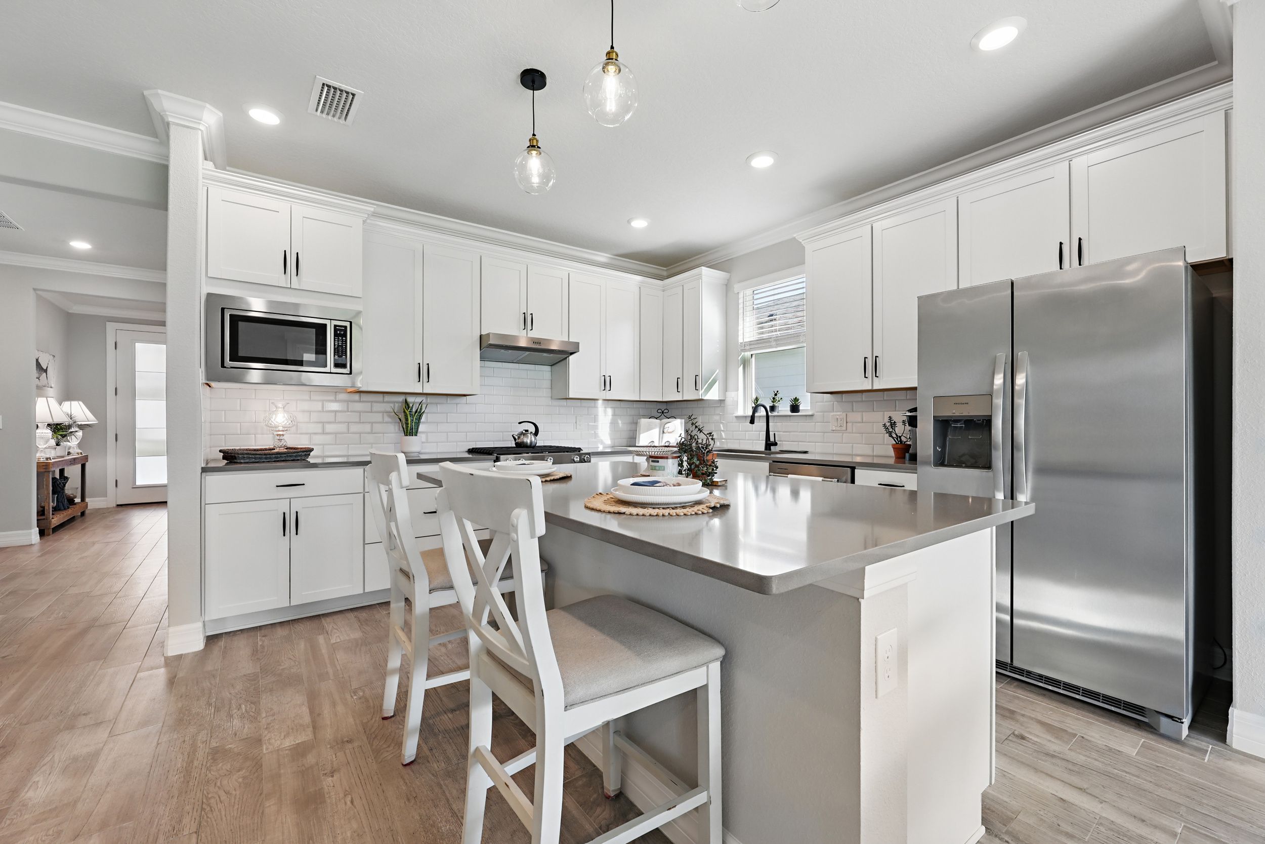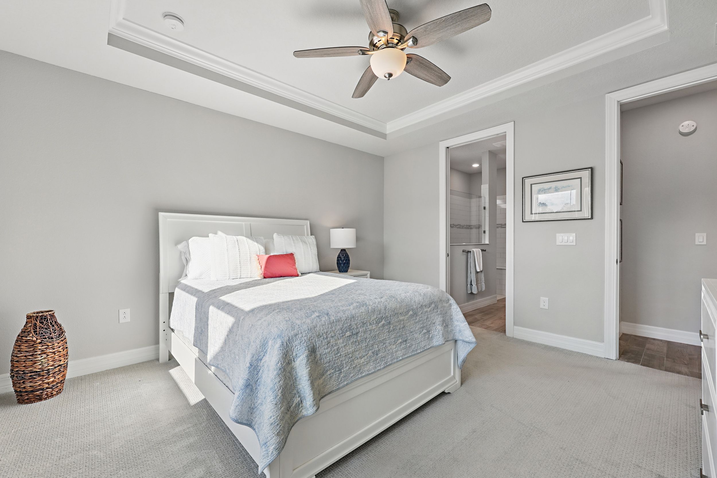 Welcome to Del Webb Nocatee and this beautifully upgraded 2-bedroom, 2-bathroom, 1,670 square foot home. Located walking distance to the Canopy Club, this home offers a serene water view and the perfect blend of comfort and elegance. As you enter, you'll be greeted by a bright and spacious open floor plan, with a stunning office that provides a peaceful space for work or relaxation. The upgraded kitchen is a chef's dream, featuring high-end finishes, modern appliances, and ample counter space. The Synergy Surround Sound System functions not only through the living area, but also on the back lanai. The inviting front porch provides a charming space to enjoy your morning coffee or relax with a good book while the back lanai looks over a beautiful pond and preserve. The Master Suite has been thoughtfully designed to overlook the water and offers a spa-like experience with luxurious frameless shower and sleek finishes. Live the lifestyle you've always dreamed of in the highly sought-after Del Webb community, offering resort-style pools and amenities and an active, vibrant atmosphere. There is a 24 hour guarded gate and a full activities calendar for both Del Webb and Nocatee.As a Nocatee resident, the community includes two waterparks, four other neighborhood pools, numerous playgrounds and dog parks, greenway walking trails, a kayak launch, fitness center, pickleball, tennis, and basketball courts, a full activity calendar, and is fully golf cart accessible. Plus, you're only minutes away from the stunning beaches of Ponte Vedra, allowing you to enjoy the Florida sunshine whenever you wish.