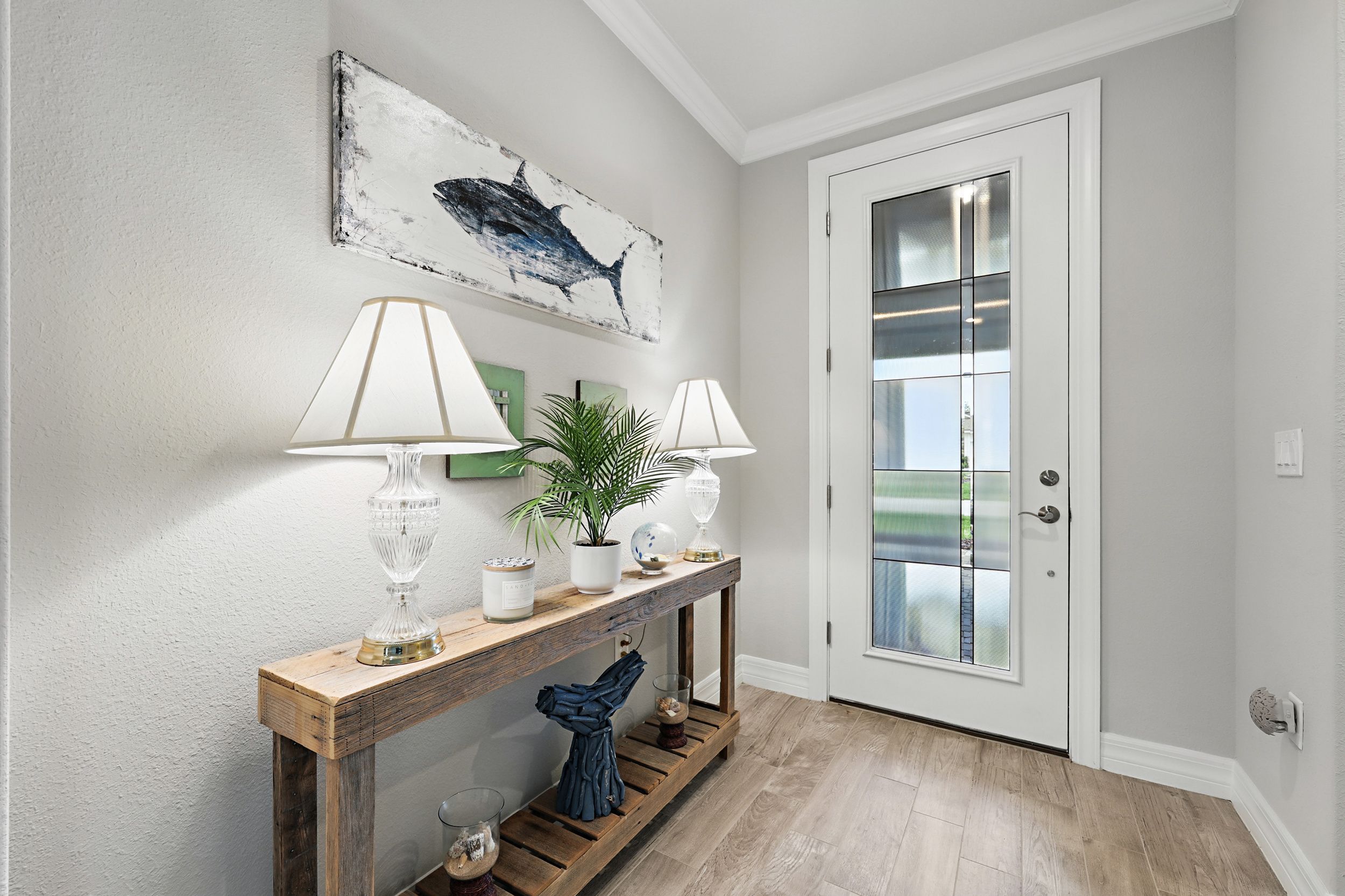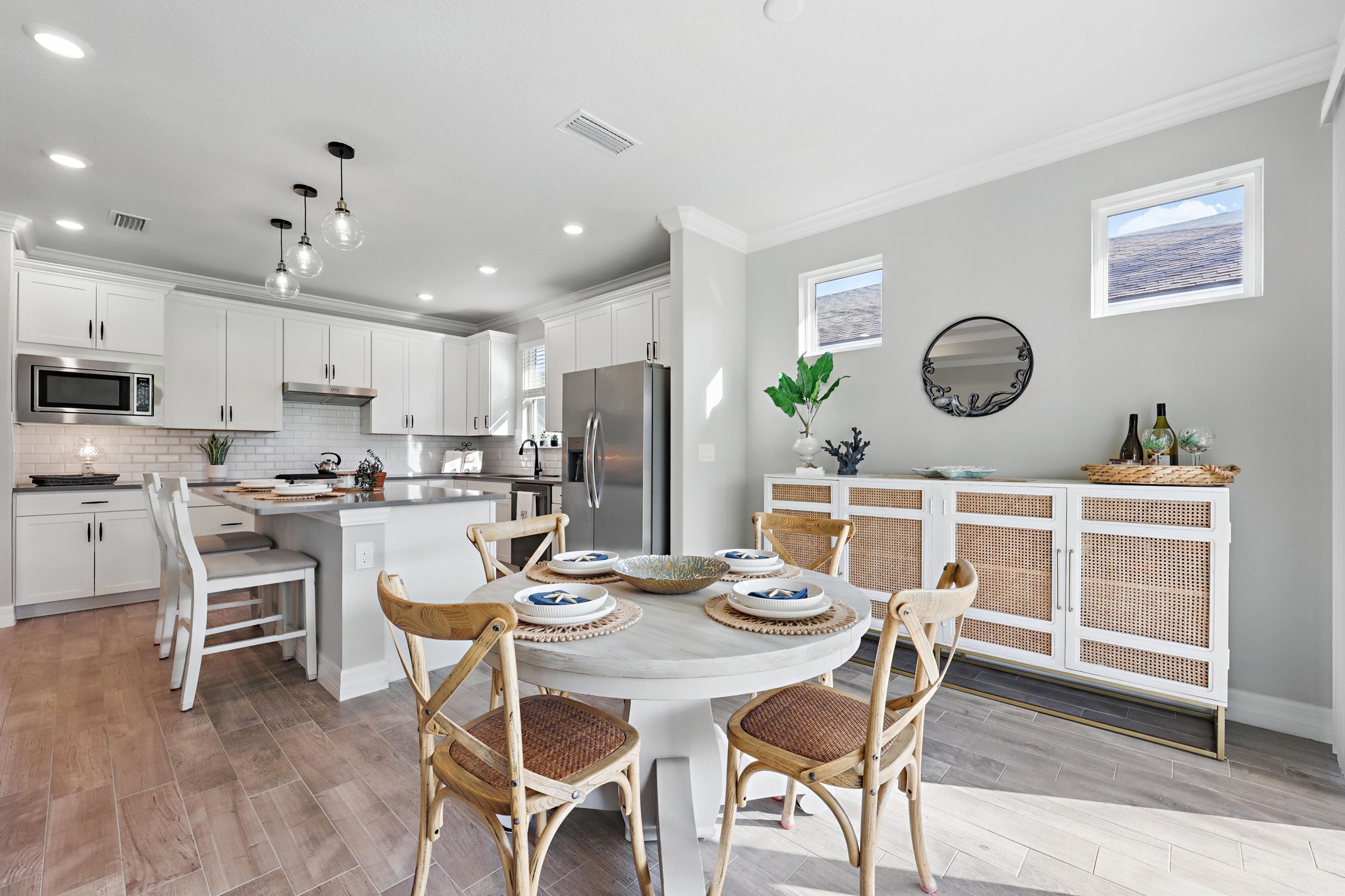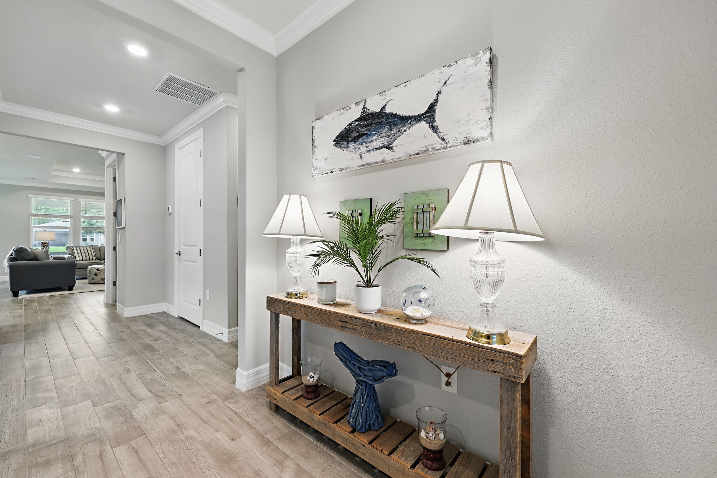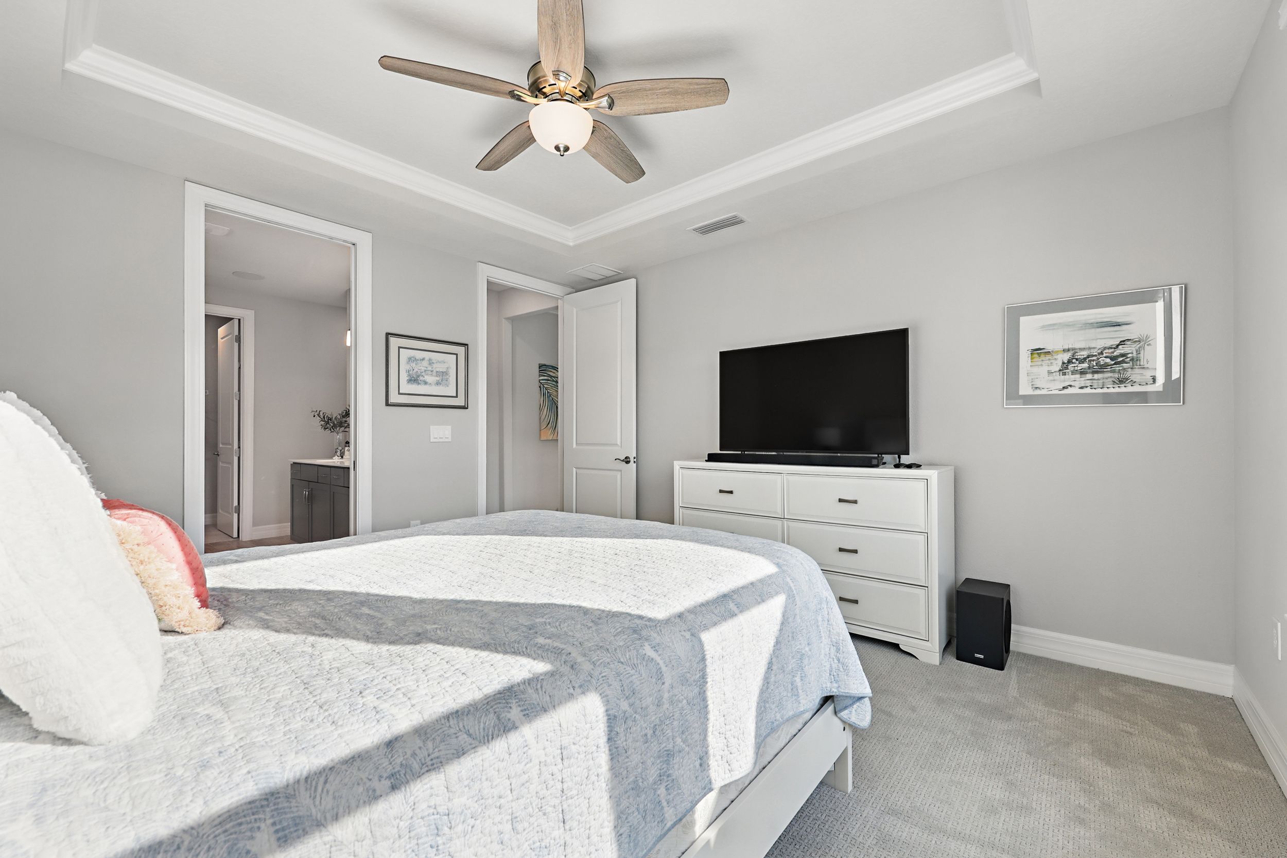 Welcome to Del Webb Nocatee and this beautifully upgraded 2-bedroom, 2-bathroom, 1,670 square foot home. Located walking distance to the Canopy Club, this home offers a serene water view and the perfect blend of comfort and elegance. As you enter, you'll be greeted by a bright and spacious open floor plan, with a stunning office that provides a peaceful space for work or relaxation. The upgraded kitchen is a chef's dream, featuring high-end finishes, modern appliances, and ample counter space. The Synergy Surround Sound System functions not only through the living area, but also on the back lanai. The inviting front porch provides a charming space to enjoy your morning coffee or relax with a good book while the back lanai looks over a beautiful pond and preserve. The Master Suite has been thoughtfully designed to overlook the water and offers a spa-like experience with luxurious frameless shower and sleek finishes. Live the lifestyle you've always dreamed of in the highly sought-after Del Webb community, offering resort-style pools and amenities and an active, vibrant atmosphere. There is a 24 hour guarded gate and a full activities calendar for both Del Webb and Nocatee.As a Nocatee resident, the community includes two waterparks, four other neighborhood pools, numerous playgrounds and dog parks, greenway walking trails, a kayak launch, fitness center, pickleball, tennis, and basketball courts, a full activity calendar, and is fully golf cart accessible. Plus, you're only minutes away from the stunning beaches of Ponte Vedra, allowing you to enjoy the Florida sunshine whenever you wish.