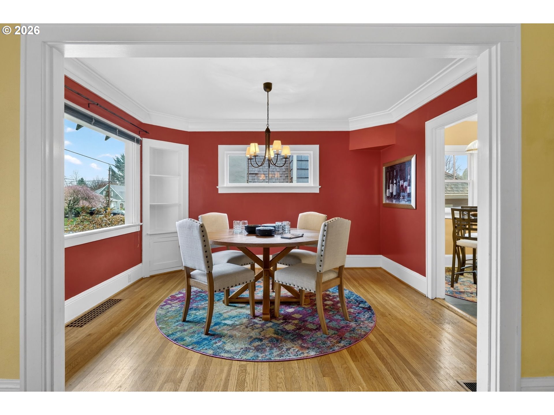 Located in the Irvington Historic District on part of the neighborhood Greenway network designed to be a low traffic, low speed residential streets prioritizing people walking, biking, and rolling, connecting schools, parks, and business districts. Come home to this rare oversized Irvington lot - 143% of average size in neighborhood - with the majority of the outdoor area located in the backyard that includes an outdoor covered living room with a wood-burning fireplace perfect for great entertaining. Stepping inside this unassuming home onto original hardwood floors throughout the main floor you'll find a colorful jewel box with room for everyone. Starting with an open view living room/dining room/den combination anchored by a wall with another wood-burning fireplace and built-in bookshelves. The west-facing front plate glass windows flood the rooms with light but with just the right level of privacy. If it's light you want, check out the sun porch for your horticultural endeavors or sipping morning coffee and reading the newspaper. The adjoining formal dining room is perfect for hosting comfortable meals. Making those meals will be a delight in the custom remodeled kitchen with upscale finishes and massive storage. Rounding out the main floor is a large bedroom and fully remodeled bath with a walk-in shower. Upstairs are three more bedrooms with the primary being immediately adjacent to the totally remodeled spa-style bath ready for the most relaxing experience highlighted by a freestanding soaking tub, large walk in-shower with rainfall showerhead, dual vanity and separate water closet. Need storage? This home has more storage options than you'll know what to do with. Moving downstairs is the laundry, a large bonus room that could be a non-conforming additional bedroom, another bath and lots of extra space for hobbies, workshop and even more storage plus an exterior entry directly to the driveway, which has space for 3+ cars, and the detached 2-car tandem garage. [Home Energy Score = 1. HES Report at https://rpt.greenbuildingregistry.com/hes/OR10245995]