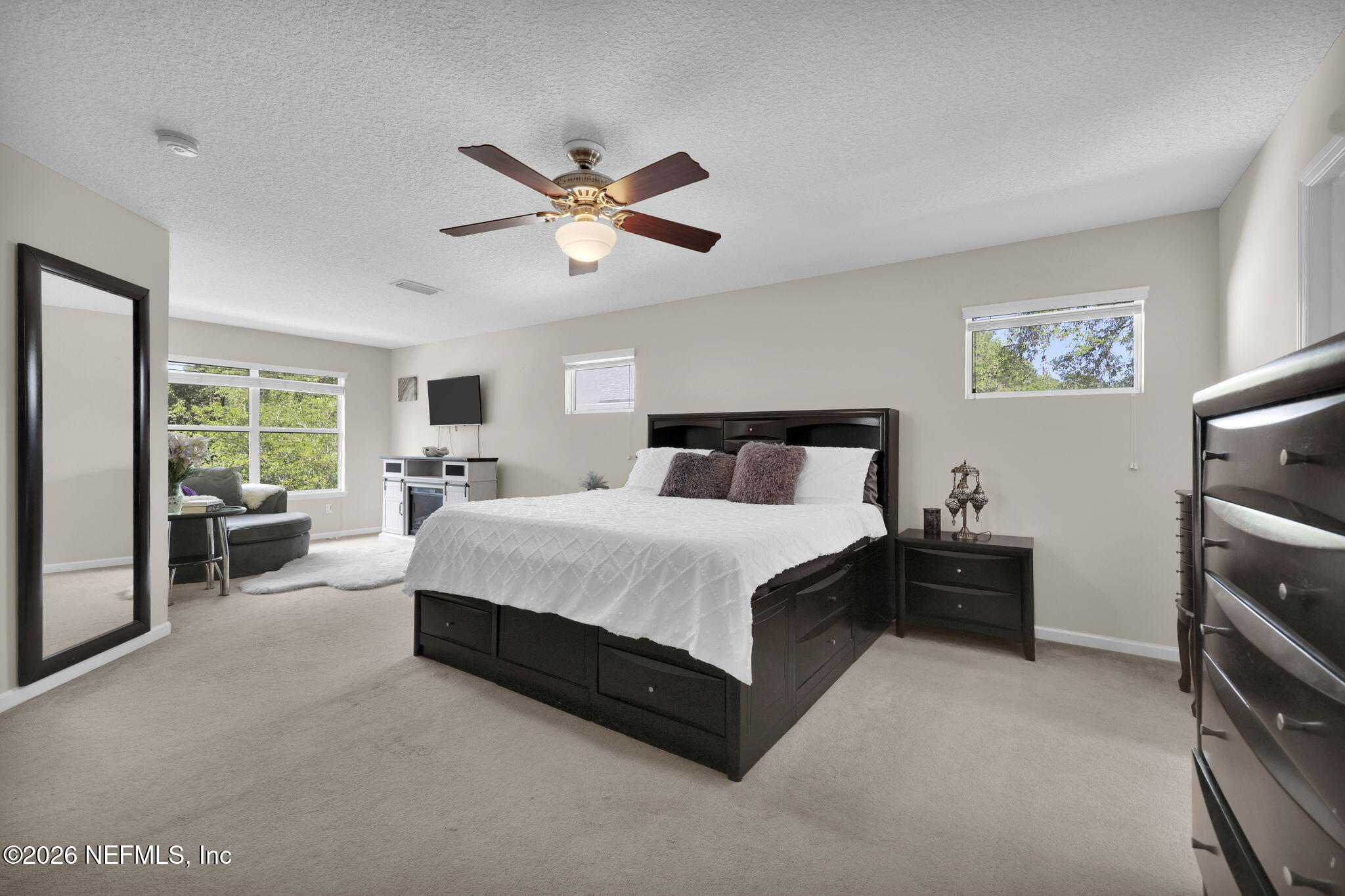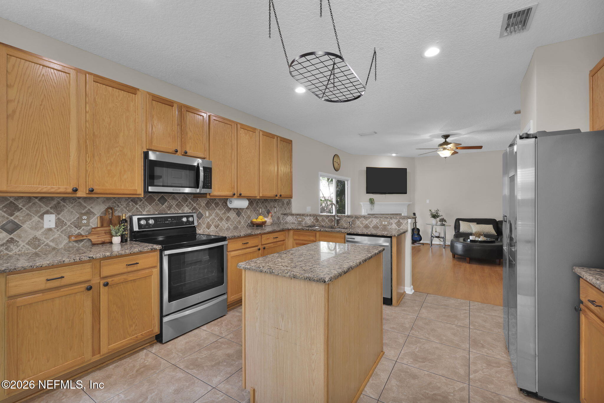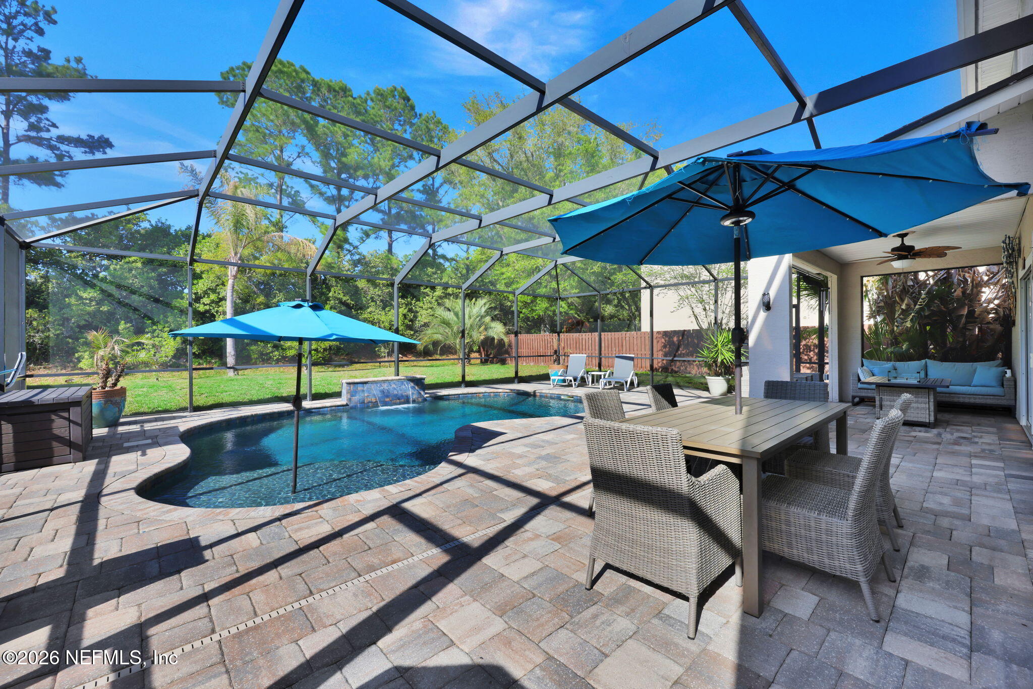 Warm and inviting, this home is designed around a backyard that truly sets it apart. The outdoor space is the highlight-featuring a large custom pool with waterfall, sunshelf, bubblers, and soft LED lighting, all set within a screened lanai and expansive paver patio with plenty of space to relax or entertain. Inside, the home feels just as welcoming, with an open, light-filled layout. The kitchen anchors the main living spaces with granite surfaces, a center island, double pantries, and a bright breakfast nook overlooking the pool. It opens naturally to the family room with a fireplace, creating an easy, connected living space, while formal living and dining areas provide flexibility for entertaining. Upstairs, the primary suite offers a spacious retreat with a sitting area and large bath, while the additional bedrooms are generously sized and thoughtfully arranged. Located in South Hampton, a golf course community known for its gorgeous amenities-including a community pool, RV and boat storage, tennis and basketball courts, a fitness center, and playground-along with larger homesites that offer a sense of space and privacy. Convenient to beaches, shopping, and dining, and part of a highly rated school district, this home offers the best of the Florida lifestyle.