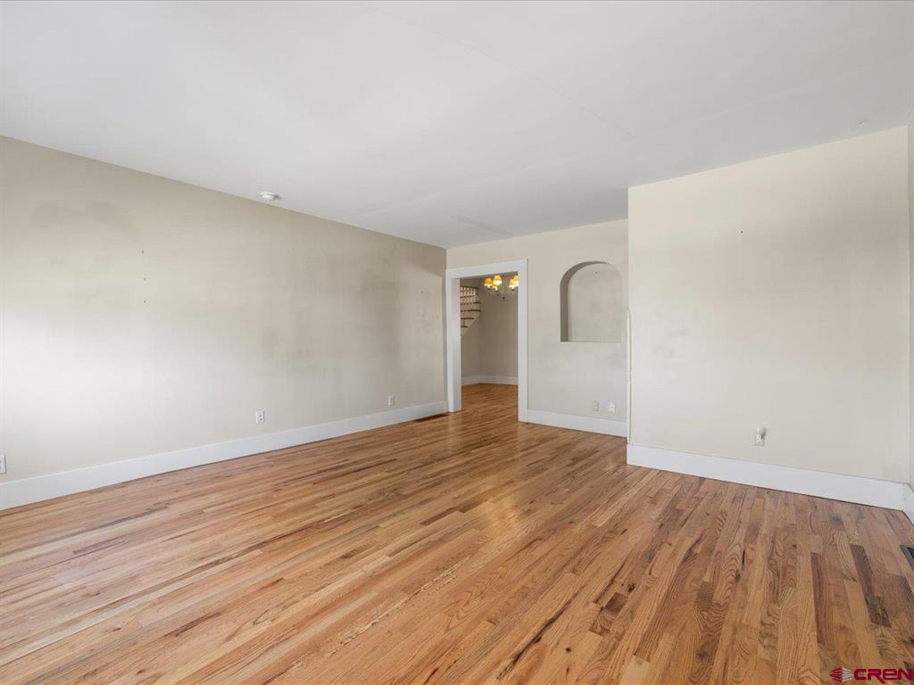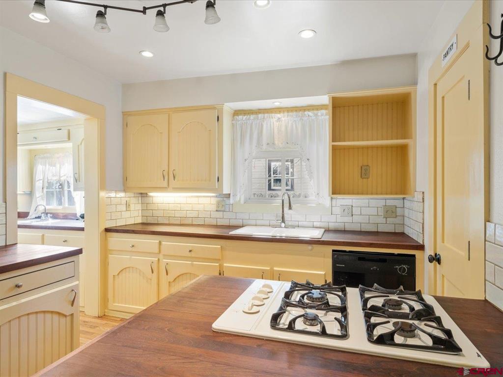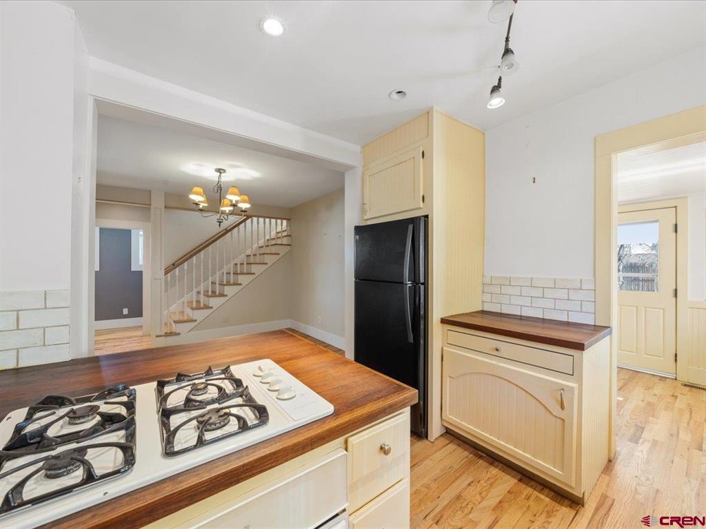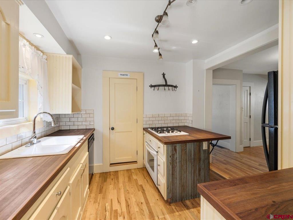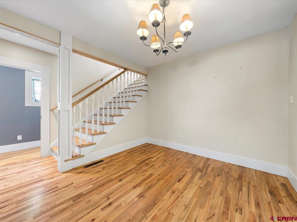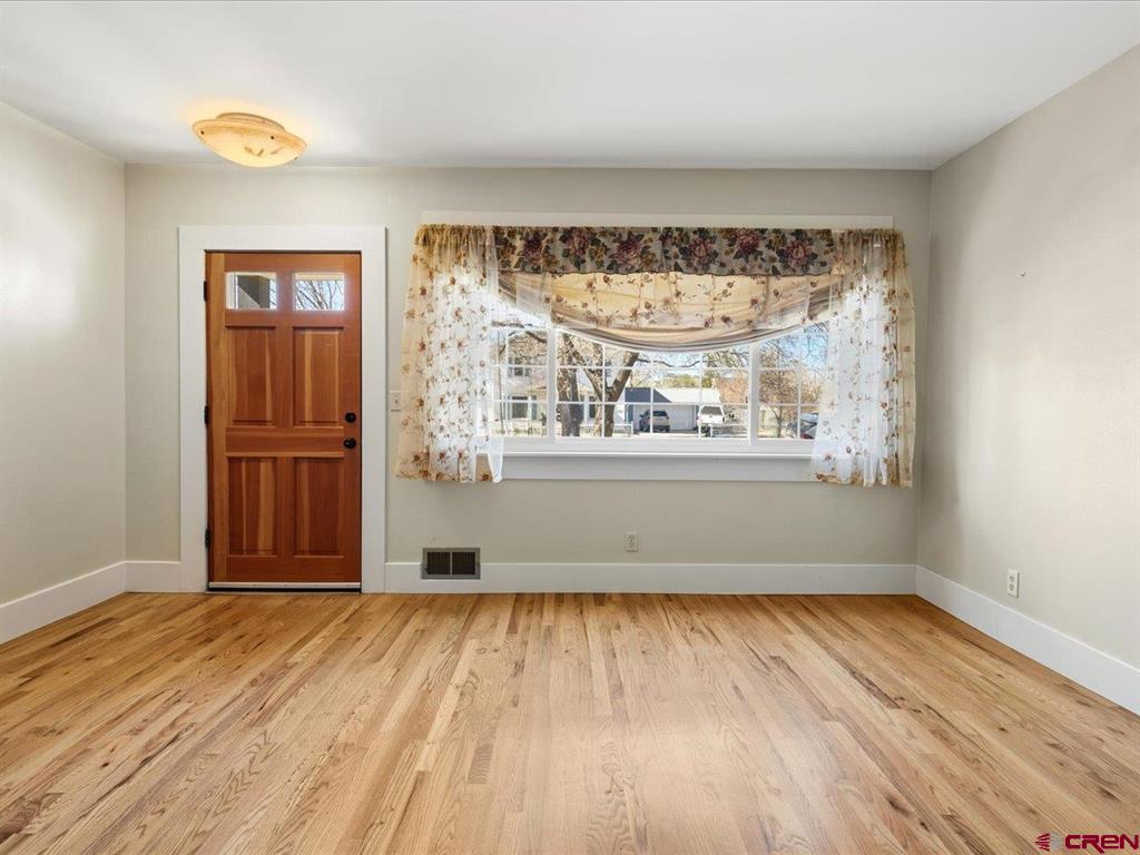 Updated, Cozy & Full of Historic Charm in the Heart of Downtown Montrose! Step into this beautifully remodeled 1912 two-story home where timeless character meets modern comfort. The main level offers a spacious living room, an open kitchen and dining area with pantry, plus a functional mudroom with wet bar and half bath - perfect for entertaining. The main-level primary suite is a true retreat, featuring a walk-in closet and private bath highlighted by a clawfoot tub and spacious tiled walk-in shower. Upstairs, you'll find a welcoming family room with vaulted ceilings, three additional bedrooms, a bath with a newly updated shower, and a conveniently located laundry area. Throughout the home, enjoy beautiful wood floors, newer vinyl windows, and forced air heating with central A/C for year-round comfort. Step outside to your own private backyard oasis where lush, mature landscaping surrounds a large covered porch, creating the perfect setting for relaxing or hosting gatherings. The property also features a workshop with a small overhead door, off-street alley access parking, and a variety of fruit trees including plum, peach, cherry, and apple. Ideally located in downtown Montrose, you can bike or walk to restaurants, shops, theaters, and the river park, making this home as convenient as it is charming. The Montrose Regional Airport and Montrose Regional Hospital are both five minutes away adding to the convenience of living downtown. A rare blend of character, updates, and location - don't miss this one!