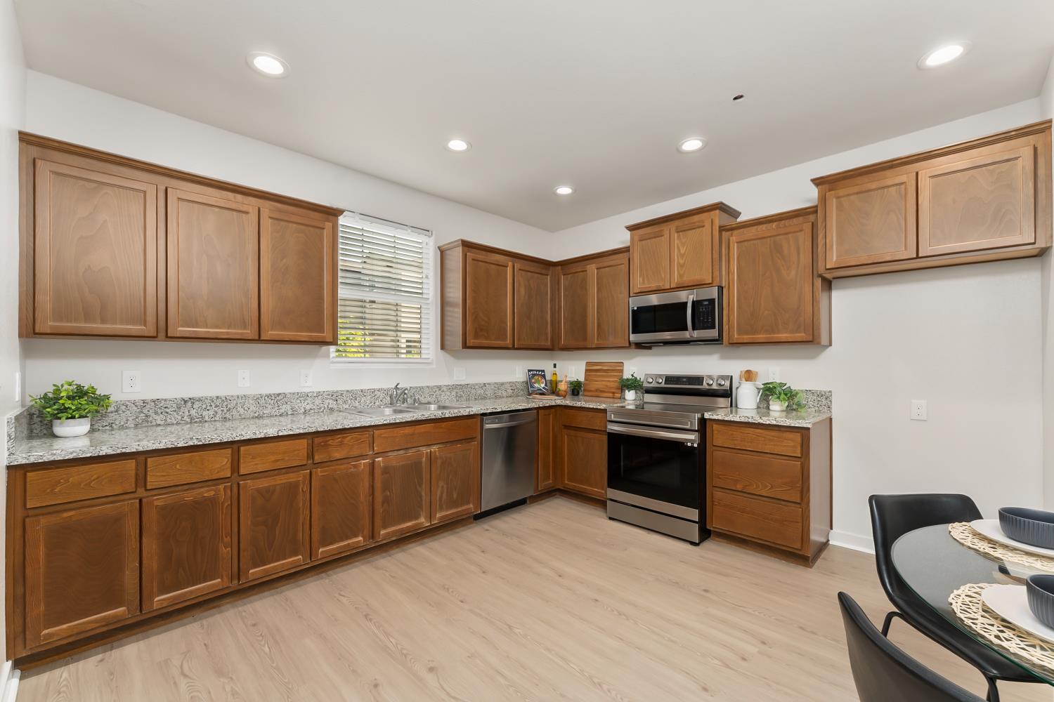 Newer, energy efficient home in private Winding Meadow Village. Features include: granite counter tops, LVP flooring, premium carpet, energy-efficient heat pump water heater, prewired electric car charging, ERV, window blinds. Conveniently located to local shops, within the EGUSD, and close to all Sacramento has to offer. Fully landscaped, low maintenance front and back yards.