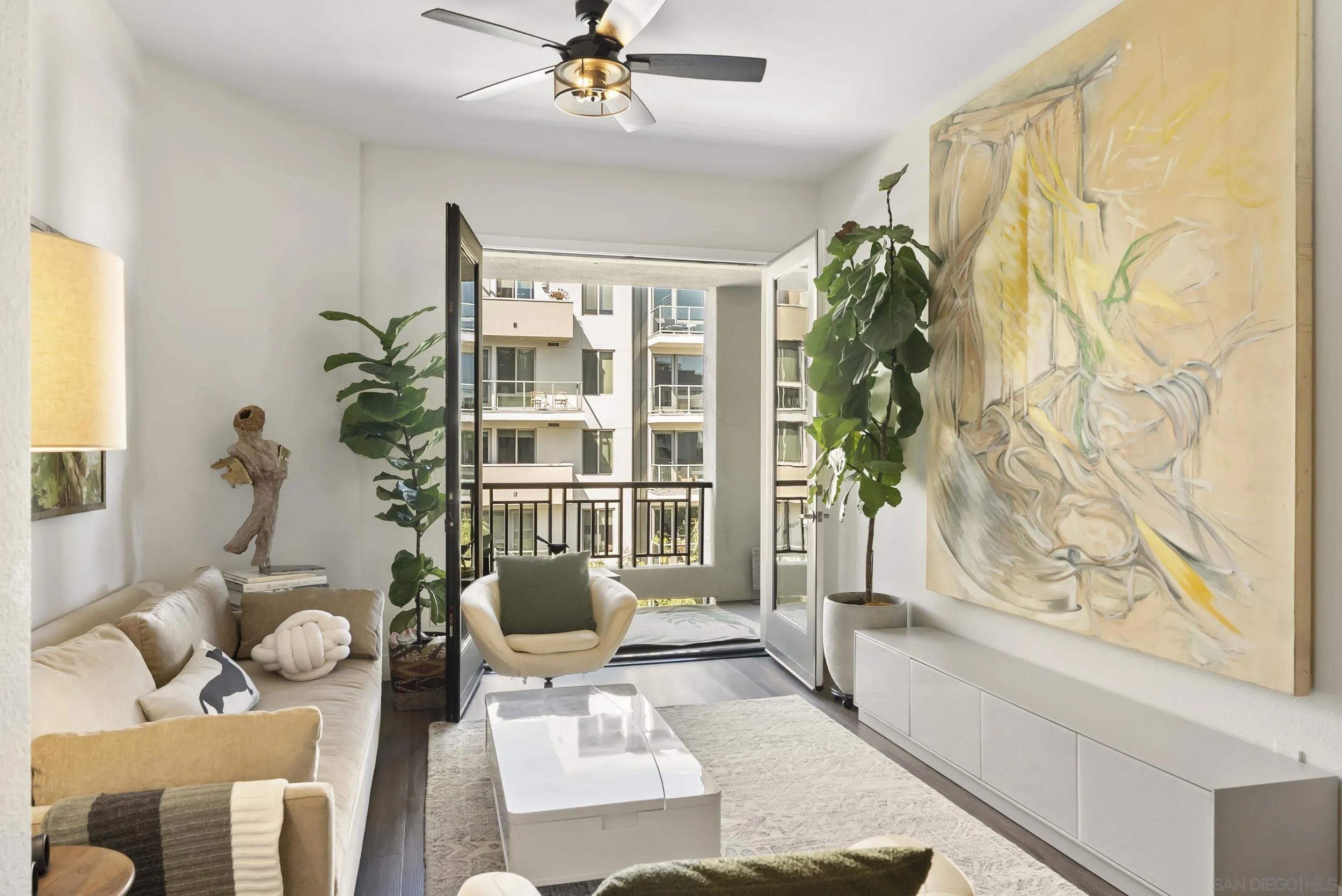 Elegant, elevated, & effortlessly refined - welcome to your modern sanctuary in the heart of Bankers Hill. Ideally situated within Epic on 5th, just a half block from Balboa Park, this exceptional home offers the perfect balance of serene retreat & vibrant urban living. Bathed in natural light, the expansive open-concept floor plan creates an inviting & sophisticated ambiance from the moment you enter. French doors seamlessly extend the living space onto a generous private balcony, capturing the charm & energy of the neighborhood while offering a peaceful & seamless indoor-outdoor experience. Designed w/ both comfort & privacy in mind, the dual primary suites are thoughtfully positioned on opposite sides of the home, each featuring ensuite bathrooms & spacious walk-in closets. The sleek, modern kitchen is a true showpiece, appointed with newer Samsung stainless steel appliances including a smart refrigerator, & a stunning quartz peninsula with bar seating - perfect for casual dining or hosting while enjoying refreshing breezes & glimpses of the park through the open front door. Enjoy the convenience of two assigned garage parking spaces & a private storage closet. Residents of Epic also enjoy access to beautifully curated outdoor spaces, including inviting fire pits & a picturesque courtyard designed for relaxing evenings & impressive entertaining. Just steps from James Coffee Co., Communal Coffee, Mister A's, as well as iconic destinations like Balboa Park, Marston House, & Spruce St. Suspension Bridge, w/ close proximity to Little Italy, downtown, airport, the zoo, & more!
