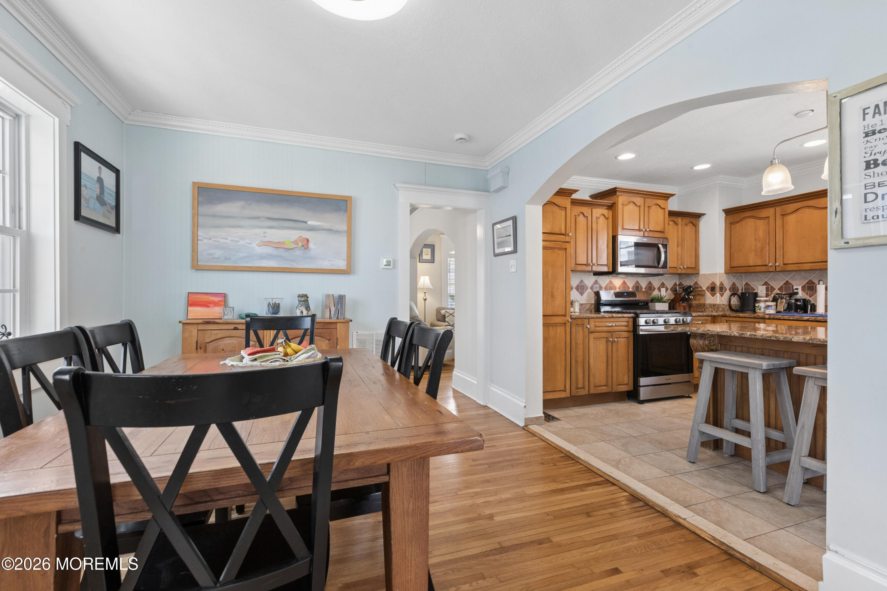A beautifully renovated 3-bedroom, 1.5 bathroom Cape Cod style home built in 1920 on an oversized level 50x185 lot. Spacious eat in kitchen, wood cabinetry, a center island and granite. Features a brand new GAF HDZ roof w transferable warranty, tankless hot water heater and new windows. All refinished wood flooring and freshly painted throughout the interior. Charming front porch, large rear deck and fully fenced in yard. LOCATION minutes from beaches, Monmouth Park, NetFlix,Train station, Ferry, town boat & jet ski launch, along with Long Branch community pool. Charm galore, fun in Long Branch, Oceanport, Sea Bright. Get electric bikes and visit all. Plenty of room in garage for possible office, gym endless opportunities, Priced to sell. A perfect Shore retreat.