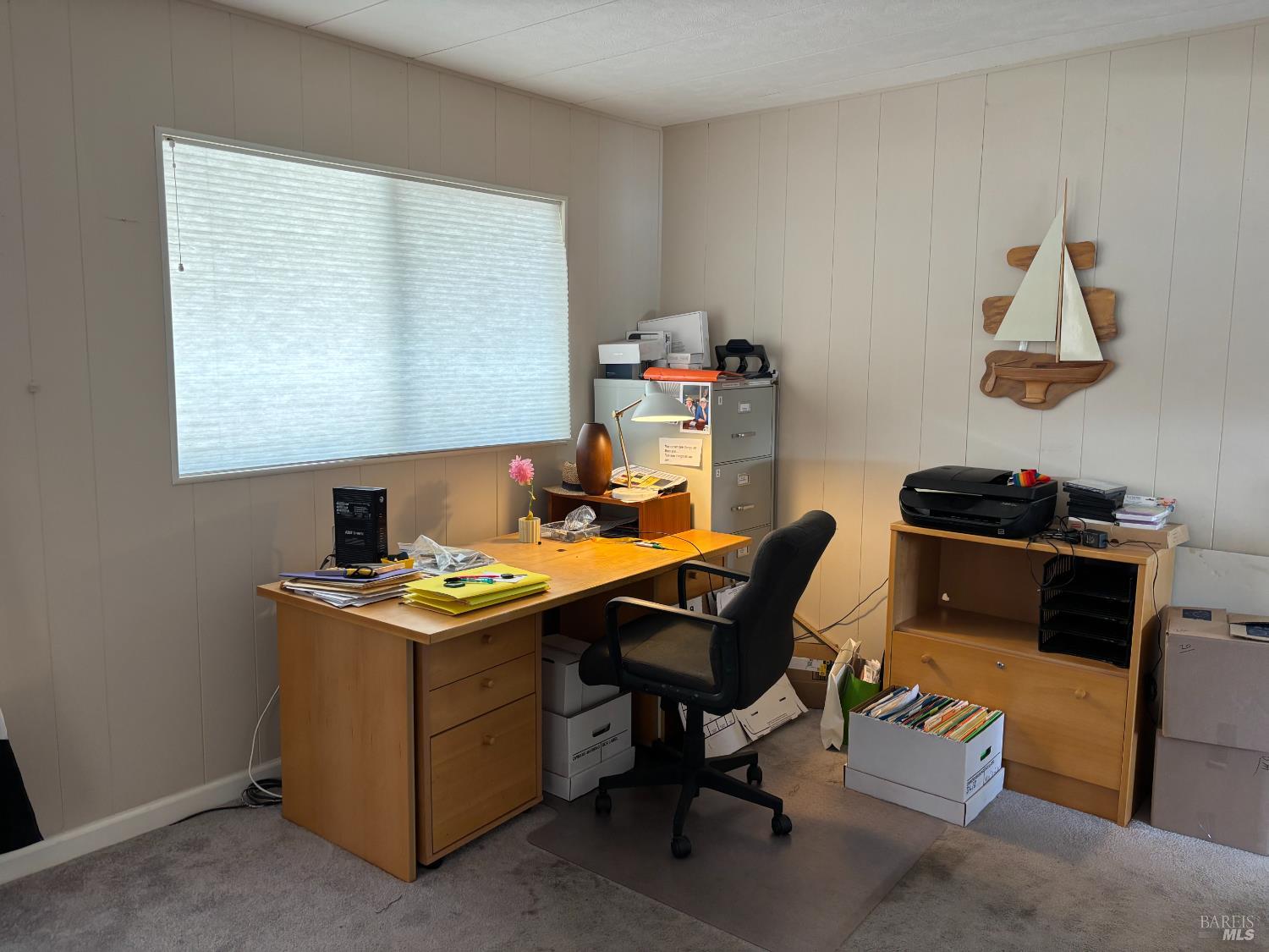 Large, airy home in senior park with good sized bedrooms and office area. Kitchen has had lower cabinets removed....double oven and fridge are in kitchen but no kitchen sink or stove or lower cabinets....a blank canvas to finish kitchen just the way you want! Partial enclosed porch adds to storage space....Fema Flood Zone but no flood ins required due to elevation of unit. Space rent goes up annually with cost of living subject to Novato Rent Control. No Property Taxes!!!