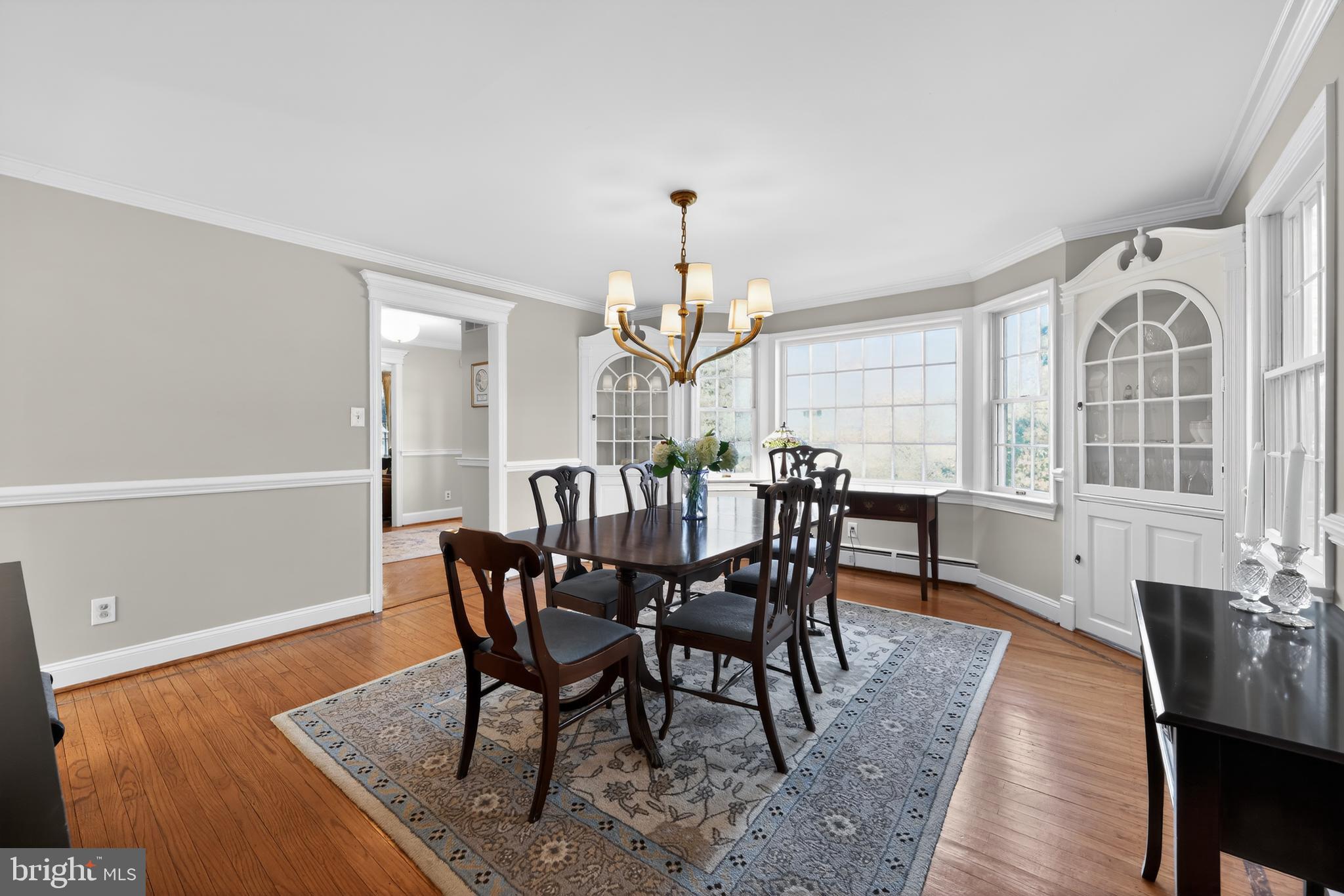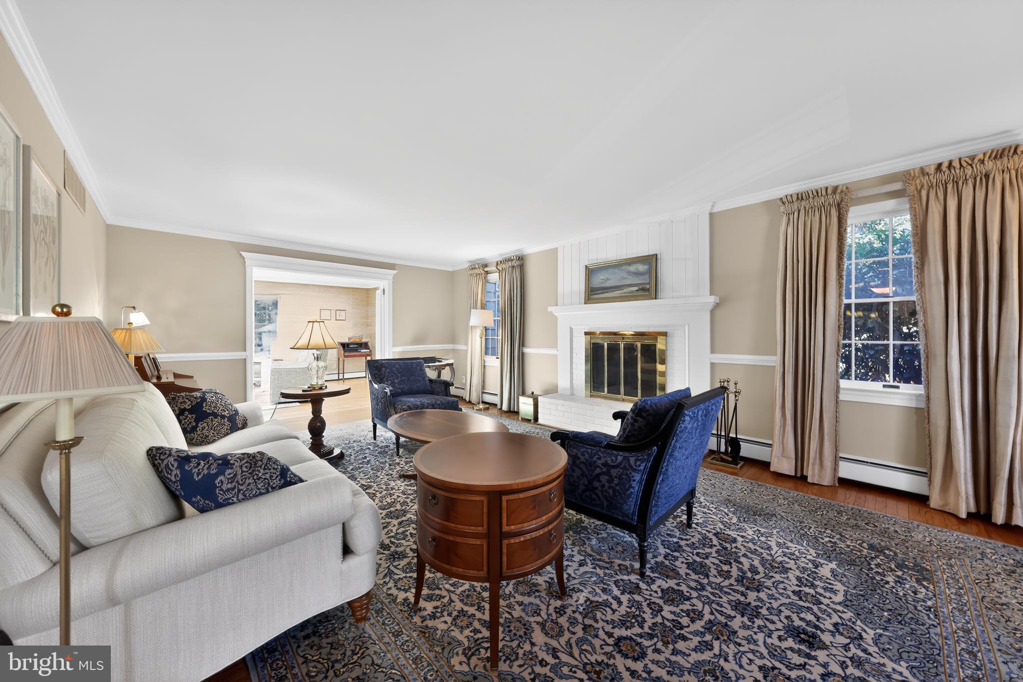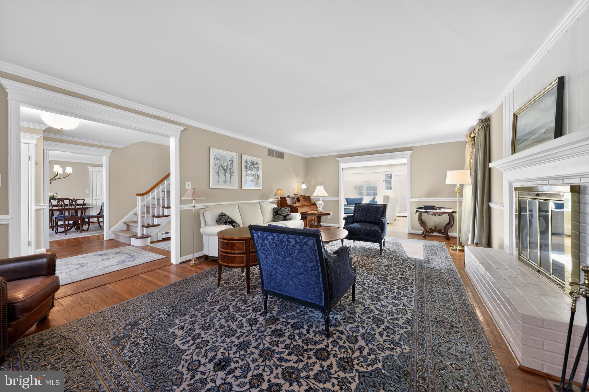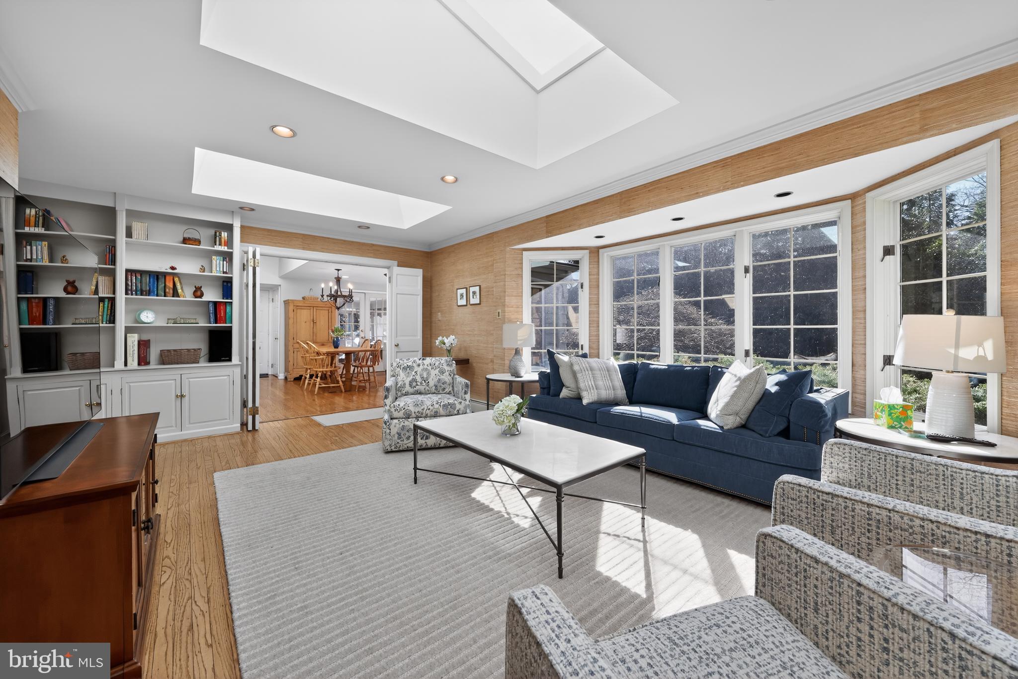 Fantastic inside and out. This lovely home offers large rooms, extensive woodwork and wonderful location, including mature trees. Wonderful center hall colonial with large foyer, hardwood floors and many built-ins throughout. Living room offers a bay window, fireplace, open to the family room and sitting area. Dining room off the foyer has built-in corner cabinet and china closet. Straight off the foyer is the Family Room offering built-in bookcase with cabinets, skylights (newer) large picture window overlooking the lovely backyard, separate sitting area for reading or games with storage in display niches. The Family room leads into the separate office/den area. Office/Den has a fireplace, built-in bookcases with cabinets, cathedral ceiling, and door to the exterior. All of these rooms have custom moldings and woodwork throughout. French doors lead to a patio with gorgeous views of the back yard. Large Gourmet Kitchen includes built-in refrigerator, double oven, five-burner stove, and farm style sink in the extensive island with cabinets on three sides. Carved wood countertop on the island is a great gathering space. An abundance of cabinets and counter space for any entertainment needs. The skylight windows above the kitchen dining area bring in terrific natural light. Additional sitting area in the kitchen to enjoy morning coffee or evening beverage. Top off this first floor by enjoying the screened in porch that leads to the side and backyard. Moving upstairs from the foyer to the second floor there is a large landing and natural light from a wall of windows. Primary bedroom has a sitting room, two large walk-in closets with organizers. Large Primary bathroom with a soaking tub, separate large shower, expansive vanity with double sink and separate lavatory room. Along with the additional three bedroom on this floor, which includes an En-Suite, additional hallway, redone bathroom and full laundry closet. All the bedrooms are bright and large closets. To finish off the inside of the house is a partially finished basement and two storage rooms. Multiple zones for HVAC, newer skylights with newer roof in same area, spectacular redone kitchen and hallway full bathroom. Outside it is private and lovely with Trellis surrounding the screened in patio and back of house. Beautiful landscaping with raised beds, stonework and matured trees for privacy. Two car garage and parking space for additional cars. Moorestown location offers easy access to major roads, bridges, terrific schools, town center with shops and restaurants and the charm and sophistications of everyday living.