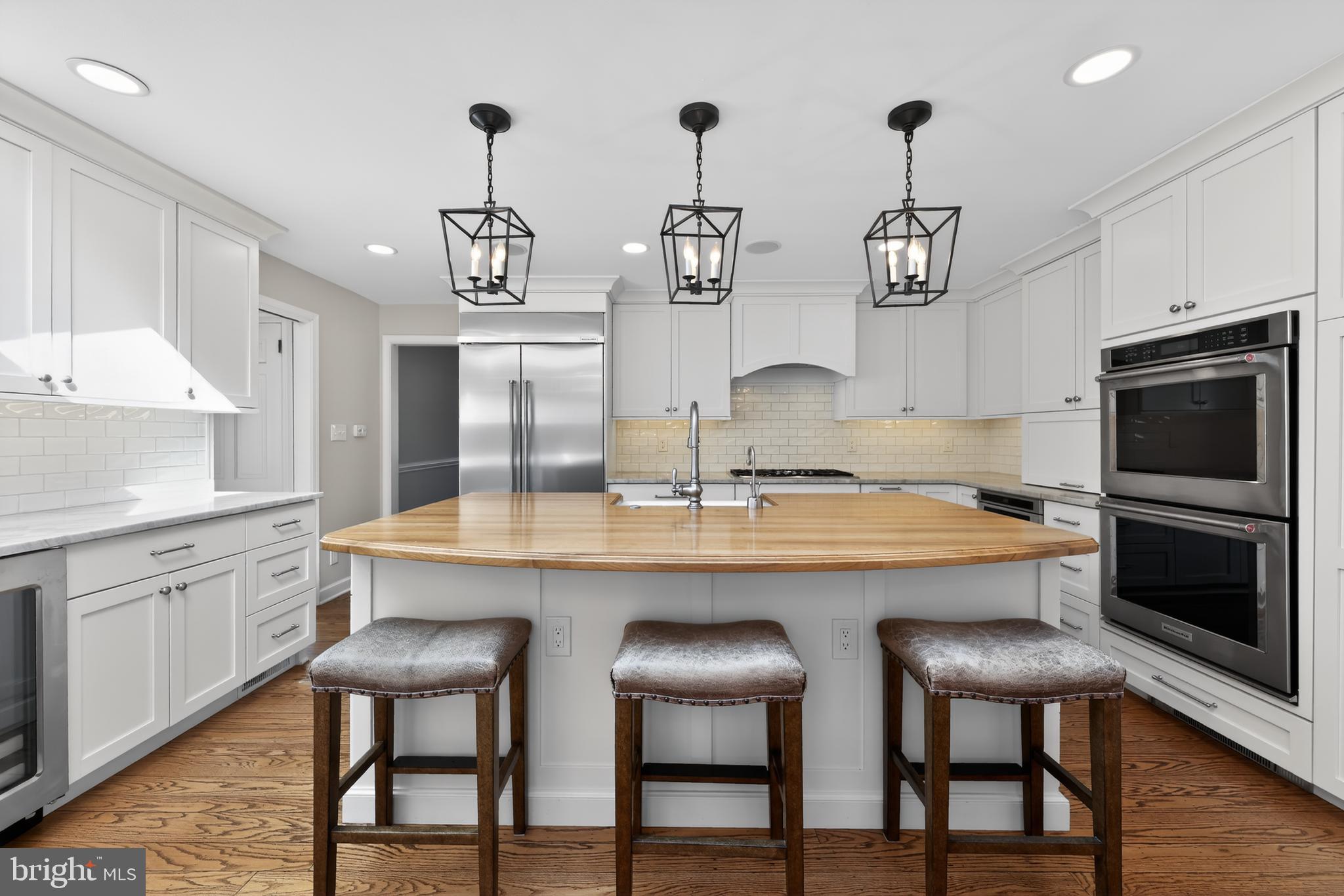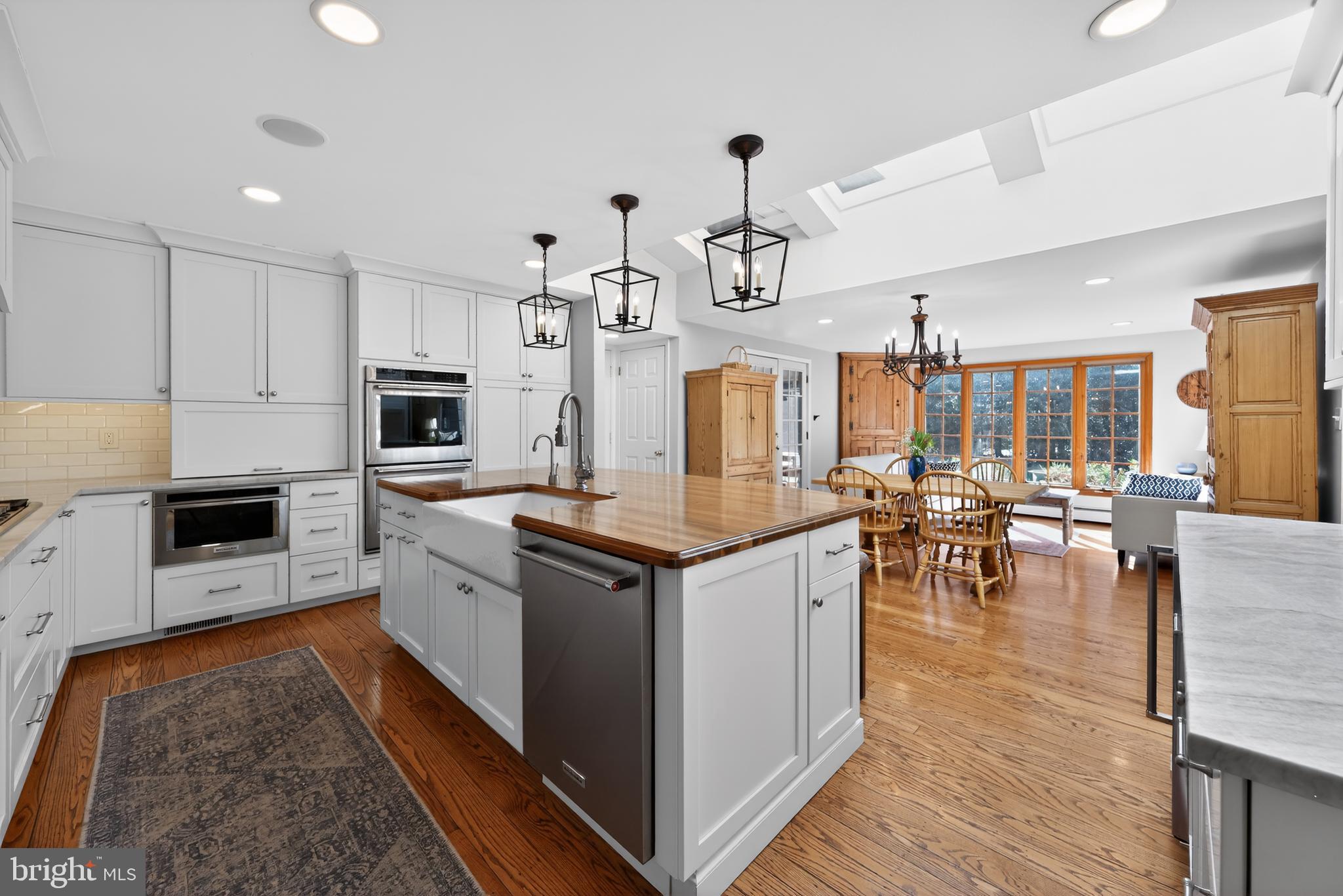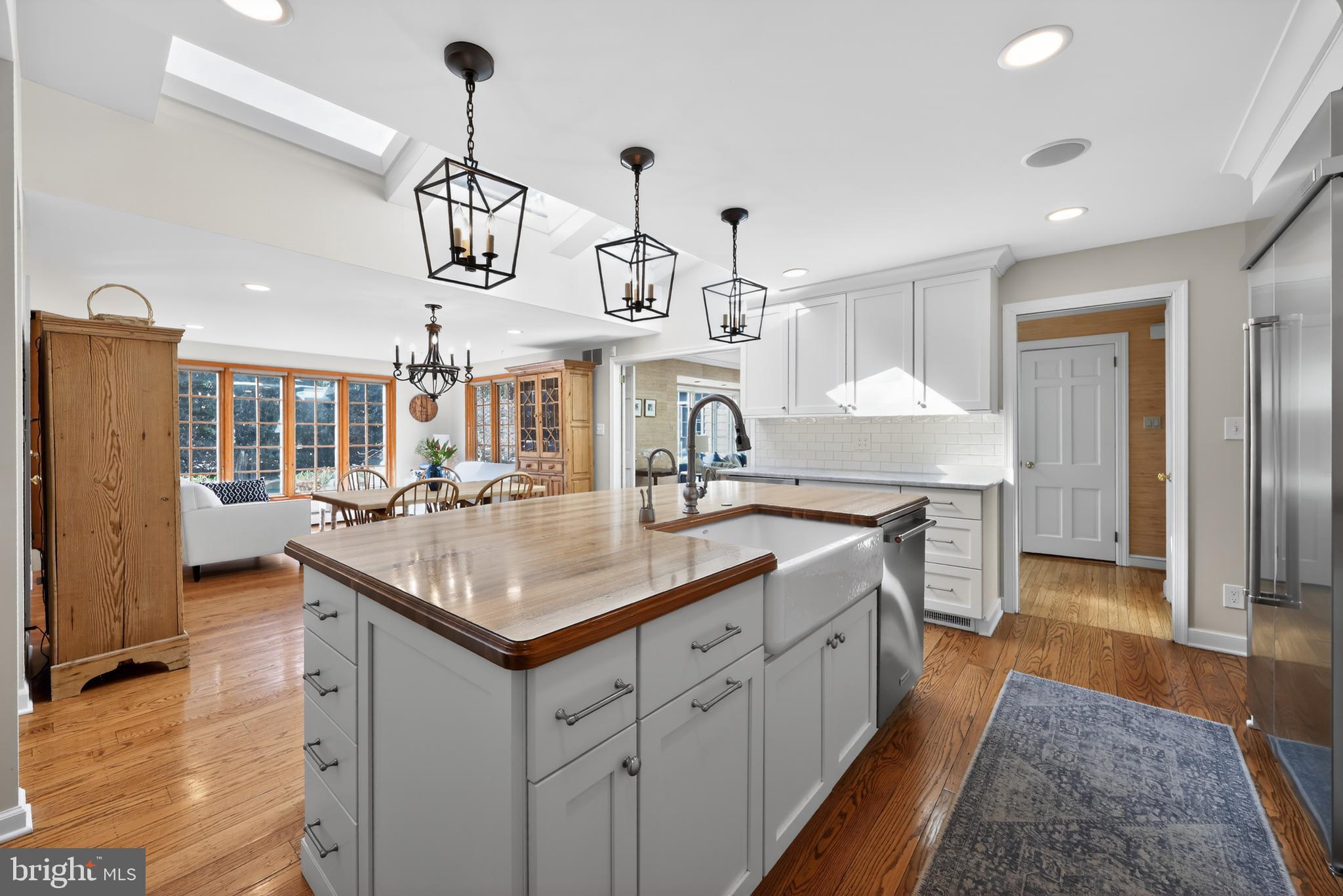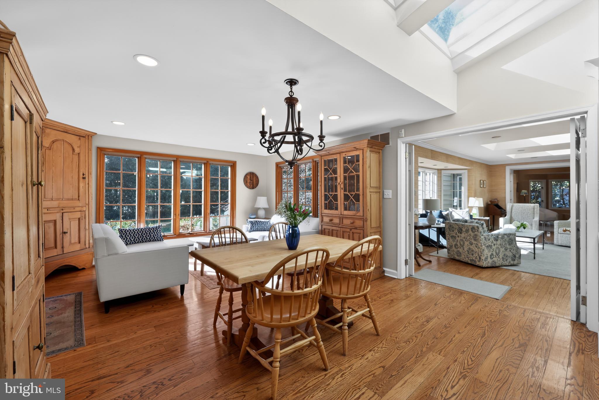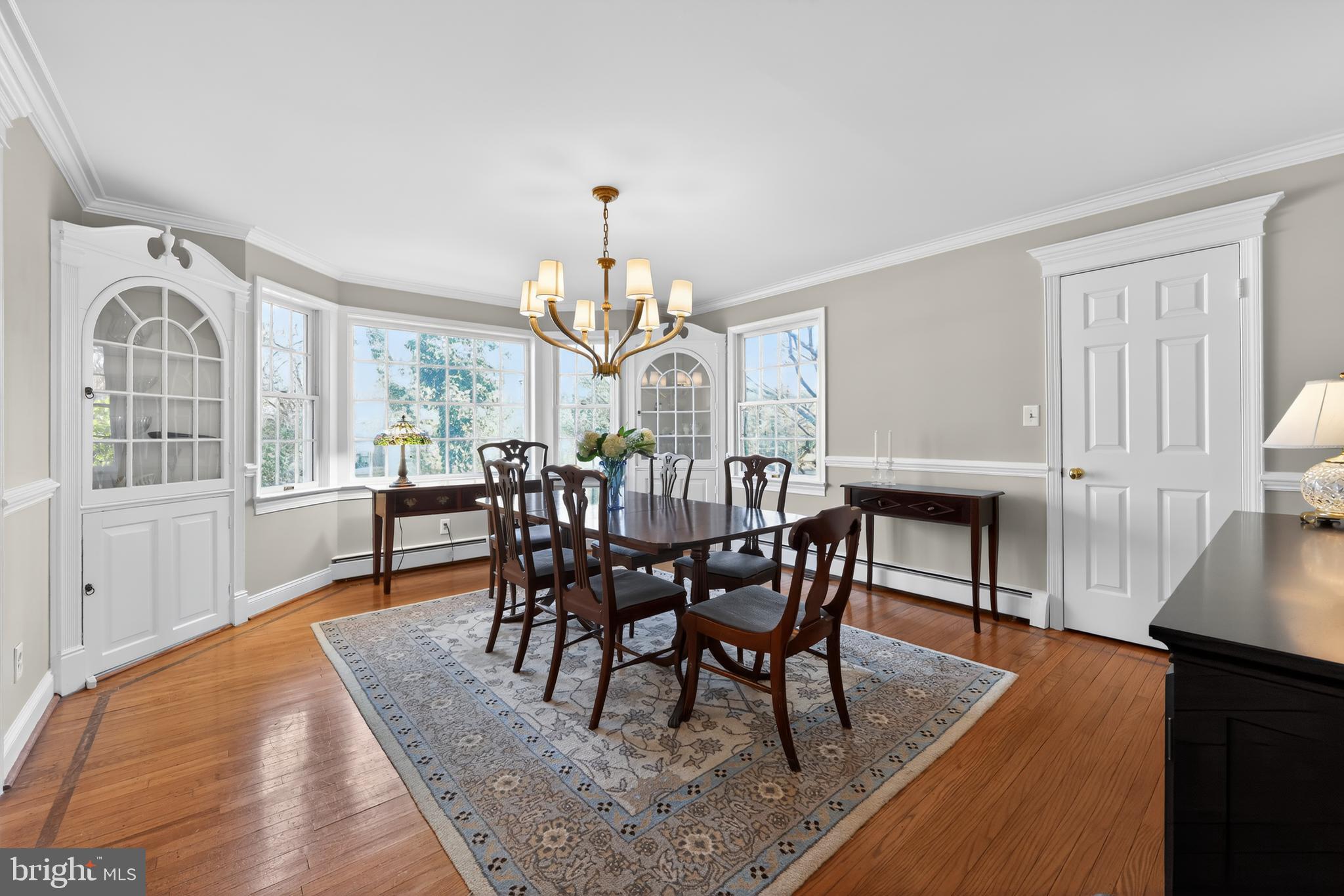 Fantastic inside and out. This lovely home offers large rooms, extensive woodwork and wonderful location, including mature trees. Wonderful center hall colonial with large foyer, hardwood floors and many built-ins throughout. Living room offers a bay window, fireplace, open to the family room and sitting area. Dining room off the foyer has built-in corner cabinet and china closet. Straight off the foyer is the Family Room offering built-in bookcase with cabinets, skylights (newer) large picture window overlooking the lovely backyard, separate sitting area for reading or games with storage in display niches. The Family room leads into the separate office/den area. Office/Den has a fireplace, built-in bookcases with cabinets, cathedral ceiling, and door to the exterior. All of these rooms have custom moldings and woodwork throughout. French doors lead to a patio with gorgeous views of the back yard. Large Gourmet Kitchen includes built-in refrigerator, double oven, five-burner stove, and farm style sink in the extensive island with cabinets on three sides. Carved wood countertop on the island is a great gathering space. An abundance of cabinets and counter space for any entertainment needs. The skylight windows above the kitchen dining area bring in terrific natural light. Additional sitting area in the kitchen to enjoy morning coffee or evening beverage. Top off this first floor by enjoying the screened in porch that leads to the side and backyard. Moving upstairs from the foyer to the second floor there is a large landing and natural light from a wall of windows. Primary bedroom has a sitting room, two large walk-in closets with organizers. Large Primary bathroom with a soaking tub, separate large shower, expansive vanity with double sink and separate lavatory room. Along with the additional three bedroom on this floor, which includes an En-Suite, additional hallway, redone bathroom and full laundry closet. All the bedrooms are bright and large closets. To finish off the inside of the house is a partially finished basement and two storage rooms. Multiple zones for HVAC, newer skylights with newer roof in same area, spectacular redone kitchen and hallway full bathroom. Outside it is private and lovely with Trellis surrounding the screened in patio and back of house. Beautiful landscaping with raised beds, stonework and matured trees for privacy. Two car garage and parking space for additional cars. Moorestown location offers easy access to major roads, bridges, terrific schools, town center with shops and restaurants and the charm and sophistications of everyday living.