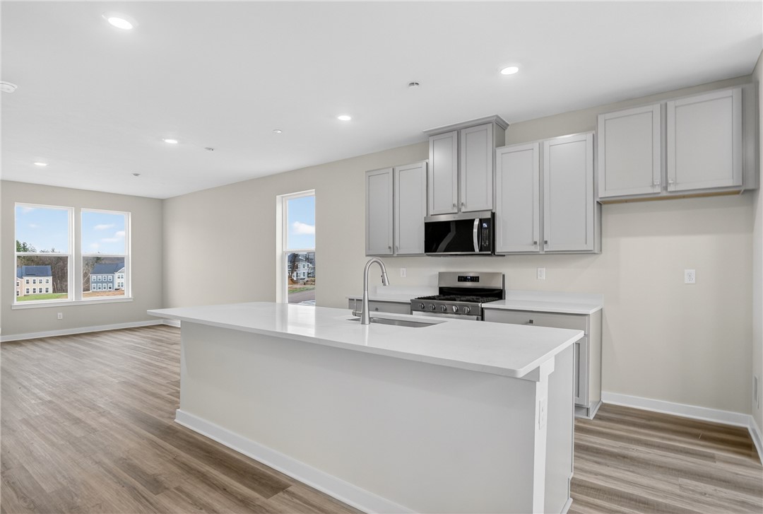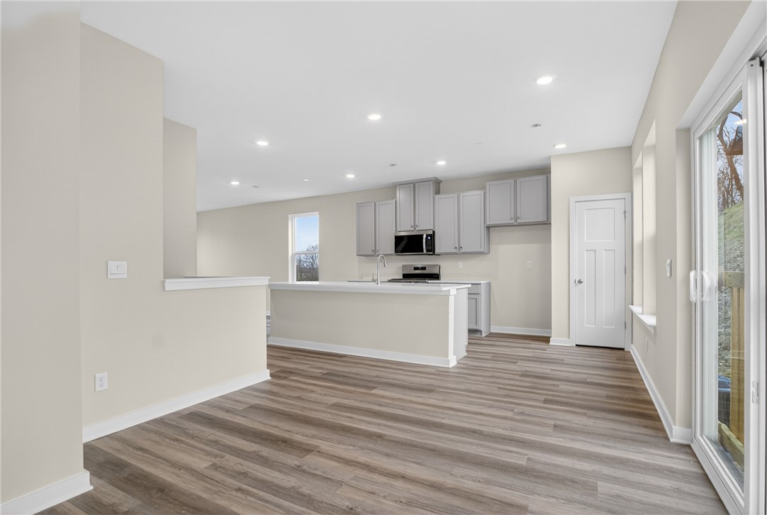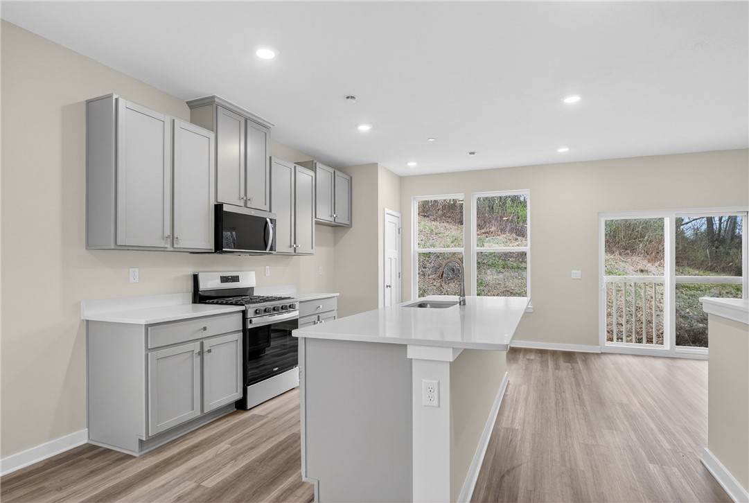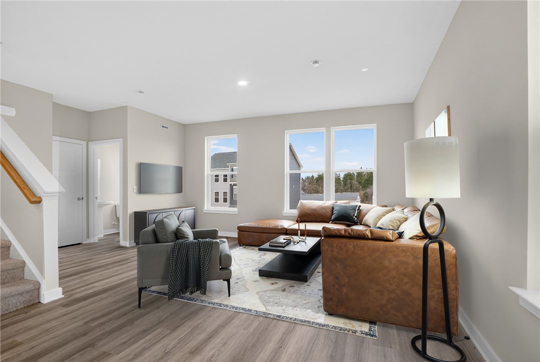 Welcome to this brand-new, never-lived-in home in desirable Collier Township, ideally located just off the Parkway West with quick access to major highways 376, 79, and 22 - making commuting to downtown Pittsburgh, Pittsburgh International Airport, and beyond a breeze. You'll also love being just minutes from shopping, dining, and entertainment in the Robinson Town Centre area, as well as outdoor recreation at Settlers Cabin Park. Inside, the home showcases a bright, open floor plan with soaring ceilings and neutral d cor throughout. The stunning kitchen is the heart of the home, featuring white cabinetry, quartz countertops, stainless steel appliances, durable LVP flooring, and a large center island - perfect for entertaining or everyday living. The spacious layout includes three generously sized bedrooms, 2.5 baths, and ample storage. The finished lower level offers incredible versatility, ideal for a home office, playroom, or additional living space to suit your needs. Enjoy truly low-maintenance living with an HOA that covers lawn care and provides access to exceptional community amenities, including a pool, clubhouse, fitness center, and more. Move right in and experience the perfect blend of style, convenience, and carefree living in a prime location!