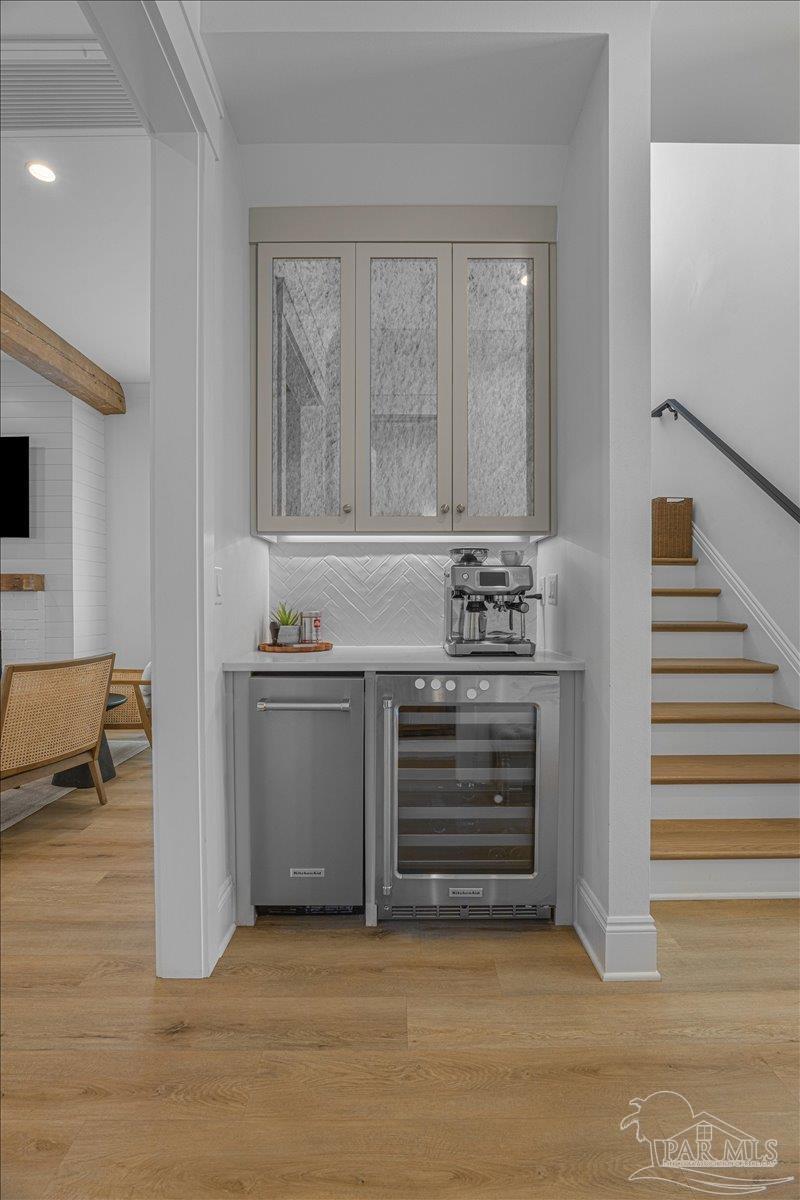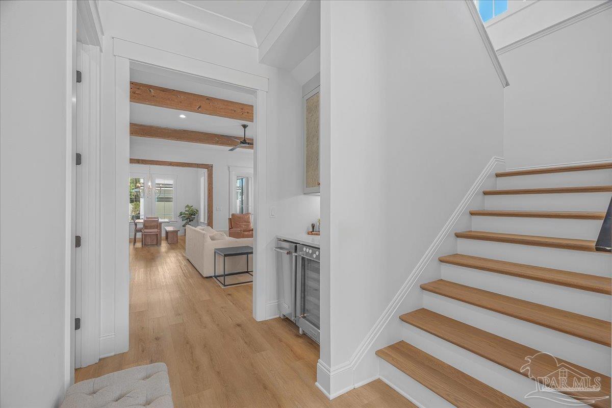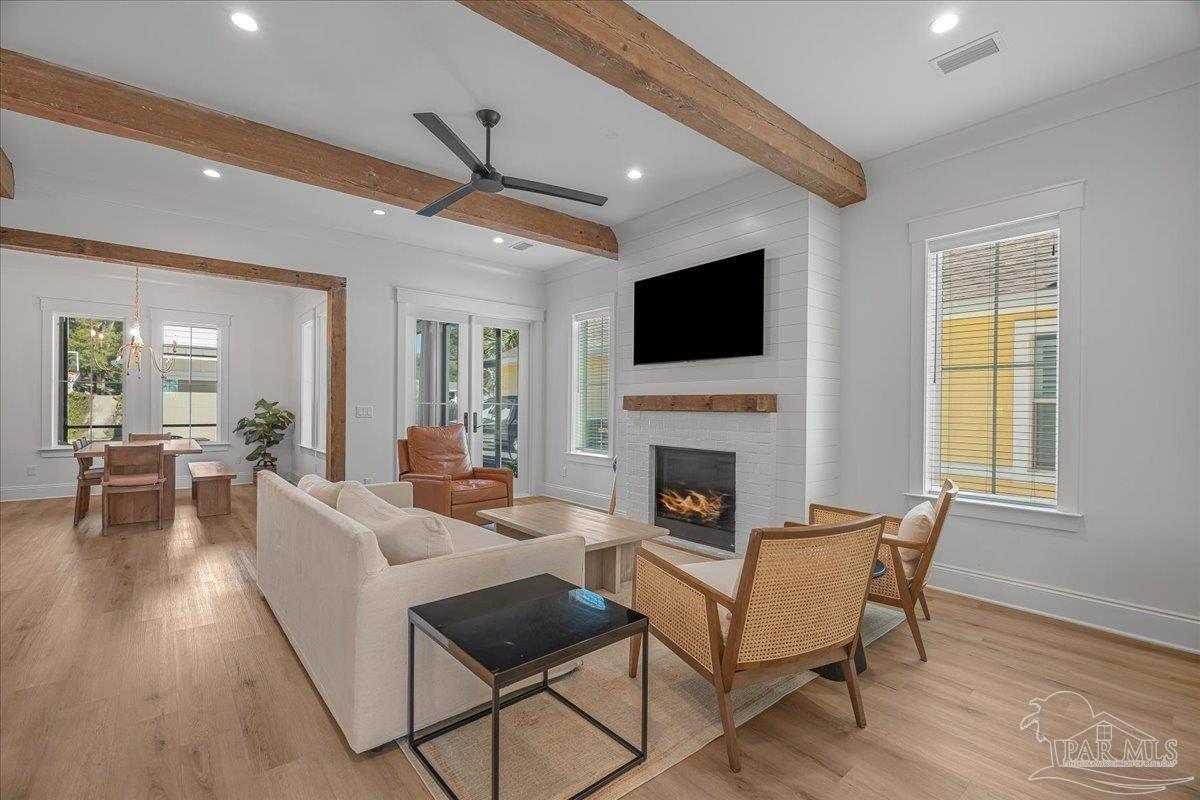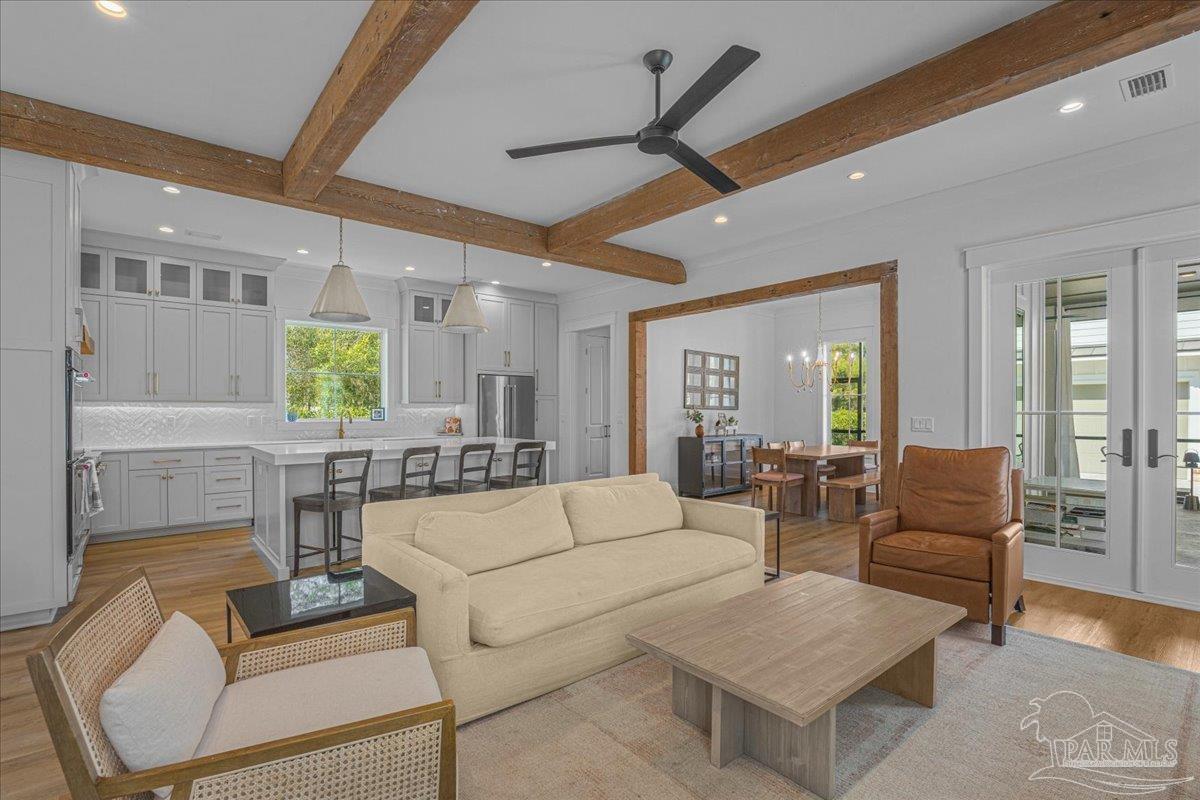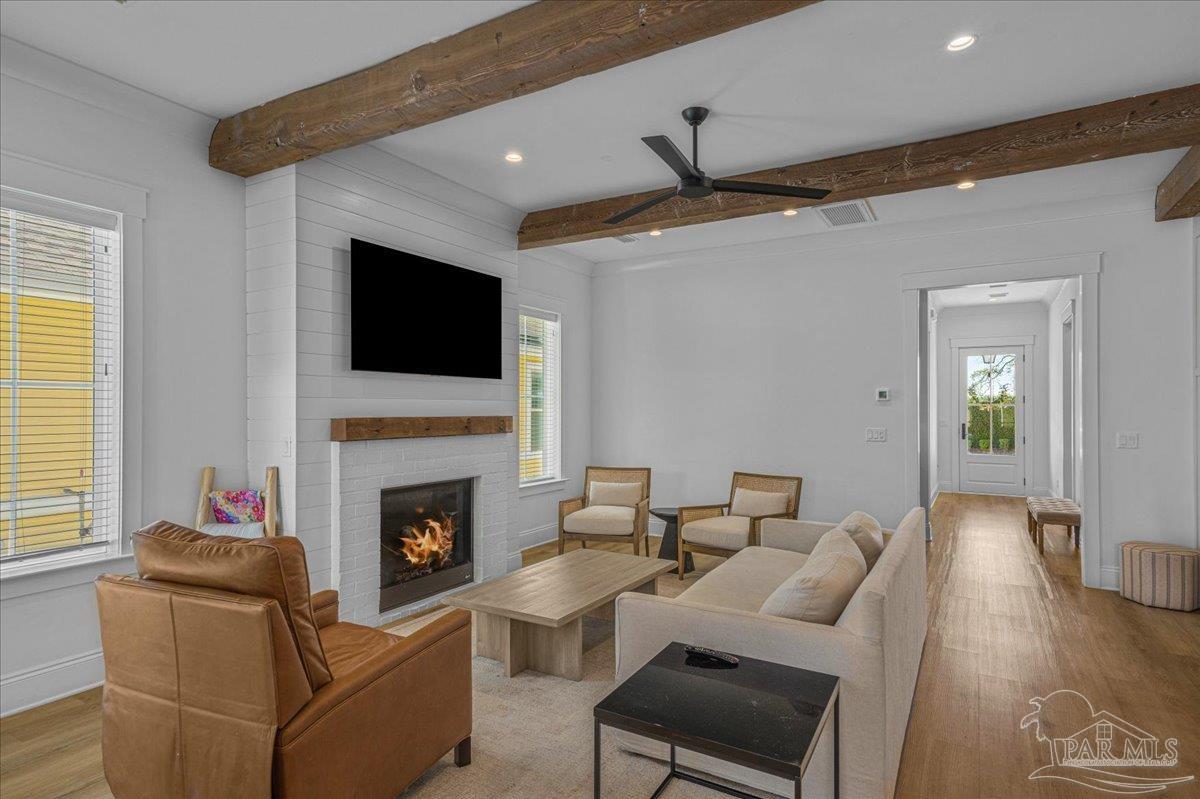 Nestled within a private gated community ideally located between Downtown Pensacola and East Hill, this exceptional residence offers both convenience and a true sense of neighborhood charm. Built in 2020 by a highly respected local builder, this home showcases quality craftsmanship, thoughtful design, and timeless style throughout. Offering 5 bedrooms, 5.5 bathrooms, a dedicated office, two kitchens, and a spacious covered back porch, the layout is designed to accommodate both everyday living and effortless entertaining. From the moment you step inside, the open and airy floor plan welcomes you with refined architectural details and abundant natural light that fills the home from every angle. The main kitchen serves as the heart of the home and features premium appliances, custom cabinetry, and a generous island ideal for cooking, gathering, and entertaining. Just off the kitchen, the semi-formal dining space provides the perfect setting for intimate dinners or larger celebrations. The primary suite offers a peaceful retreat with a spa-like bathroom that includes a freestanding soaking tub, dual vanities, and striking wire-brushed white oak cabinetry extending from floor to ceiling. A spacious closet ensures ample storage and functionality. Above the garage, a private carriage house provides additional flexibility with its own full kitchen, bedroom, living area, and bathroom - ideal for guests, extended family, or a private retreat. This remarkable home offers the perfect balance of luxury, comfort, and location. Schedule your private showing today to experience everything it has to offer.