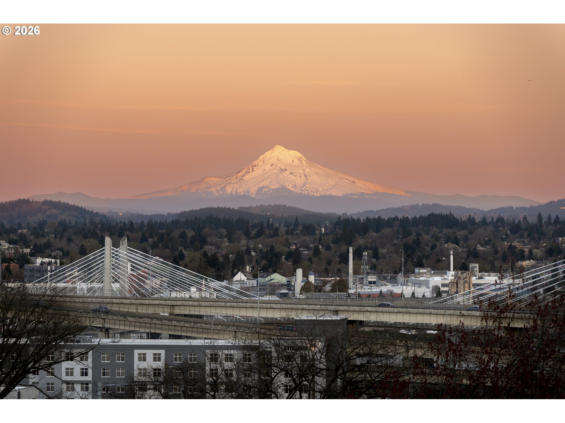 Remodeled, light-filled condo with Mt. Hood views. Open-concept layout features a floating island with wine cooler, seamlessly connecting the kitchen, dining, and living areas. Updated kitchen includes stainless steel appliances, built-in double oven and microwave, electric cooktop, quartz countertops, tile backsplash, and eating bar. Dining area offers built-in cabinetry, while the living room features an electric fireplace with mantel and floor-to-ceiling sliders opening to a large private balcony. Primary suite includes balcony access, plantation shutters, walk-in closet, and remodeled bath with walk-in shower. Second bedroom features a Murphy bed and access to an updated main bath.Recent upgrades include new interior paint, new mini split (heating & A/C) and electronic patio screen. Additional features include in-unit laundry, deeded parking, and private storage. Amenities: 24/7 concierge & security,landscaping, exterior maintenance, sewer, water, trash, cable, internet, insurance, and management. Indoor/outdoor pools, jacuzzi, saunas, fitness center, locker rooms, community rooms with kitchens & patios, meeting room, bike & wine storage, and guest parking. Pet friendly, on MAX and bus lines.