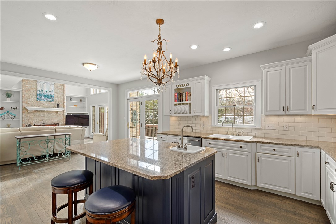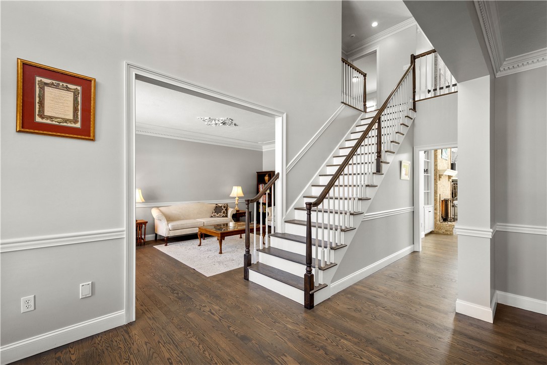 Discover unparalleled space and sophisticated style in this 5-bedroom masterpiece, perfectly situated on a private cul-de-sac with a rare level entry from the sidewalk and a three-car attached garage. The grand two-story foyer and sweeping staircase lead to a sun-drenched open floor plan with 9-foot ceilings and rich hardwoods. Working from home is a dream in the massive first-floor den featuring custom built-ins. The gourmet kitchen, complete with a butler's pantry and abundant cabinetry, flows into a dramatic two-story family room anchored by a floor-to-ceiling fireplace. Step onto the deck for relaxation or to dine al fresco. The second level boasts an expansive primary suite with trayed ceiling and a spa-like bath plus an enormous walk-in closet, three additional bedrooms with spacious closets, and a convenient second-floor laundry. The third floor offers a private retreat with a full bath - ideal for a teen suite, gym, or hobby room. The walk-out lower level serves as a full second residence, featuring a second kitchen, a gameroom with a gas fireplace, 5th bedroom, full bath, and a second laundry room. Step out to the private patio and hot tub, and enjoy overlooking the yard. Minutes to I-79, schools, shopping, restaurants and the amazing rec center, this home truly has a space for everyone!