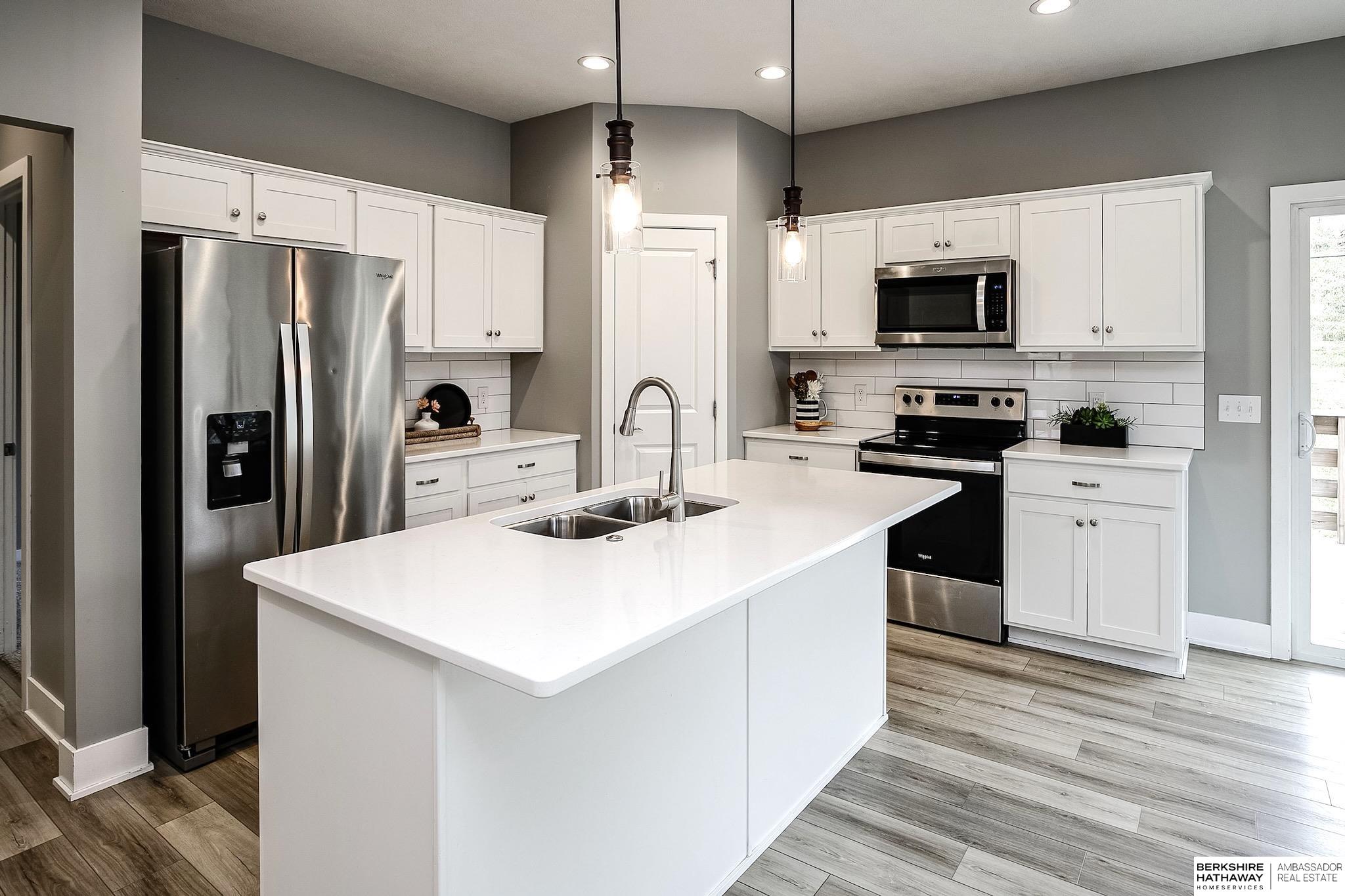 Your opportunity awaits at this adorable townhome in the heart of Bennington! Situated on a serene street in the new Prairie Hollow development, this NEARLY new, 3-bed, 3-bath, split entry home in the heart of Bennington awaits its new owner. Step inside the two-story entry and enjoy cathedral vaulted ceilings, LVP flooring on the main & an electric fireplace. The open floorplan creates plenty of entertaining space in the gorgeous custom kitchen, complete with center island, white cabinets, quartz countertops, pantry & stainless steel appliances. Plus, an informal dining space with a sliding door to your deck and fenced backyard! Enjoy laundry room, primary w/ en suite, and 2nd bed/bath all on the main. The lower level incudes additional rec room space, 3rd bedroom, 3/4 bath, and spacious 2-car garage! HOA includes snow, lawn, trash & common areas. Walk to local restaurants, schools, retail, parks &