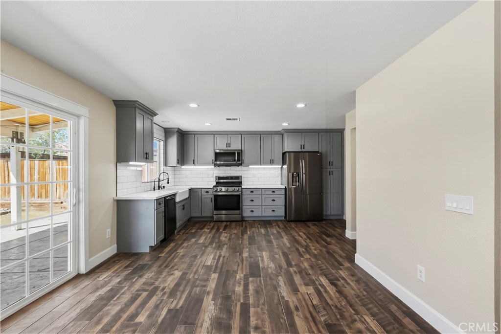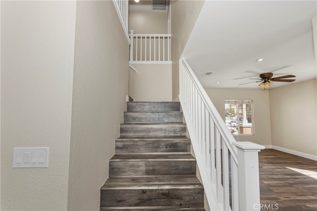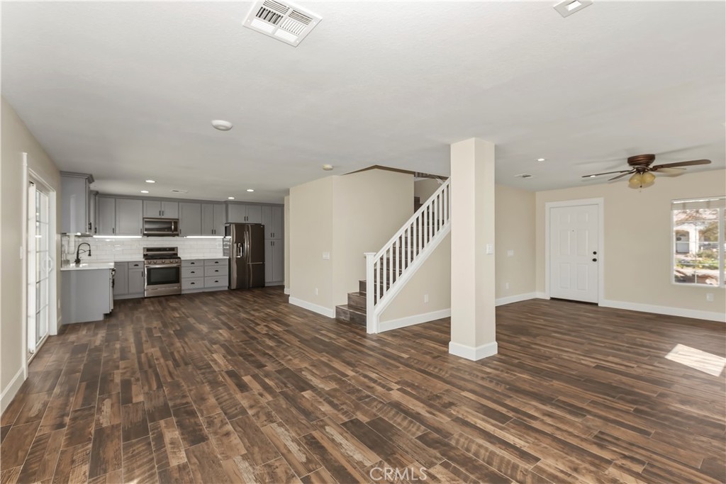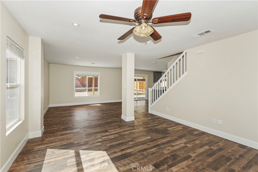 Welcome to this spacious and well-designed home in Hesperia, offering a functional open-concept layout and commuter-friendly location. The main living area seamlessly connects the kitchen, dining, family room, and direct access to the backyard through sliding glass doors- perfect for everyday living and entertaining. The kitchen features modern finishes, stainless steel appliances, ample counter space, and 2 pantries. Upstairs, you'll find a convenient laundry room and generously sized bedrooms, including a bright and expansive primary suite complete with a walk-in closet and well-appointed bathroom. Step outside to a covered patio with ceiling fans, ideal for relaxing or hosting year-round. The backyard offers a blank canvas with plenty of space to design your dream outdoor setup, whether that includes a pool, play space, or garden. Additional highlights include no HOA, low taxes, and a prime location just minutes from the freeway, making it ideal for commuters. Conveniently located near local schools, shopping centers, and parks. A great opportunity to own a move-in ready home with room to personalize.