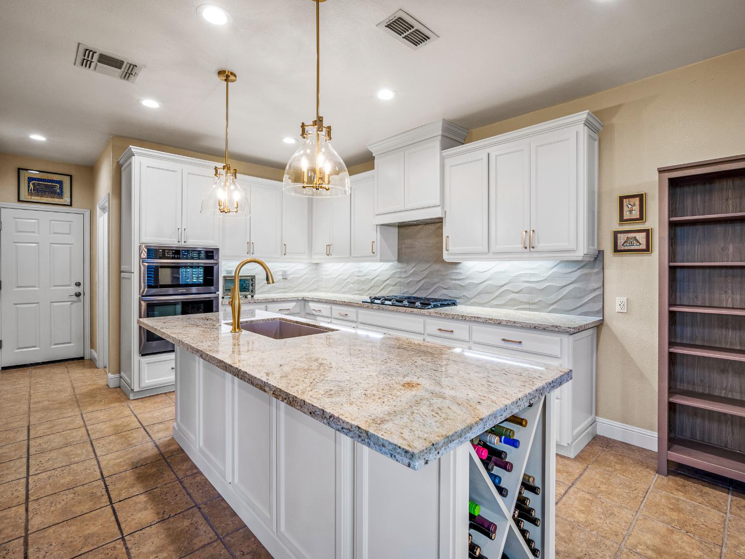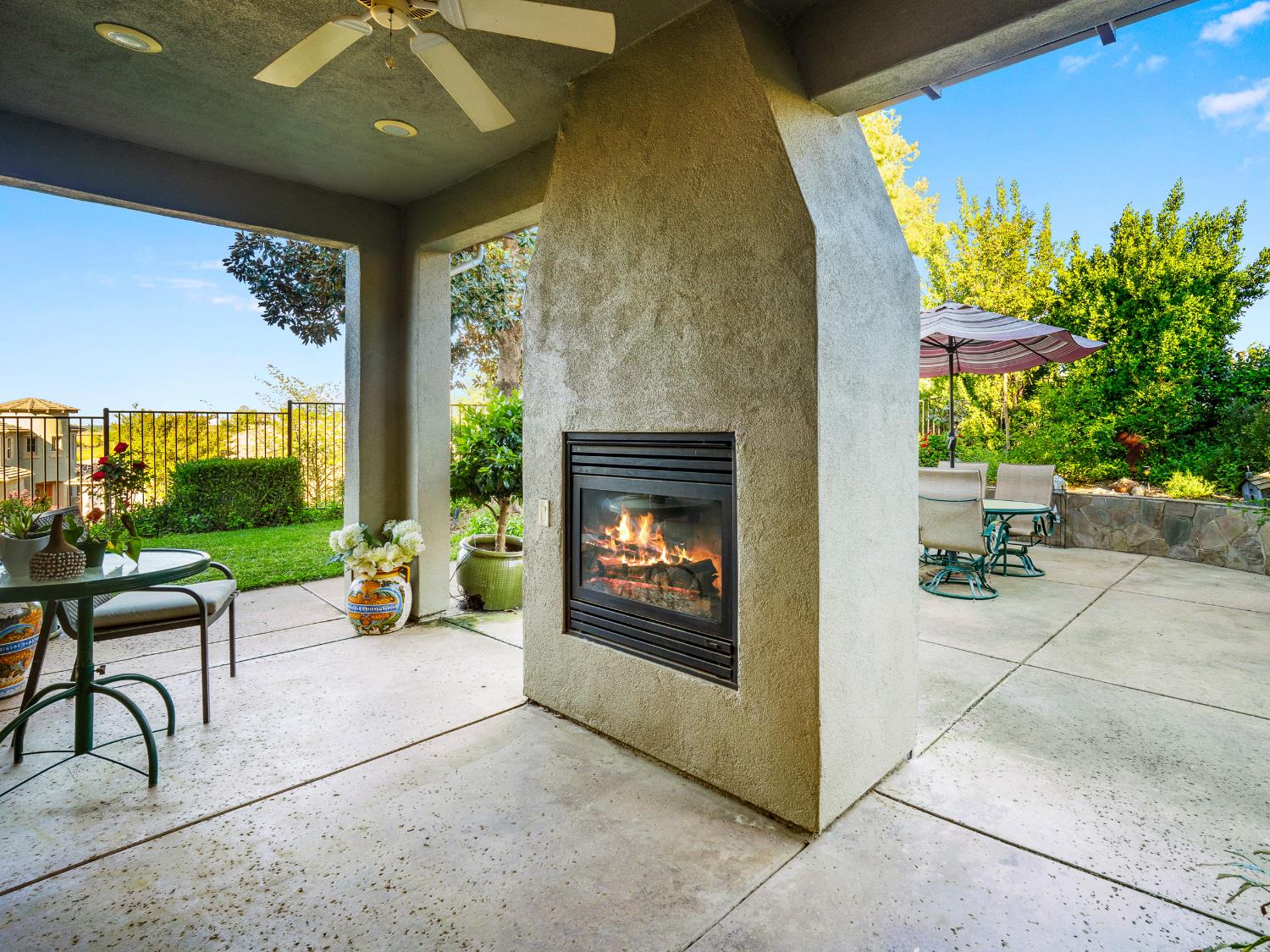 Elegant Modern luxury home perfectly situated behind the guarded gates and within walking distance to prestigious Serrano Golf and Country Club. Recently renovated with high end designer treatments including gourmet kitchen with restaurant grade appliance package, furniture grade cabinets, and granite slab countertops with designer tile backsplash. Additionally, tile flooring throughout, custom designer lighting, and an oversized gas fireplace are just a few of this home's stunning amenities. Spacious and luxurious living and perfect floor plan with a bright and airy 2 story great room and office or 3rd bedroom. Circular staircase with leads to a spacious recreation room and primary suite with luxurious bath with private balcony overlooking the spacious backyard and views of the Sacramento Valley. Step into your serene and spacious private resort style backyard complete with mature landscaping, grassy areas and abundant concrete patios completing this perfect private estate.