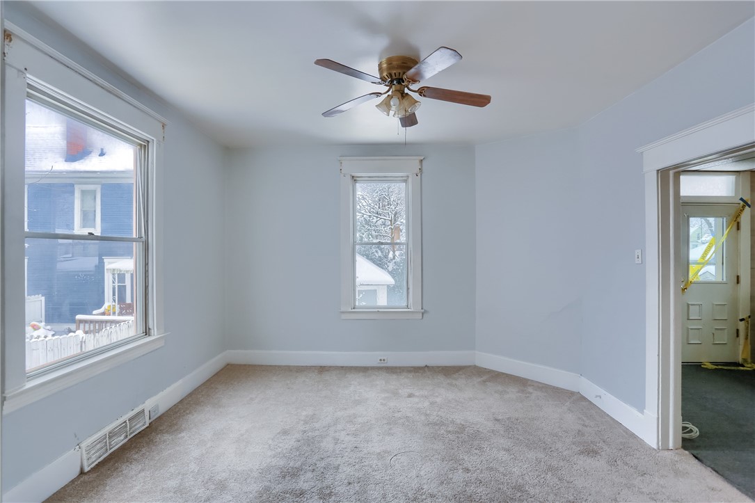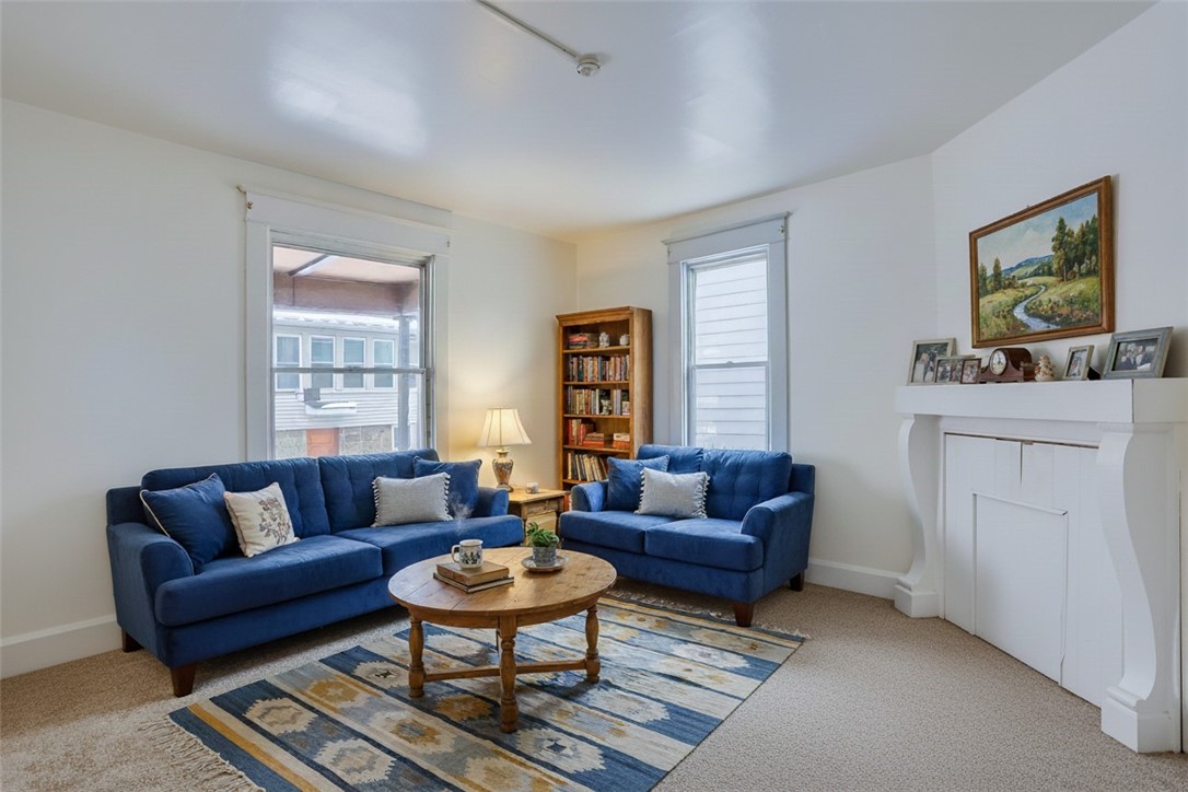 Welcome to this charming home filled with character, pocket doors, and timeless Craftsman woodwork. Step into a spacious hardwood entry that leads to a bright family room with a decorative fireplace, separated by original pocket doors. Another set opens to the sunny dining room, perfect for everyday meals or hosting. The kitchen features ample white cabinetry, great storage, and exterior access for easy outdoor living. Upstairs offers a comfortable primary bedroom, additional guest bedrooms, and a full bath with a tub-shower combo, plus finished bonus space for flexible use. The lower level includes laundry and potential for another bathroom. Outside, enjoy a generous home site and large storage area ideal for tools or seasonal items. This classic home is ready for a new owner to make it their own.
