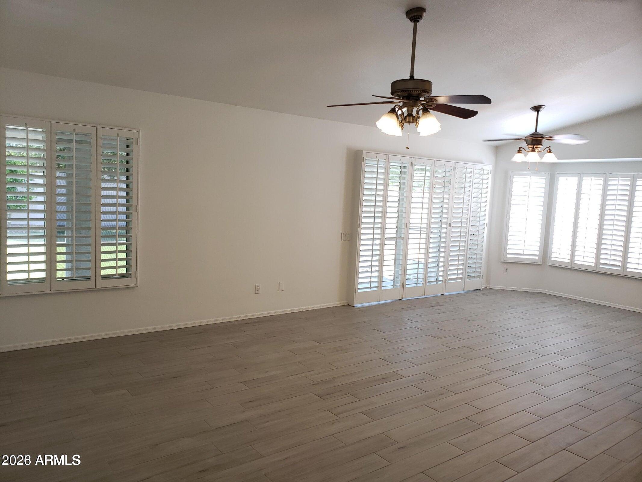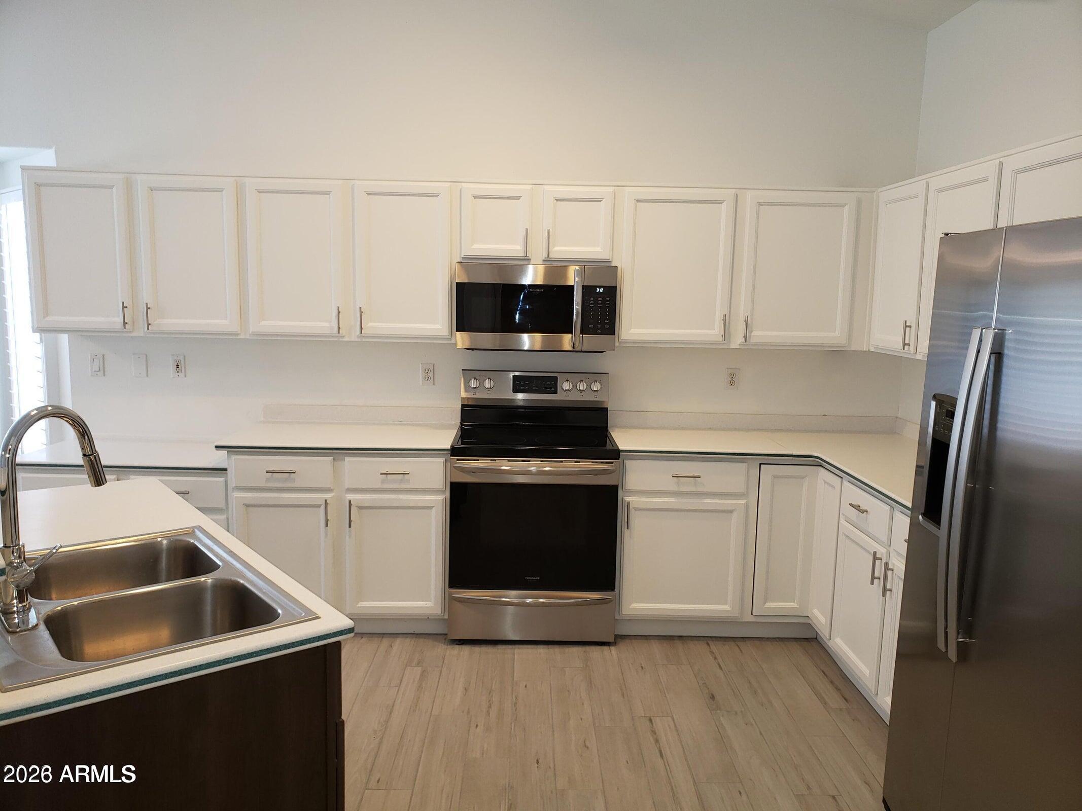 Nice Clean Open Floor Plan, Large Great Room with Vaulted Ceilings and Wood Shutters, Newer Grey Tile Plank Tile Flooring and Paint, Island Kitchen, Stainless Steel Appliances, Plantation Shutters, Large Master Bedroom with Vaulted Ceiling and French Doors that go out to 50 foot Screened-in Patio, Awesome Location in Arrowhead Ranch, Walk across the street through the park, and your at the Fry's Market Place Shopping Center a 1/2 block away, Large Grass Back Yard, Roses and Trees, Fenced In RV Gate for Secured Parking, Marble Bath Counter Tops, Smaller Arrow Ranch Neighborhood with light Traffic and low Noise. Close to stores, restaurant's, entertainment and freeways. This floor plan makes home feel and show like it's larger. Pulte home biult with 2X6 Construction