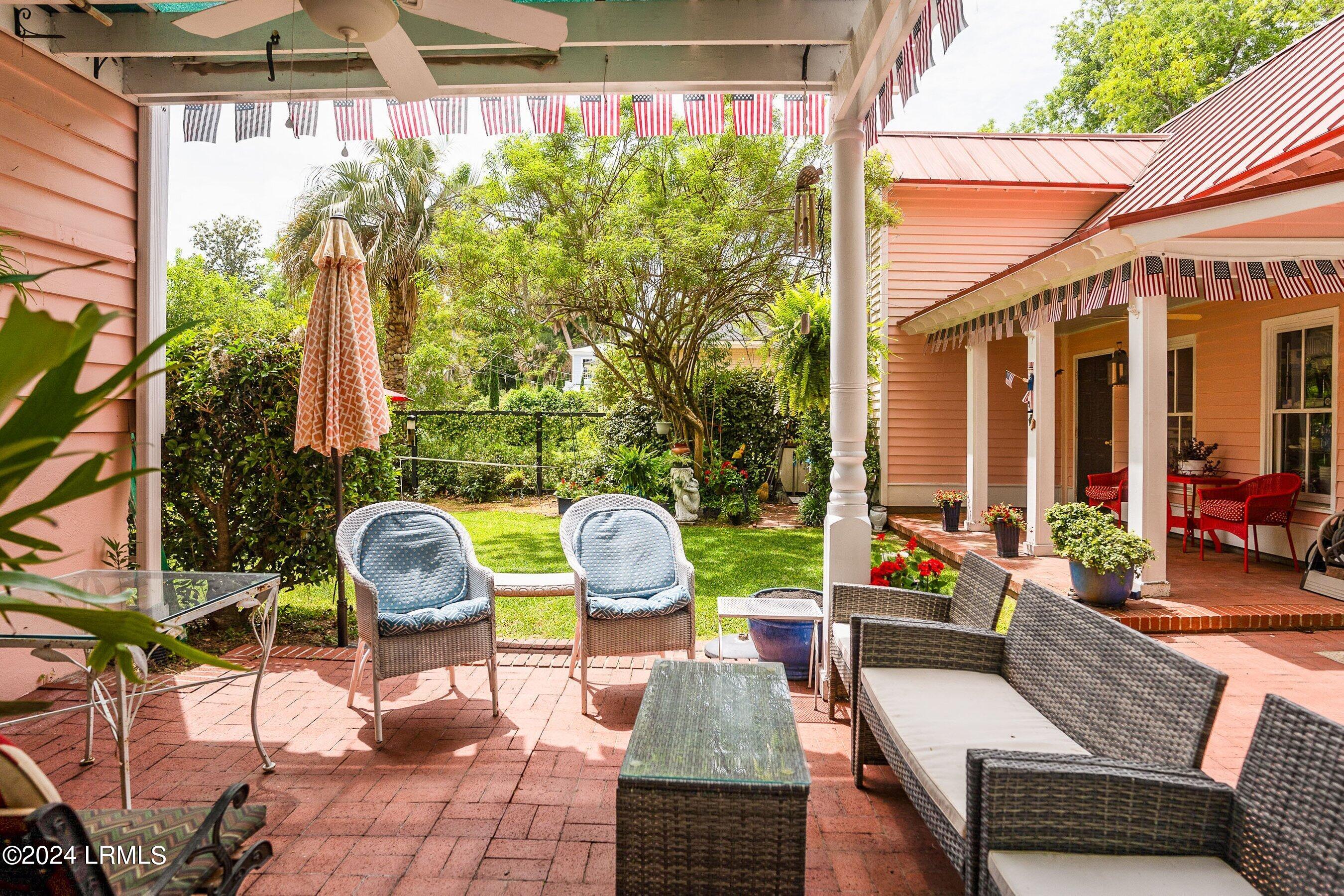 Priced to sell quickly, this is a unique opportunity to own the fourth oldest home in Beaufort, the William Johnson House, built in 1776. You can move in and celebrate the 250th anniversary of the founding of the USA in a home started before the Revolutionary War. Located on a corner lot, the home sits on its original tabby foundation and faces east, unusual for homes in the Historic Old Point, a section of easy walkable, beautiful streets and historic homes.. In typical 18th century style, it has two original formal rooms up and down and 4 fireplaces. It has 2 Bedrooms, 2 Baths, living room, dining room, office, bonus room with 72'' TV, built-in Polk sound system, kitchen, rear porch with extensive rear brick patio, and separate ADU. The metal roof was custom installed in 2016. It is three blocks from Bay Street, and downtown restaurants, shops , Waterfront Park, and the marina. The home has an attic with storage original to the home. There is a workroom under the home as well as a gym with heating and cooling. The home is Georgian architecture and many parts of the interior and exterior of the home retain materials from the original construction of the home. The home was originally constructed by Rev. William Johnson, the first Baptist Minister to come to the low country and is purported to be the minister who introduced baptisms to the Beaufort area. Some time after the home was constructed, the room that currently serves as the entertainment room and the kitchen were added. In 1999, the rear covered patio, patio, garage and ADU were added. The original construction date has been verified by historic preservationists who surveyed the Old Point during a historic survey for the City of Beaufort. During the Civil War the home was owned by W. C. Danner. Confiscated by the US Government after the war as were many homes in Beaufort, it was subsequently owned by Samuel Bamfield, the husband of Elizabeth Smalls Bamfield, the daughter of Robert Smalls, well known for his heroic actions during the Civil War. Mr. Bamfield was Clerk of Court for Beaufort County for 20 years and after that, postmaster of Beaufort. After his death, his wife became postmistress of Beaufort and served until her retirement. All 11 of their children were born in the home. This material is based on information we consider reliable, but because it has been provided by third parties, we cannot represent that it is accurate or complete and should not be relied on as such.