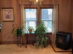 Centrally located, this bungalow is waiting for you to make it your own. The open kitchen attaches to the sunny dining room with a lovely original built in, large windows and a pellet stove. French doors with glass knobs can be opened to the living room or closed for privacy. Mini splits, both upstairs and down provide warmth in the winter and cooling in the summer. A small bedroom with a quarter bath completes the first floor. The upstairs holds two bedrooms with hardwood flooring, large windows and a walk in closet that connects the two bedrooms. The basement is partially finished with plenty of space and shelving for storage. A detached garage with a covered patio area completes the back yard.