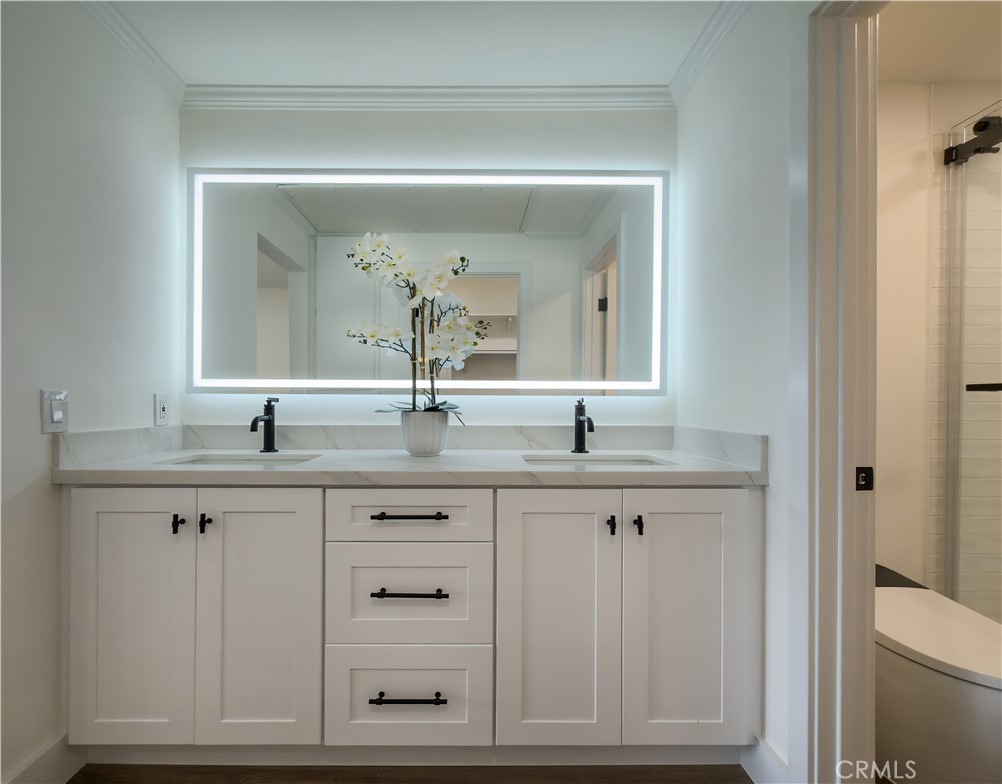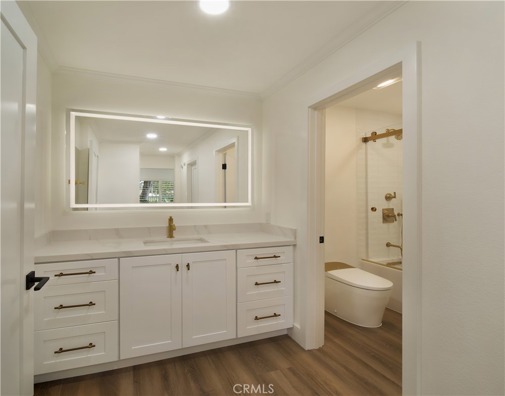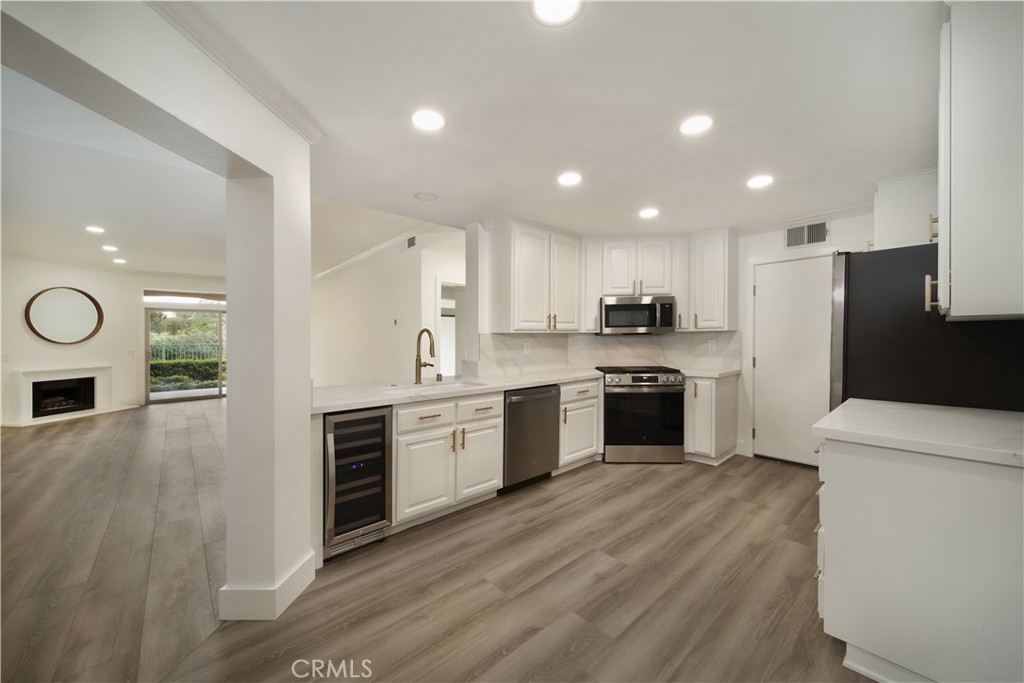 Situated in the gated community of VILLA POINT with panoramic golf course views to Fashion Island, this one level remodeled end-unit condo includes a secluded gated front courtyard area, golf course view from all main rooms, an open design with remodeled kitchen with breakfast area, designer tile, quartz countertops, Kohler fixtures, gas stove and wine refrigerator, living room with fireplace, two primary suites with new lavish baths, smart toilets, and walk in closets, wood-look flooring throughout, new windows and sliders, recessed lighting plus an attached garage with new epoxy flooring and large finished bonus storage area. The living room and both primary suites open to a large double patio area perfect for easy and effortless entertaining and enjoying the nightlights view to Fashion Island or a Classic Golf Tournament front row seat. The beautiful nearby spa, pool and workout room are steps away. Live the fun and festive beach lifestyle, just moments from shops, cafes and fine dining, Balboa Island, the Newport Beach Country Club, Back Bay trails and charming Corona del Mar, providing resort-style living all year around.