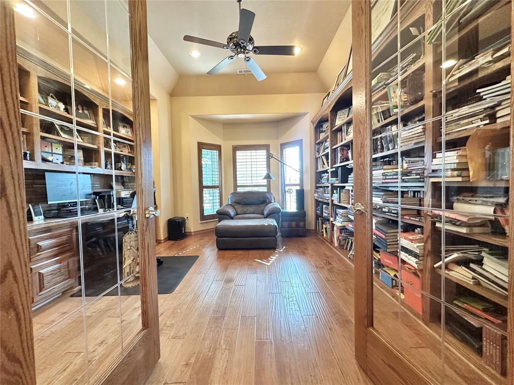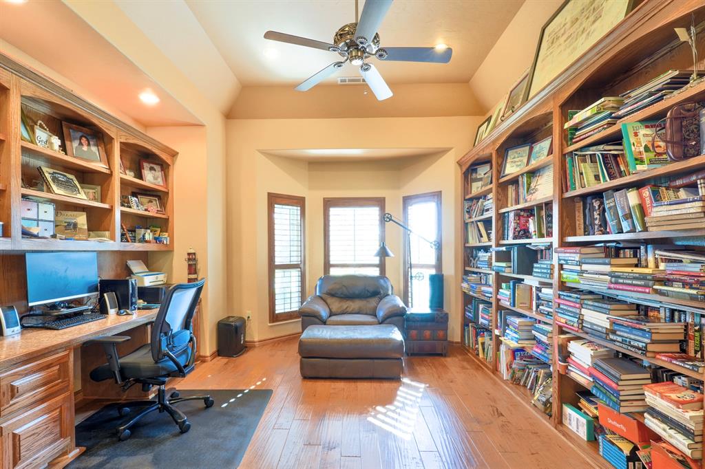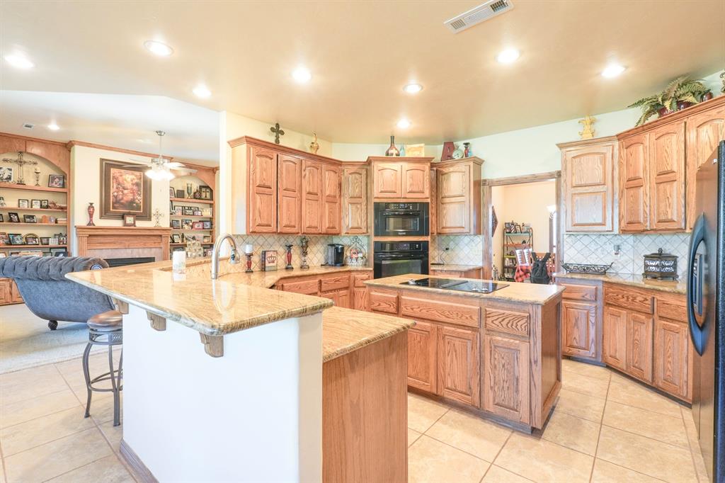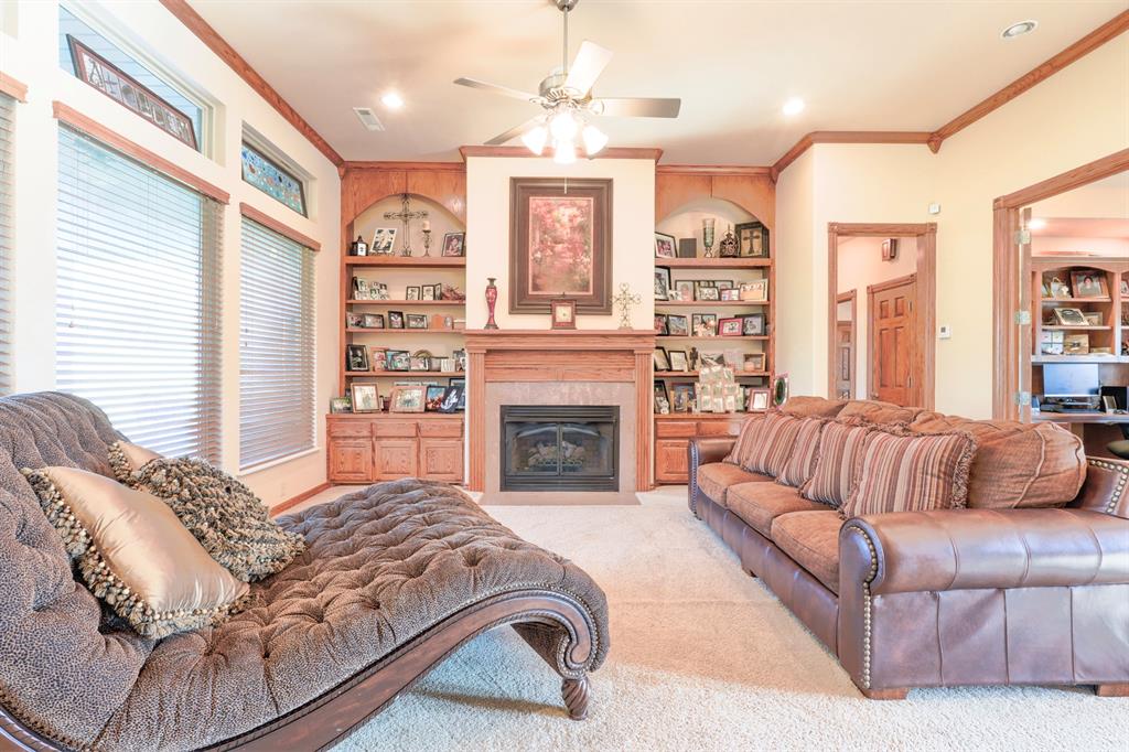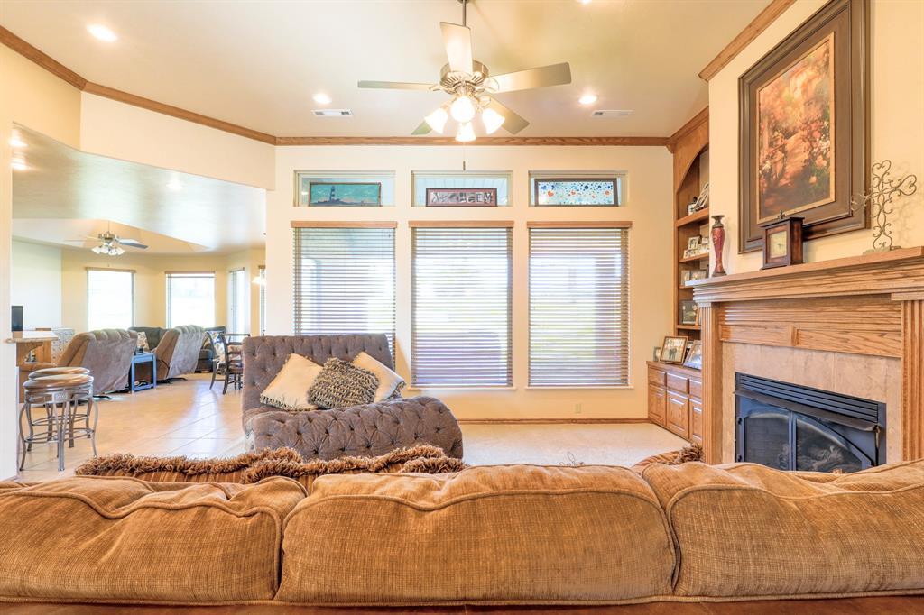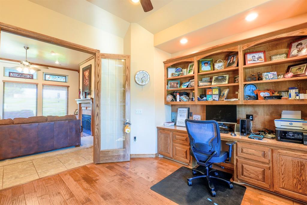 Tucked away on two expansive lots totaling 4 peaceful acres, this home is the kind of place you slow down the moment you pull into the circle drive. Mature surroundings, room to breathe, and a layout that simply makes sense - this property was built for living well. Inside, the home offers a flexible 3-4 bedroom layout, including a dedicated office with built-in library, perfect for working from home or quiet evenings with a good book. With two and a half bathrooms, two separate living areas, and an oversized utility room, there's space here for everyday comfort and effortless entertaining. The details are what make this home special. Granite countertops, marble window sills, scraped hardwood floors, and solid oak doors add warmth and timeless character throughout. The main living space centers around a cozy gas fireplace, surrounded by beautiful built-ins and custom woodwork - an inviting place to gather on cool nights. The primary suite feels like a true retreat with a jetted tub and generous walk-in closets, while a Jack-and-Jill bath offers convenience for guests or family. The oversized laundry room and garage provide the kind of storage and functionality everyone hopes for - but rarely finds. Step outside and the property truly shines. A 30x30 detached brick garage, plus an additional 30x30 metal shop on slab, give you endless options for hobbies, storage, or workspace. The insulated brick shop is equipped with 220 electric and a gas line ready for an outdoor grill, making it perfect for projects or weekend gatherings. A charming gazebo invites you to relax and enjoy the quiet, park-like setting. The home is served by city water and also features a high-capacity 25 GPM well with eight exterior spigots, ideal for irrigation and maintaining the lush grounds. A new roof installed in 2020 with 30-year high-impact shingles offers long-term peace of mind. And during the holidays, the custom Christmas lighting package makes this home absolutely magical.