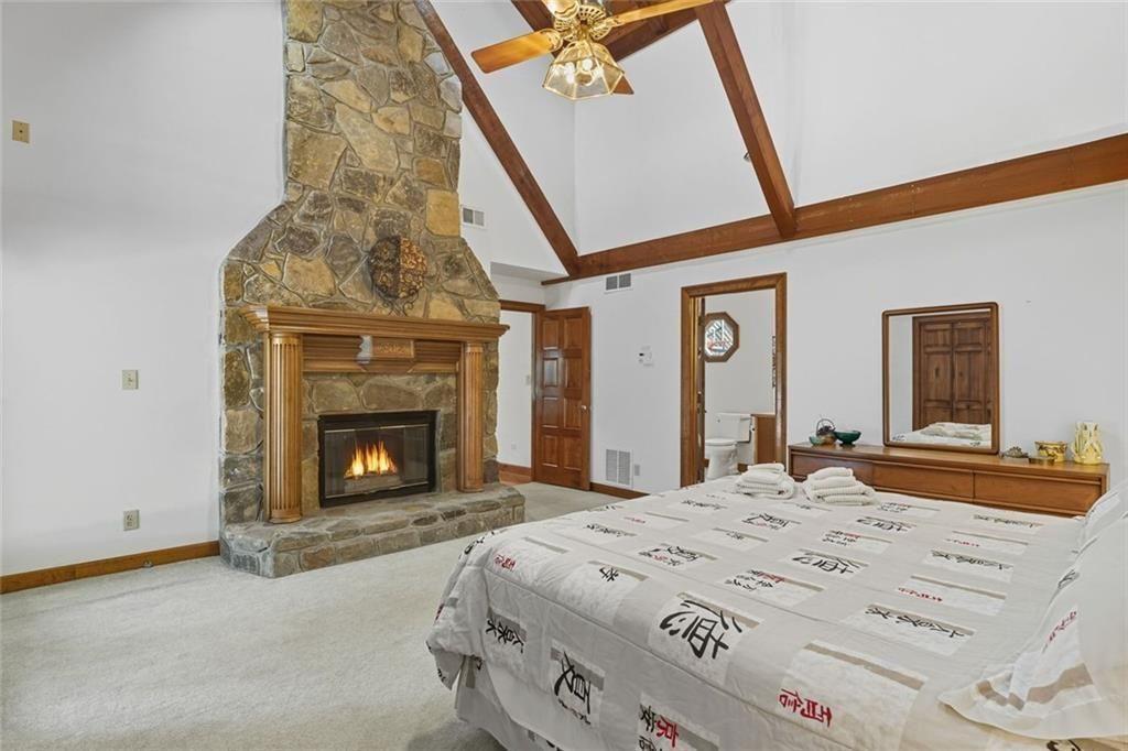 Looking for a lake view from almost every room? Conveniently located near shopping, restaurants, and 5 minutes from GA 400. 5 BR, 4.5 BA, Finished Basement, Pool, and 30x30 2-slip/2-story. DEEP water, PRIVATE party dock. 3 fireplaces. Primary Suite on the main with doors to the deck and a flagstone fireplace. The two-story family room features a tongue-and-groove ceiling with beams and a wall of windows overlooking the pool and lake view. Floor-to-ceiling flagstone fireplace. Top-rated schools. Fall in love with the heart of the home: the kitchen you've been waiting for. Open, bright, and thoughtfully designed, this chef's kitchen overlooks the dining room. It's truly the kitchen of your dreams - perfect for cooking, entertaining, and gathering with family and friends. The main floor features a spacious vaulted ceiling master suite, complete with a walk-in shower and soaking tub. Upstairs, you'll find two additional bedrooms and one full bathroom. A finished basement offers a versatile blend of functional living space with a kitchen, living area, pool table, 2 bedrooms, and two bathrooms. Step outside to your private pool and a beautifully landscaped backyard. An expansive flagstone patio and multiple decks are perfect for entertaining. A covered eating area and custom stone details make this the perfect space for entertaining or relaxing. The gentle walk to the lake under mature trees provides both privacy and a serene natural setting. This home isn't just a place to live - it's a lifestyle. The garage offers a walk-up attic for storage. New Roof. 3 HVAC Systems, Hot Water Heater, Kitchen Appliances, Plumbing, Basement Waterproofing, and Pool Equipment are all in good working order.