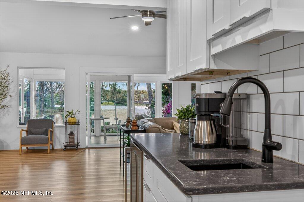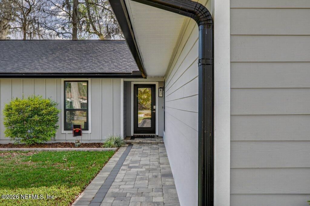 Incredible renovated home on magnificent waterfront property! Stunning long and wide views of Lake Asbury with 100' frontage with dock. Start living your best life now, most everything is new and ready to be enjoyed! Walls were removed, public spaces reconfigured for open concept living, kitchen, & dining areas. Kitchen and both baths remodeled in 2023, all KitchenAid appliances still under warranty! Large propane tank for new range, new tankless water heater & fireplace. New LVP flooring throughout, with freshly painted walls. The sunroom has new hurricane straps, vaulted ceiling, insulation, and LoE windows to provide insulated, unobstructed views of the lake. Outside: new roof, new windows, Hardie siding on house and shed, new composite deck, new paver driveway and walkways with integrated lighting, new paved backyard fire pit. New 2025 items included bulkhead cap of marine grade wood and Lifestyle garage screen enclosure. EV universal charger in garage. Even more to mention and se