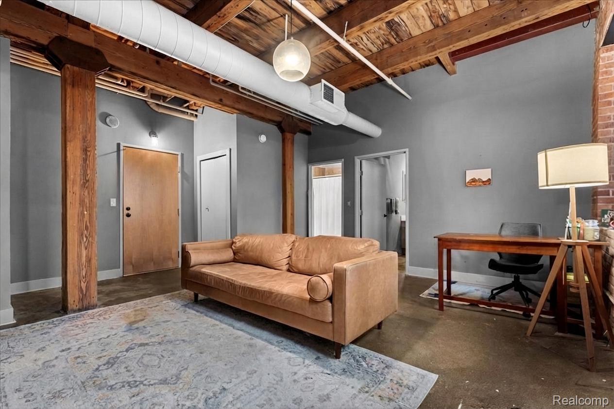 There's a certain reassurance that comes with a building that has already stood for a century. This loft is part of that legacy - a true warehouse conversion where exposed brick, solid timber, and industrial elements reflect how buildings used to be constructed: durable, practical, and built to last. What makes this opportunity stand out is its location. Positioned directly across from Belle Isle State Park, you gain immediate access to one of Detroit's most valued outdoor spaces. Whether it's a quick bike ride, a walk along the water, or simply having open green space nearby, it adds a lifestyle component that's hard to replicate at this price point. Inside, the space is straightforward and functional. The open layout connects living, dining, and kitchen areas in a way that's easy to live in and easy to personalize over time. The bedroom provides separation and privacy, while the rare private balcony offers a simple but meaningful extension - fresh air, a place to unwind, and a feature not often found in similar units. The building itself adds everyday convenience with amenities like a pool, hot tub, and fitness center - practical benefits that support daily routines without added complexity. And when you want to be in the center of it all, downtown Detroit is just a short drive away, giving you access to restaurants, events, and nightlife while still enjoying a quieter setting at home. For any buyer, this is a compelling combination: character you can't recreate, a location that enhances daily life, and a space you can grow into over time.