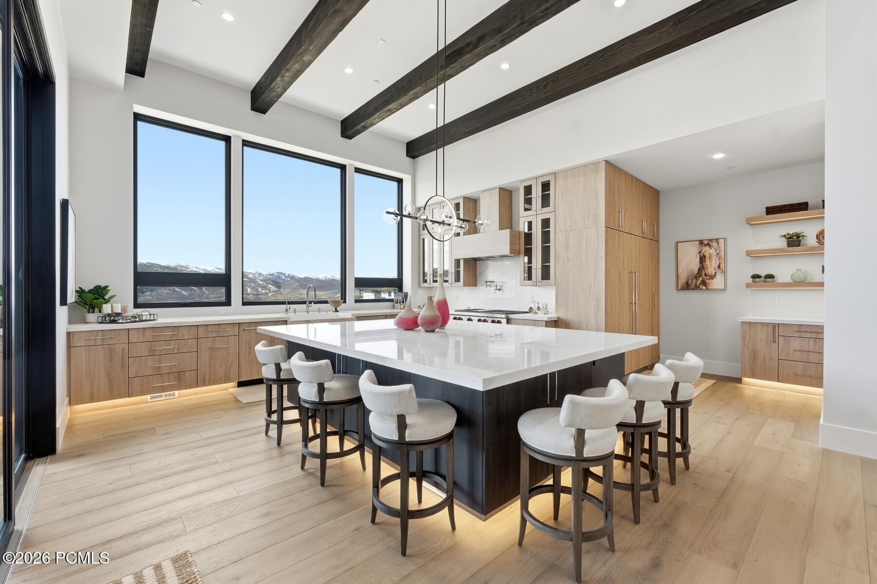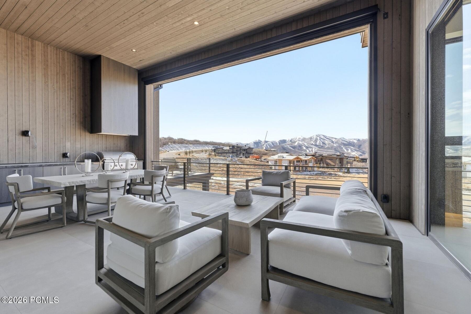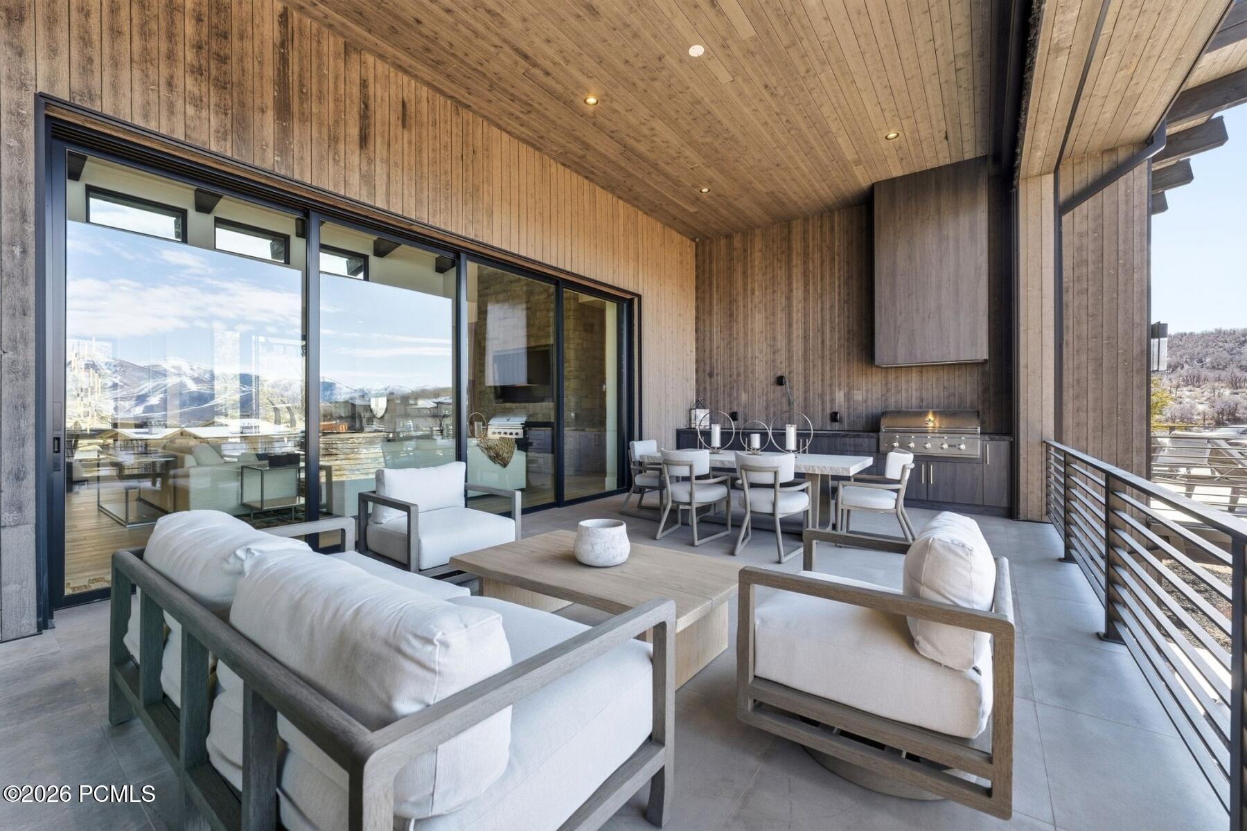 Positioned above Tuhaye's Dancing Sun enclave, this refined mountain contemporary captures panoramic views across the Wasatch Back, including the expanding Deer Valley East Village. Designed by Scott M. Grunst and built by Mountain High Custom Homes, the home blends modern architecture with warm, natural materials and exceptional livability.Vaulted ceilings and expansive window walls flood the open floor plan with light, framing dramatic sunsets over Deer Valley. The chef's kitchen is equipped with Wolf, Sub-Zero, and Bosch appliances, a full butler's pantry, and dual wine refrigerators, seamlessly connecting to generous indoor and outdoor entertaining spaces with heated decks, fire features, and a private hot tub.The primary suite offers a true retreat with dual dressing rooms and a spa-level bath. Multiple laundry areas, a flexible lower level, and thoughtful sound insulation throughout enhance comfort and functionality.Located within the private Talisker Club community, with four-season amenities and golf, and just minutes to the new Deer Valley East Village, this is a rare opportunity to own a view-forward, design-driven home in one of Park City's most coveted settings.