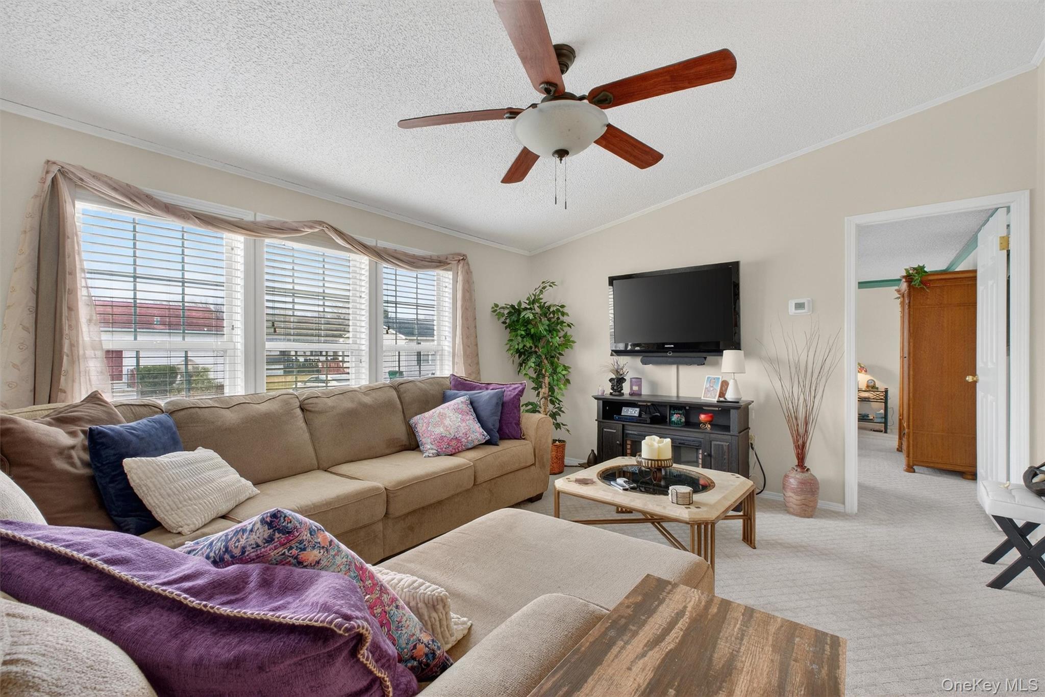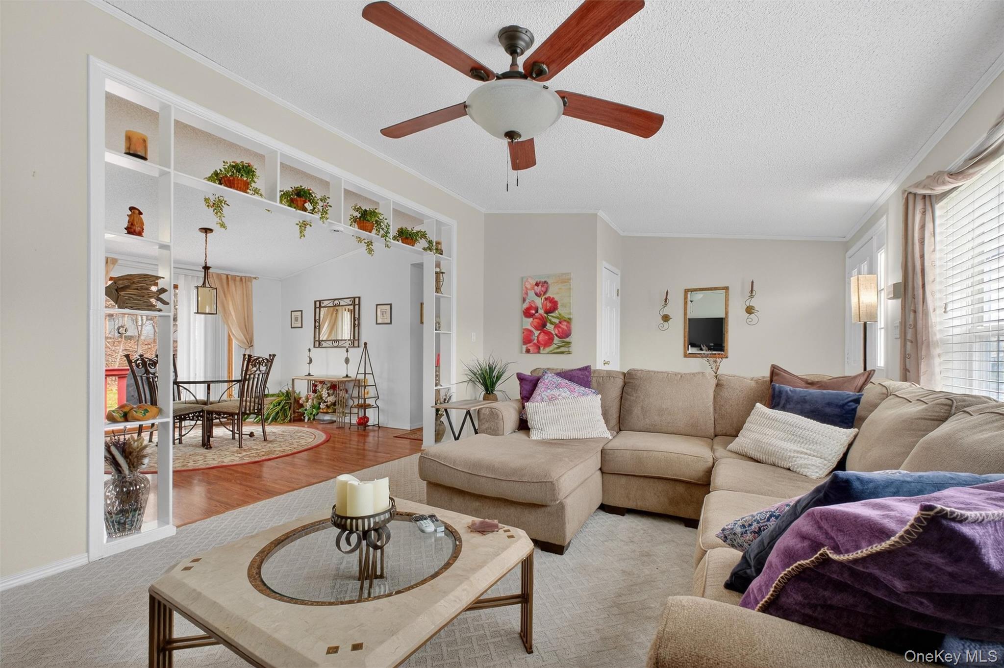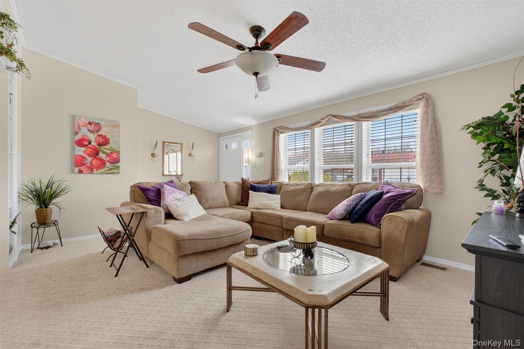 Adorable, Affordable & Move-In Ready! Welcome to this well-maintained home in the highly sought-after Kensington Village co-op community. Offering affordable living with low monthly lot rent, residents enjoy town water, community sewer, weekly trash pickup, road maintenance, and upkeep of common areas. (Owners are responsible for lawn care and snow removal.) This bright and spacious home features an open-concept layout with 3 bedrooms and 2 full baths, filled with natural light and enhanced by vaulted ceilings in the living and dining areas. The heart of the home is the nicely updated kitchen, complete with quartz countertops, a breakfast bar, and abundant cabinetry and counter space - perfect for everyday living and entertaining. The primary suite offers an oversized closet and a beautifully renovated full bath. Two additional bedrooms and a second full bathroom provide flexibility for guests, home office space, or hobbies. Recent updates include new central air unit, new hot water heater, new carpet and hardwood flooring, newer roof, and a storage shed. Step outside to your private rear deck, ideal for relaxing afternoons and summer barbecues. The professionally landscaped yard, highlighted by flowering trees, adds to the home's charm and curb appeal. Conveniently located just 7 miles to the Poughkeepsie train station and approximately 15 minutes to Rhinebeck, with easy access to shopping, schools, and hospitals. Note: Prospective buyers must complete a Kensington Village residency application and receive co-op board approval prior to contract. Financing is available through First Credit Corp with a minimum 20% down payment required. This home truly sparkles! Easy to show, schedule your private tour today!