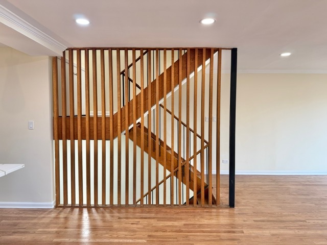 Stunning Newly Renovated 3-story townhouse in Chicago's South Loop offers flexible luxury living. With two entrances-one on the lower level and one on the main level through the charming front courtyard-this home provides easy access. The lower entrance offers private access through a fenced yard nestled on a quiet dead-end street. Inside, the lower level boasts a bedroom, a half bath, and private sauna. In addition to a laundry room equipped with utility sink. This level also includes a versatile family room or second living space. Upstairs, the main level greets you with a bright, open living room that opens to a balcony, alongside a fully renovated kitchen featuring stainless steel appliances, a double oven, and built-in cabinetry with a wine rack. A custom wood slat architectural divider creates a striking design element while maintaining an open-concept feel and allowing natural light to flow between levels. The upper level features three more bedrooms and two full bathrooms, with a master suite that includes a cozy nook for relaxing. A private parking spot is conveniently located to the left of unit. Enjoy a neighborhood with Grant Park, shopping, and dining just minutes away.