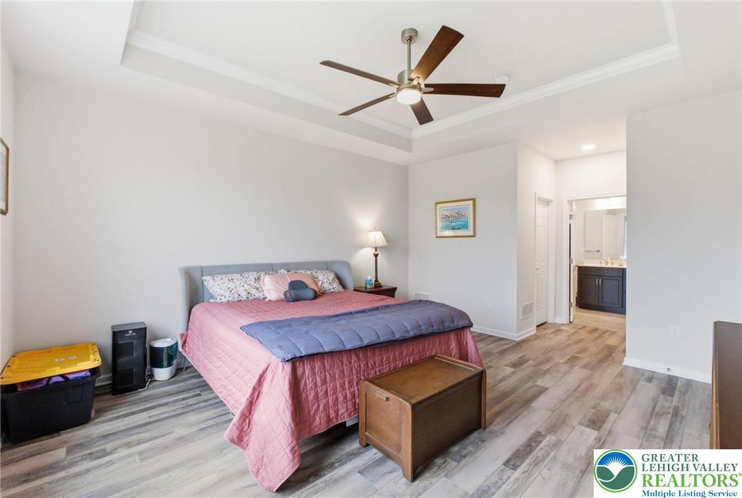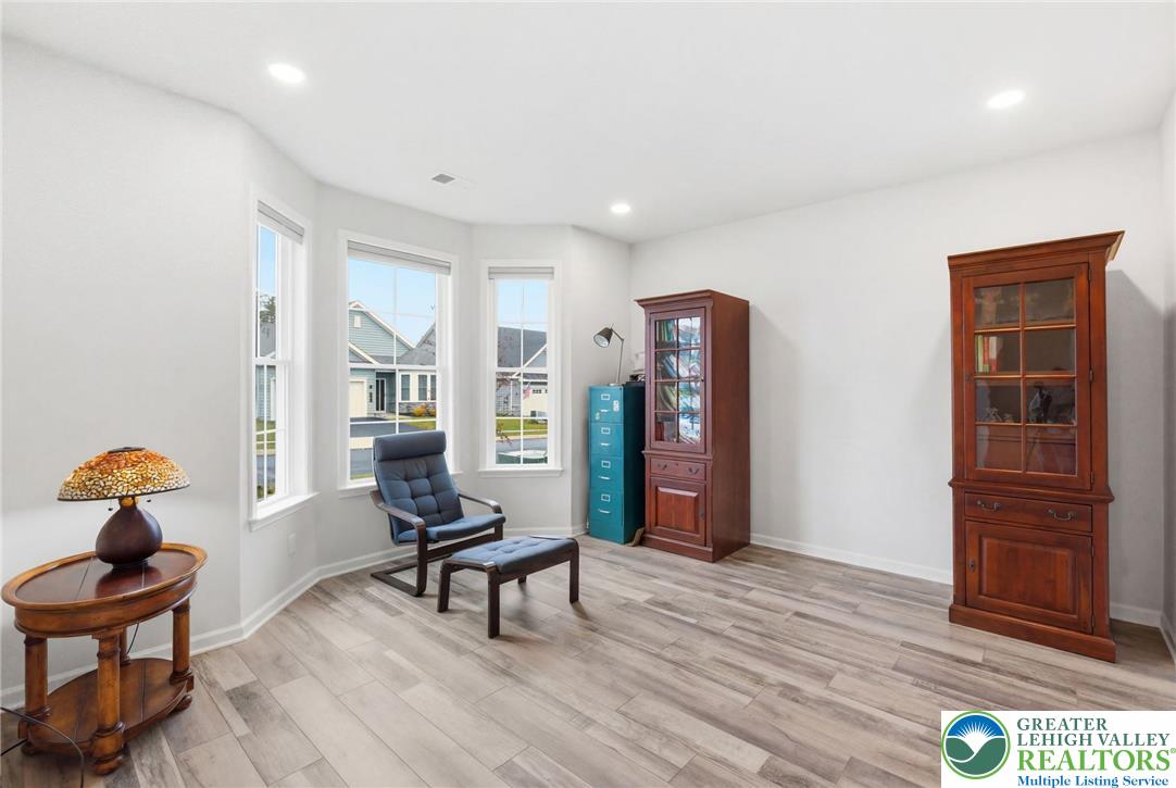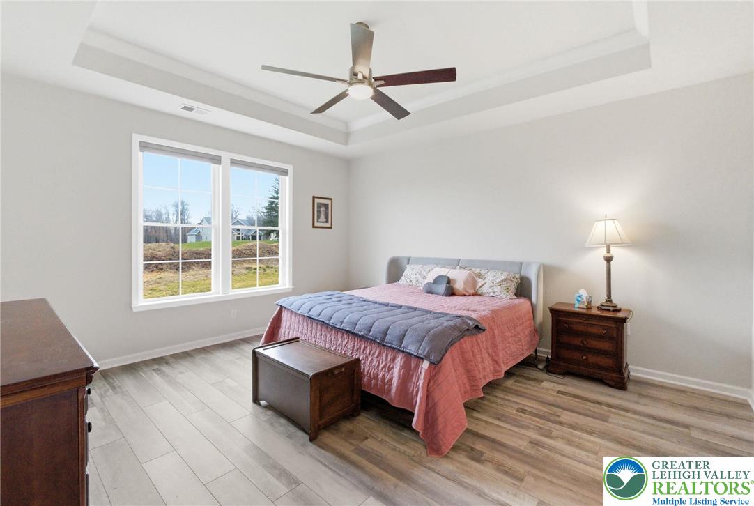 Welcome to this beautifully upgraded, nearly new home, Hancock Model with 2 Primary Suites on the first floor, in the sought-after community of Traditions of America, known for its thoughtfully designed homes and exceptional amenities, including a clubhouse, pool, pickleball courts, and more. Built just two years ago, this residence blends modern design, quality craftsmanship, and a versatile floor plan suited for today's lifestyle. The heart of the home is a spacious, open-concept kitchen featuring a large quartz island, 42-inch soft-close cabinetry with pull-out shelves, a stylish backsplash, and premium KitchenAid stainless steel appliances, including double ovens. A generous walk-in pantry plus a butler's pantry with an additional sink provide both functionality and ease for everyday living and entertaining. The main level offers two well-sized primary suites bedrooms with full baths. A powder room on the first floor for guests. A dedicated office/den with a charming bay window creates the perfect space for working from home or relaxing. Vaulted and tray ceilings, along with upgraded windows throughout, enhance the bright and airy feel. Luxury vinyl flooring flows seamlessly across the first floor. Upstairs, a versatile loft expands the living space with a recreation area, an additional bedroom, a full bathroom, and two large storage closets - ideal for guests or extended living needs. Enjoy outdoor living on the covered patio, perfect for relaxing or entertaining. This home offers a wonderful opportunity to enjoy low-maintenance living with upscale finishes in a vibrant, amenity-rich community. Also larger windows with window sills for more natural light.