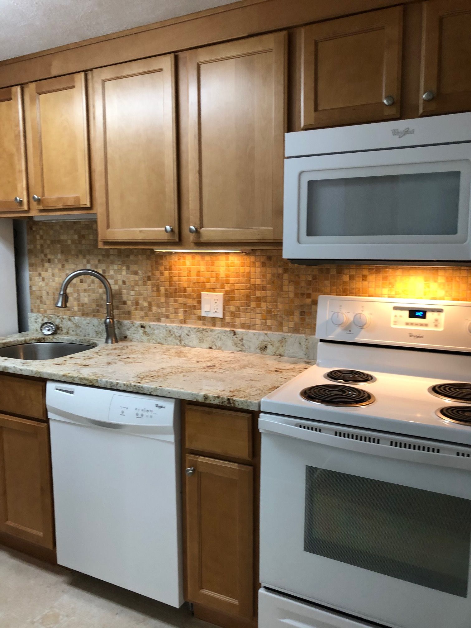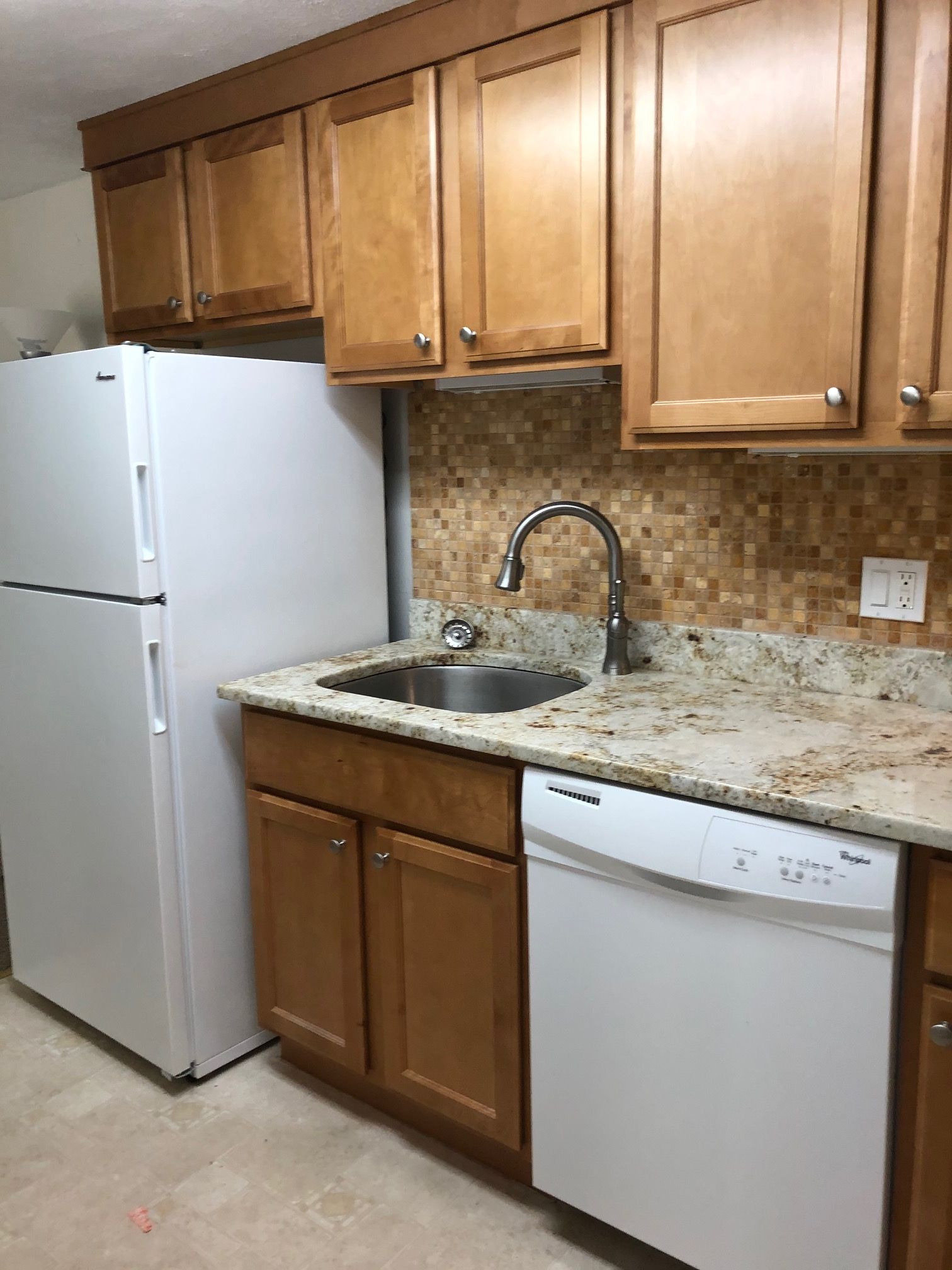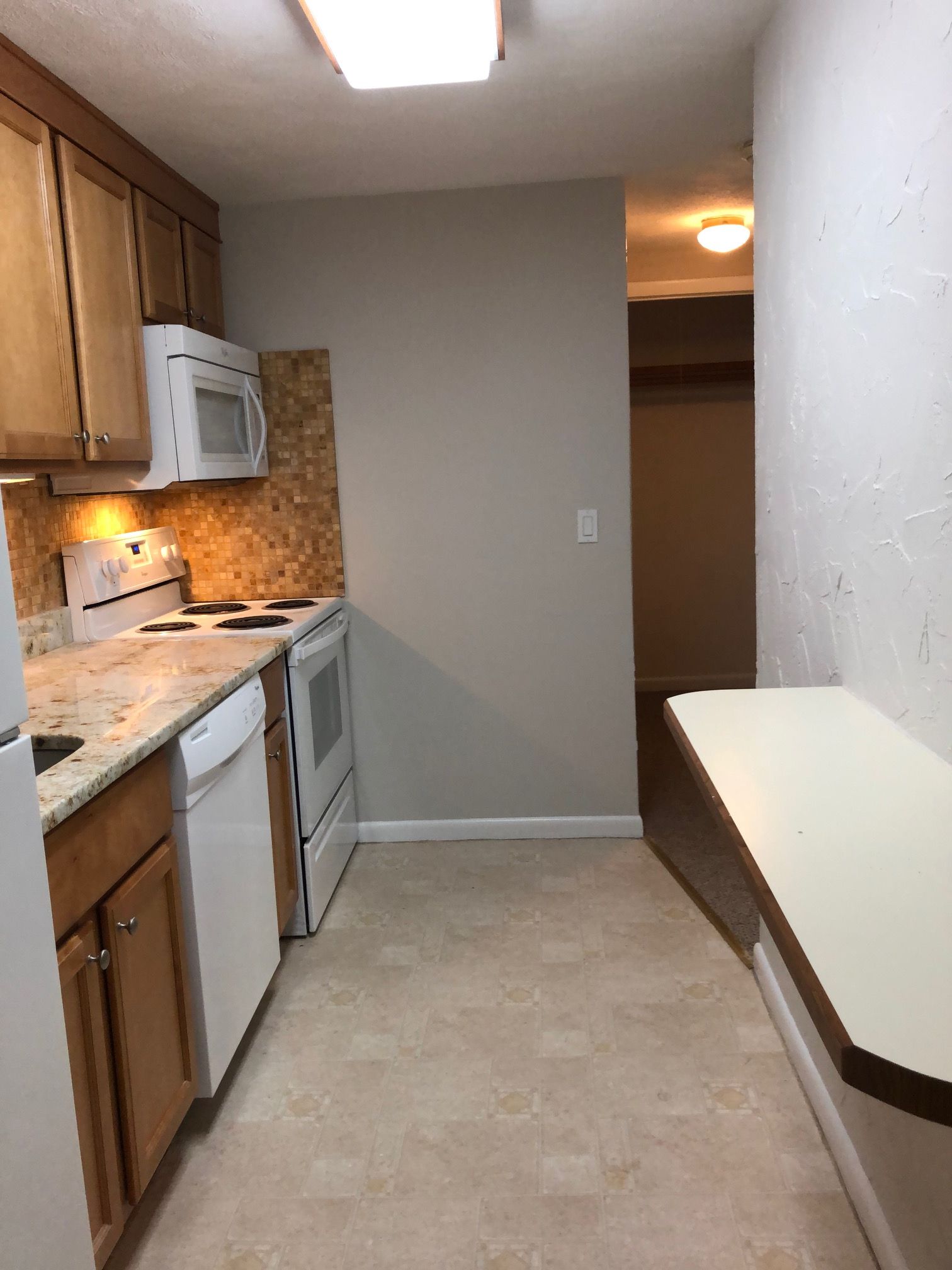 Desirable top floor one-bedroom rental at Harvard Ridge in Lowell House is being freshly painted , professionally for the next tenant! Located walking distance to Cisco and Swimfit, where for an additional fee there is an indoor pool as well as exercise classes offered. This charming unit features a galley kitchen with granite counters, tile backsplash, newer appliances with a side eat in area.The living room has updated wall to wall carpet and a wall air conditioner and updated vinyl slider.New lighting , mirror and vanity top , tile flooring complete the full bath.. Coin operated laundry in the lower level and parking is common. Extra storage area is steps away. 1st last security application fee to MY SMART MOVE. com about $ 50.