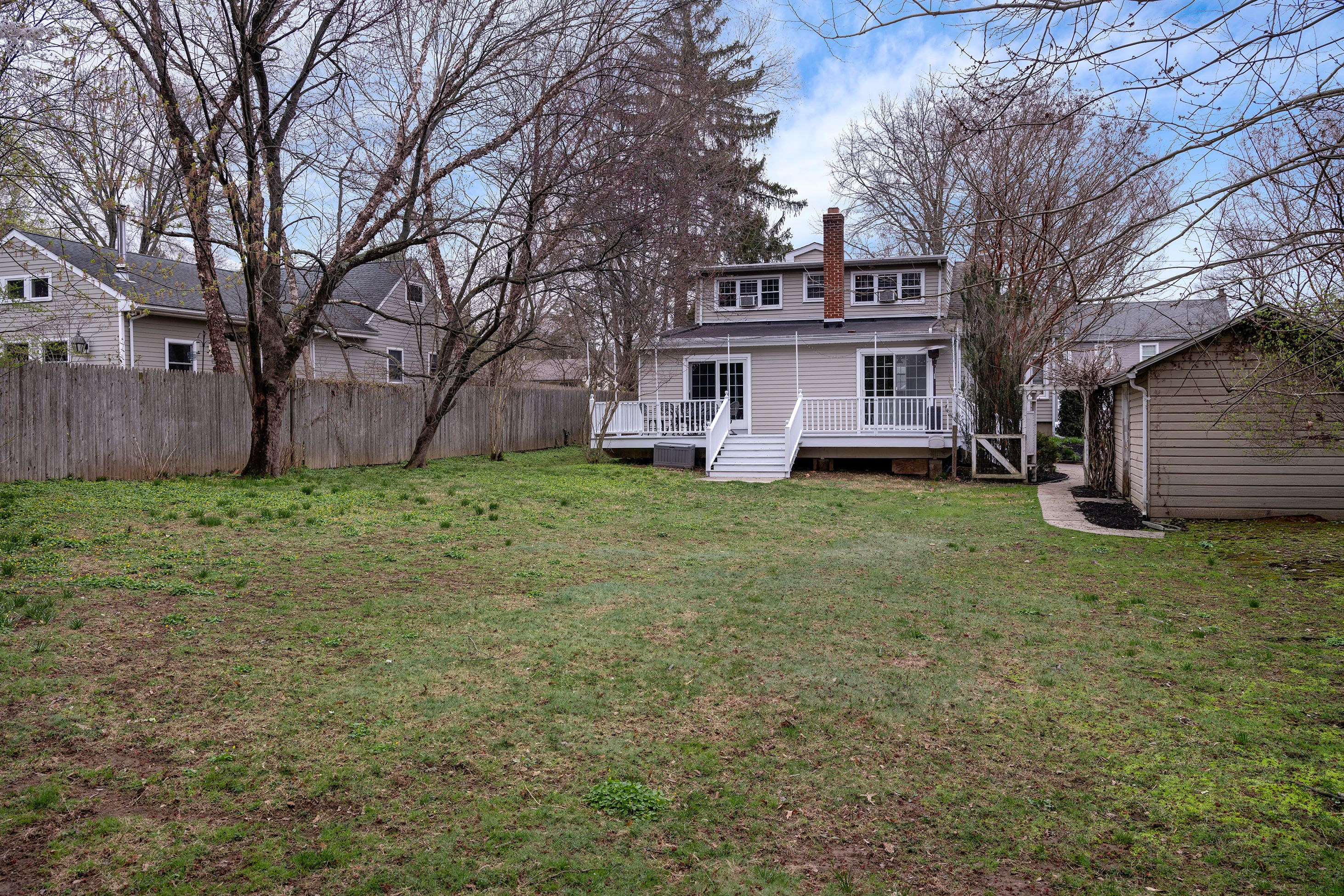 Tucked into the Village of Lawrenceville, just a couple of blocks from Main Street, this home captures a kind of charm that feels increasingly rare. It has the warmth and familiarity of a place that has been truly lived in and loved, where classic details and inviting spaces strike an immediate chord. Sunlight moves easily through rooms, highlighting details that feel both timeless and fresh. A see-through brick fireplace connects the family room and kitchen, creating a warm visual anchor and an easy sense of flow between the two rooms. The kitchen leans into personality with a crisp farm sink and bold black-and-white checked floors, a combination that feels playful yet grounded. Three/four bedrooms and two baths provide flexibility for a range of lifestyles, while a dedicated home office adds a practical edge for remote work. Enjoy brand new carpet in the two downstairs bedrooms and stairway to the 2nd floor. Living and dining rooms offer additional room to spread out, each space carrying the same inviting tone found throughout. Out back, a fenced yard sets the scene for outdoor living. A deck, accessed by two sets of glass doors, extends the entertaining space with an easy indoor-outdoor connection that shines in warmer months. Ideally situated near The Lawrenceville School and the Lawrence/Hopewell Trail, this home offers a lifestyle defined by convenience. With spots like The Gingered Peach, Vidalias and Starbucks nearby, the location is every bit as inviting as the home itself.