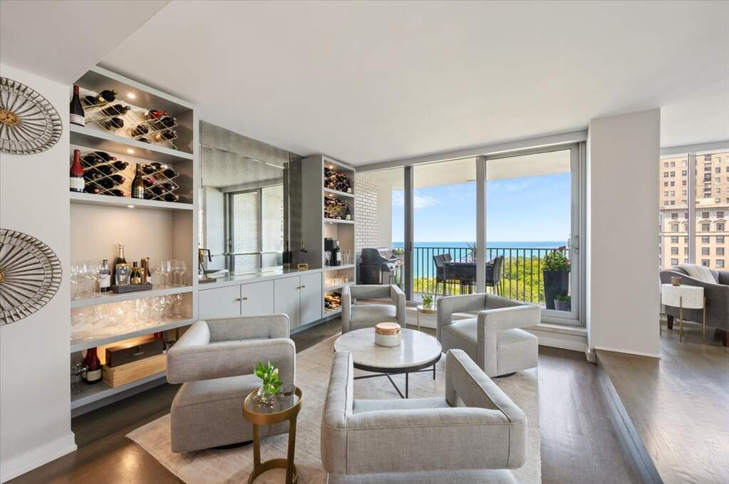 Perched on the most coveted corner of the Gold Coast, this spectacularly renovated residence offers approximately 2,100 square feet of sophisticated, fully furnished living space. Framed by new, oversized windows, the home serves as a private gallery for breathtaking, unobstructed views of Oak Street Beach and the Michigan Avenue skyline. This expansive two-bedroom plus den sanctuary has been meticulously curated with high-end designer finishes to deliver effortless, fully furnished city living. At the heart of the home, the chef's kitchen is as functional as it is striking, with premium finishes and generous storage, perfectly positioned for both entertaining and everyday living. The flow of the home is designed for the modern entertainer, featuring a grand formal dining room that leads into a stylish lounge area, complete with a custom built-in bar and wine display, and opens to a private balcony overlooking the lakefront. The primary suite is a true retreat, offering boutique-style custom storage and a spa-inspired ensuite with a freestanding soaking tub and glass-enclosed shower. Residents enjoy a white-glove experience in this full-service building, featuring a 24-hour door staff, indoor pool, fitness center, and panoramic roof decks. Located just steps from the world-class boutiques of Oak Street and the city's most celebrated dining, this residence defines effortless luxury in Chicago's most prestigious neighborhood.