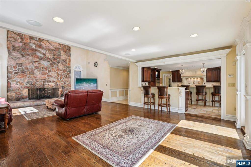 This custom built six-bedroom, eight bathroom home welcomes you with a grand two-story entry foyer that sets the tone for its spacious and inviting layout. The great room with a fireplace opens seamlessly to a private patio, creating the perfect setting for both everyday living and entertaining. A warm and inviting family room with its fireplace adds to the home's comfort and charm. The beautiful updated kitchen features a center island, breakfast bar, and bright eating area, offering functionality and style for gatherings. The finished basement provides additional living and recreational space to suit a variety of needs. Set on over one acre of professionally maintained property, this offers exceptional outdoor living with a heated gunite pool. Circular driveway, three car garage, and wonderful location(only a few minutes from major NJ highways).