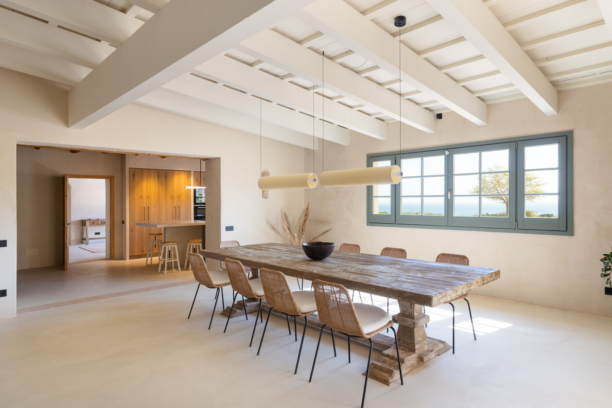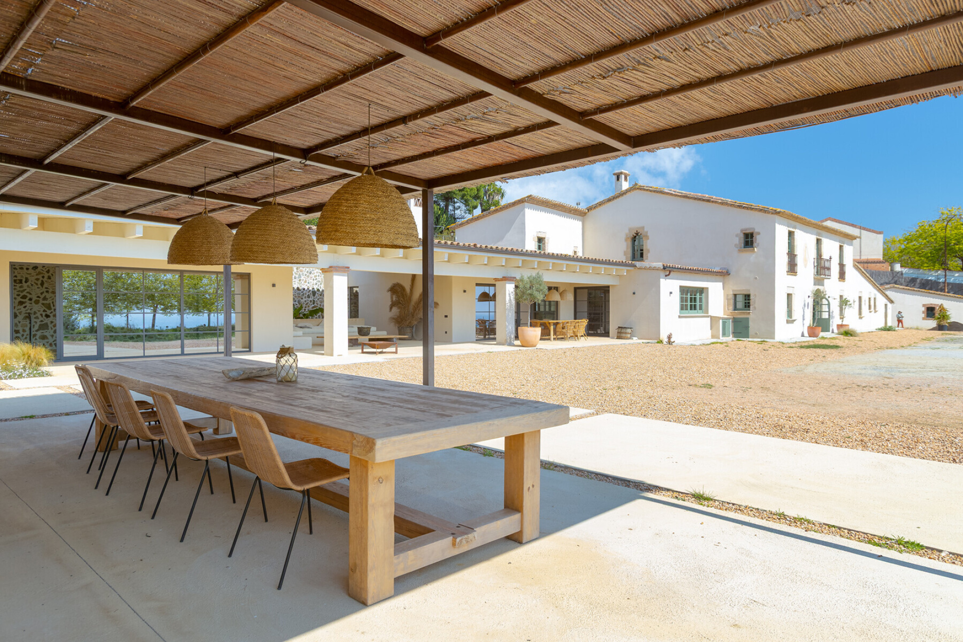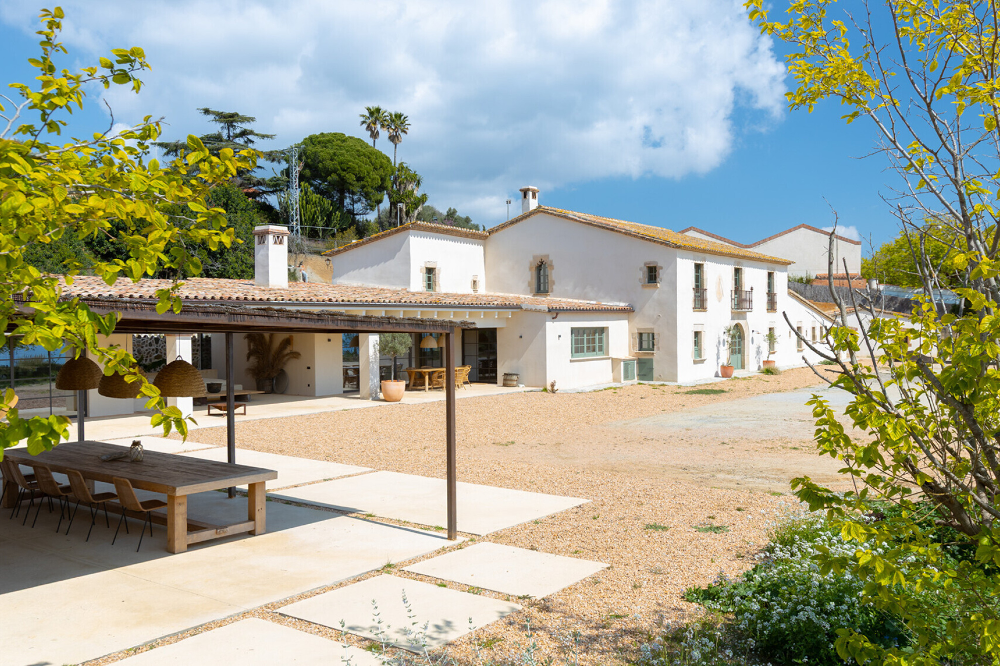 Authentic "Catalan farmhouse" in Tiana, on the outskirts of Barcelona, with panoramic sea views. On a plot of approx 2,5Ha it has a constructed area of approx 950m2. It is located in a natural environment, surrounded by vineyards and forest, a few minutes from Alella. It has been renovated with high quality materials and maintaining original elements such as stone, whitewashed walls, beams and wooden doors. Following criteria of efficiency and sustainability it has photovoltaic solar panels, aerotermia for air conditioning, underfloor heating cold and heat, well for irrigation and water supply to the house, composting of waste... The first floor has a large living room with porch, indoor and outdoor covered dining room, kitchen with pantry, original wine cellar, guest toilet and spectacular master-suite of 120m2. It also has a gym area with indoor pool and locker room. The second floor, rustic style, has 5 bedrooms, 3 bathrooms and two multipurpose rooms, one of them used as an auxiliary kitchen. From the interior, through most of the windows, the views to the sea stand out thanks to the south orientation of the house. Other outbuildings: Closed garage with easy access for multiple vehicles. Detached house of 65m2 with living-dining-kitchen, 2 bedrooms and bathroom. BBQ with kitchen and covered chill-out dining area. There is a landscaping project and construction of an outdoor swimming pool. Its exceptional location allows you to enjoy, just a few minutes drive, the beaches, marinas, golf courses, restaurants, and services such as hospitals, international schools ... and Barcelona airport 30 minutes away.